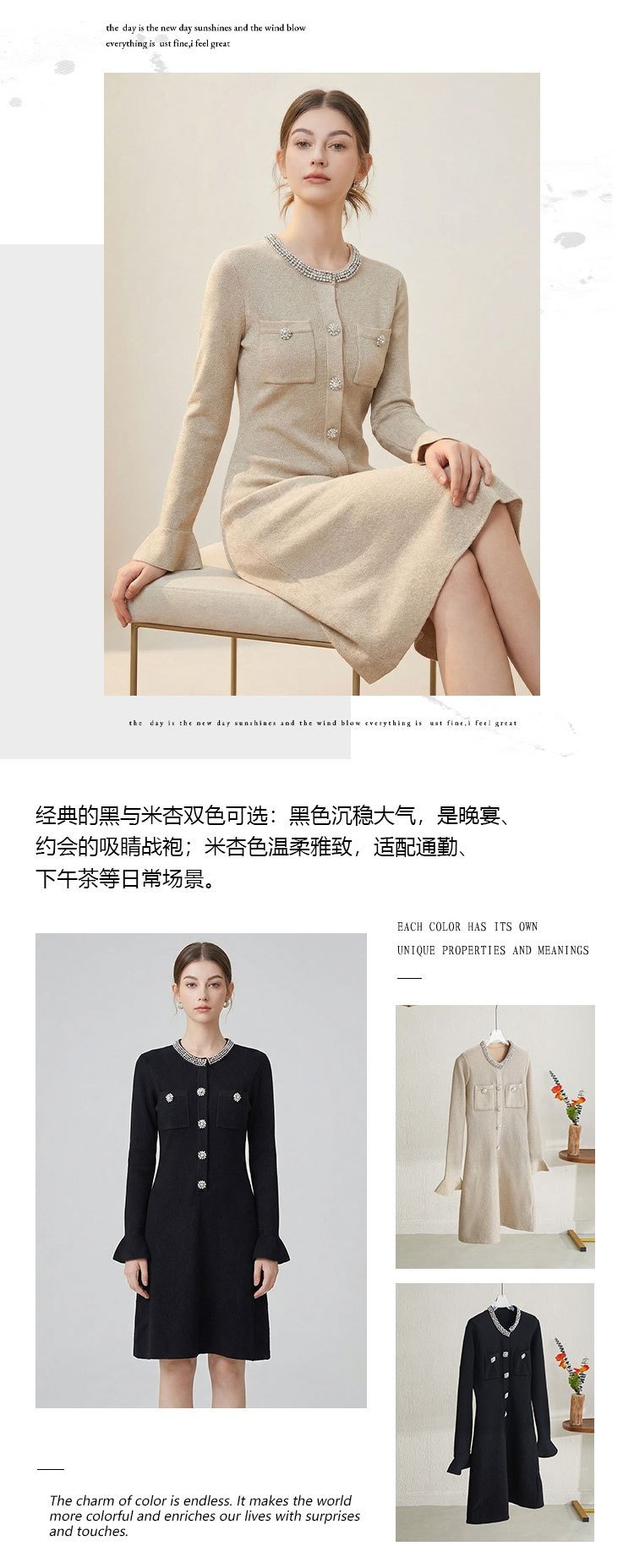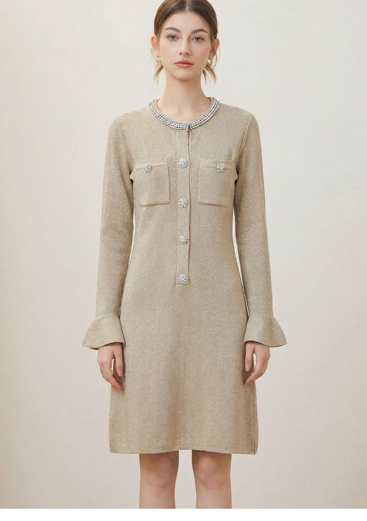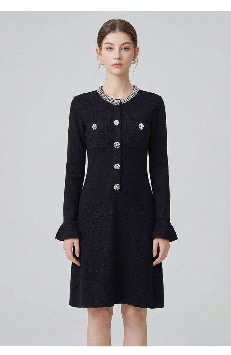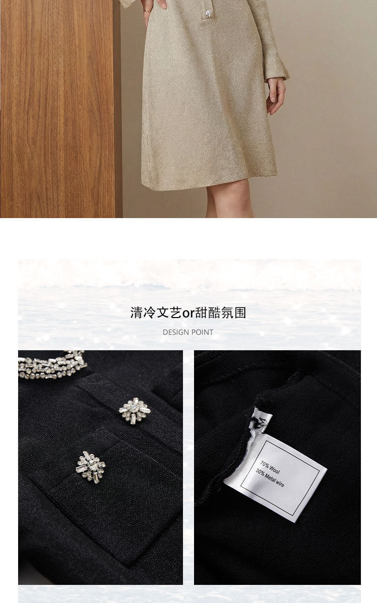 「自」全新升级【铂金会员441/天猫589/差价148】(00042)洛诗琳重工镶钻连衣裙2026新款法式小香风高级感显瘦针织裙