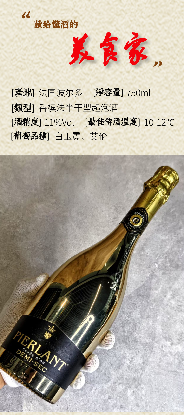 Pierlant佩珑半干型起泡酒(金色特别版)/1瓶(750ml)生产日期:20年11月补单专用