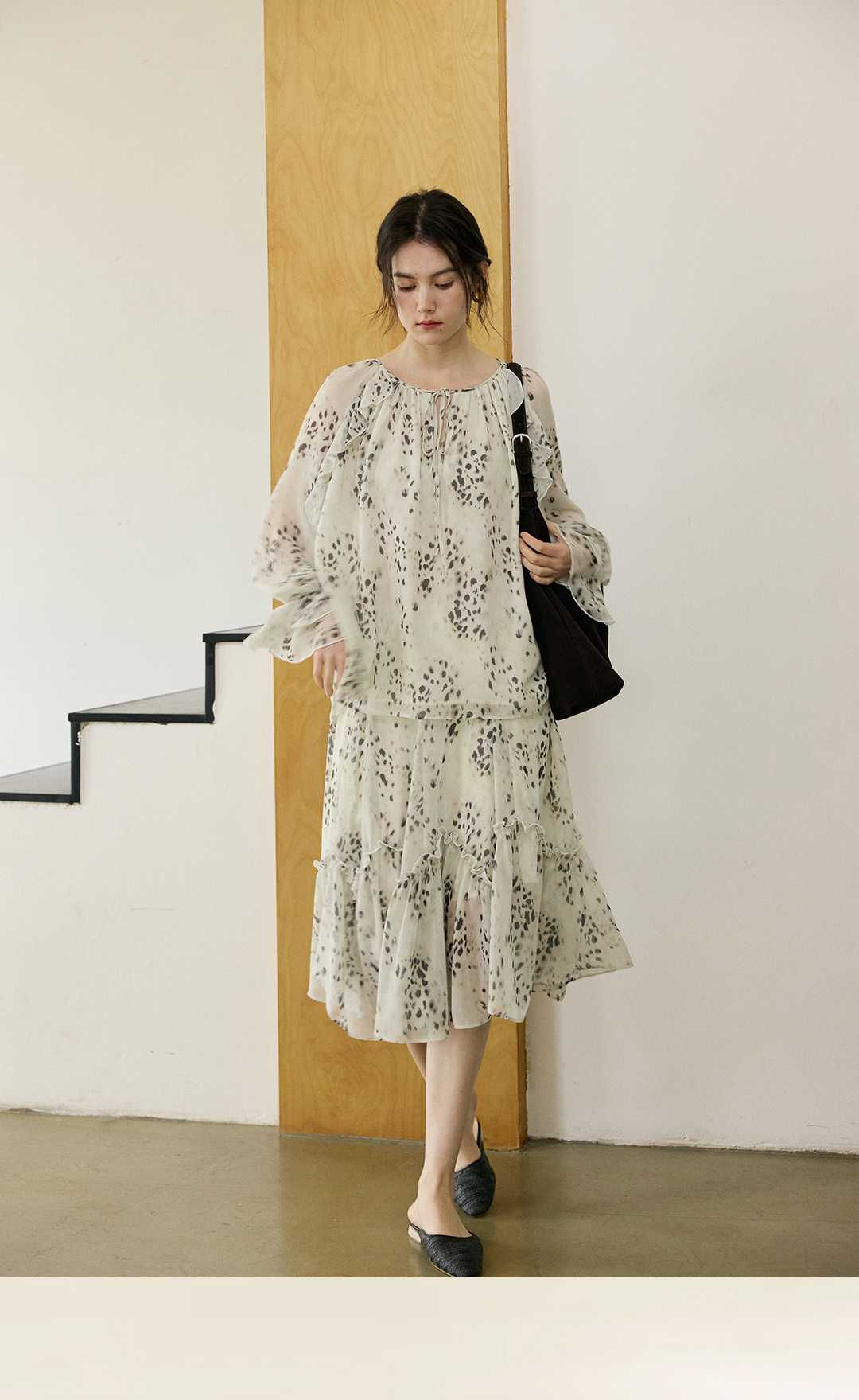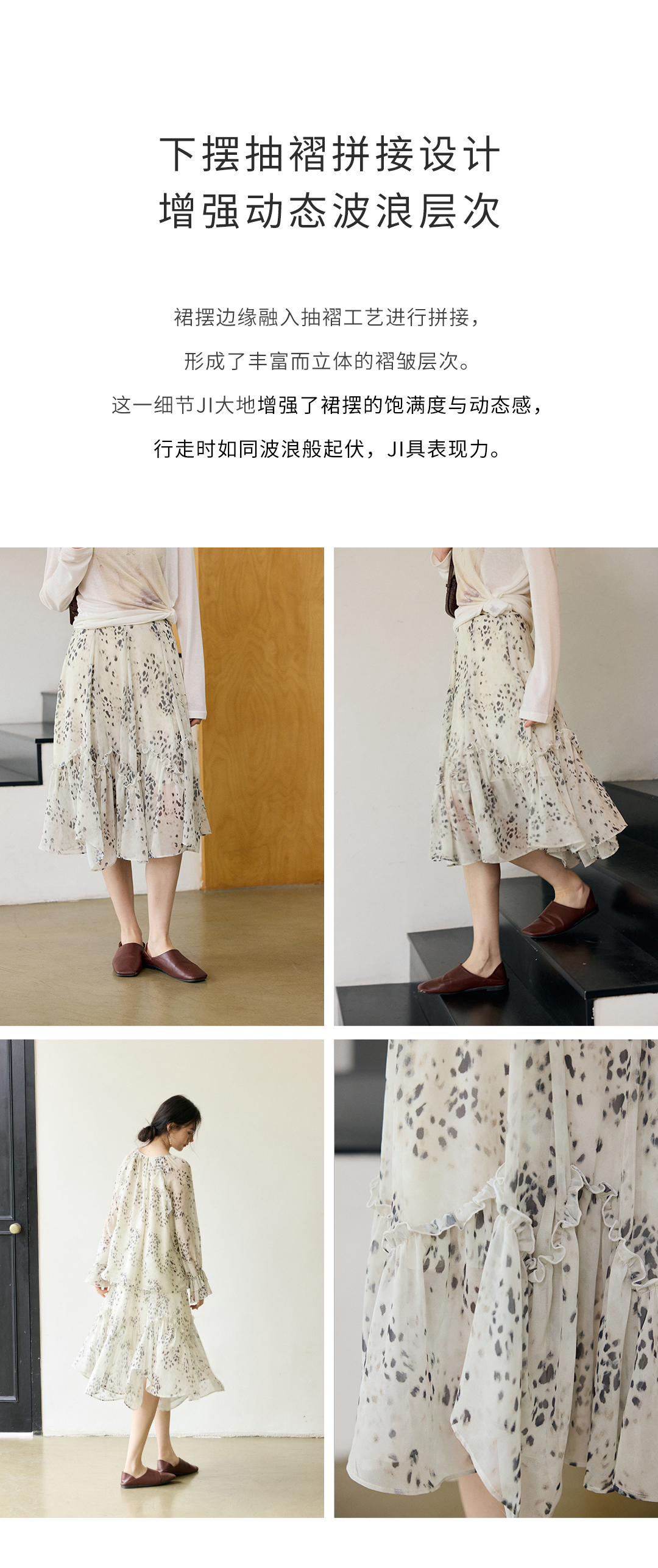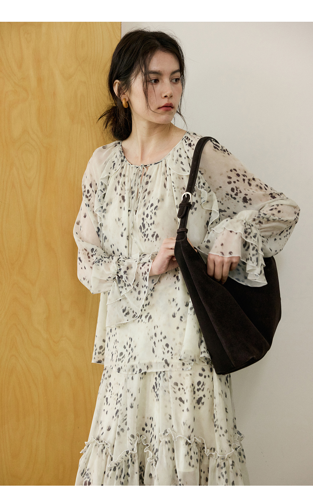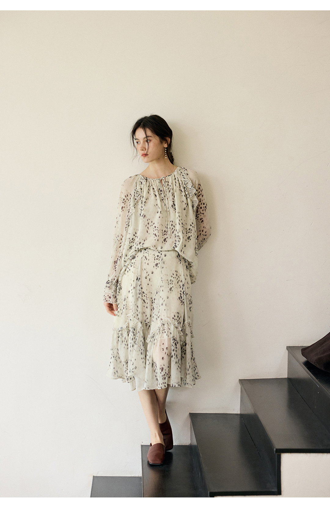 花边抽绳宽松印花衬衫