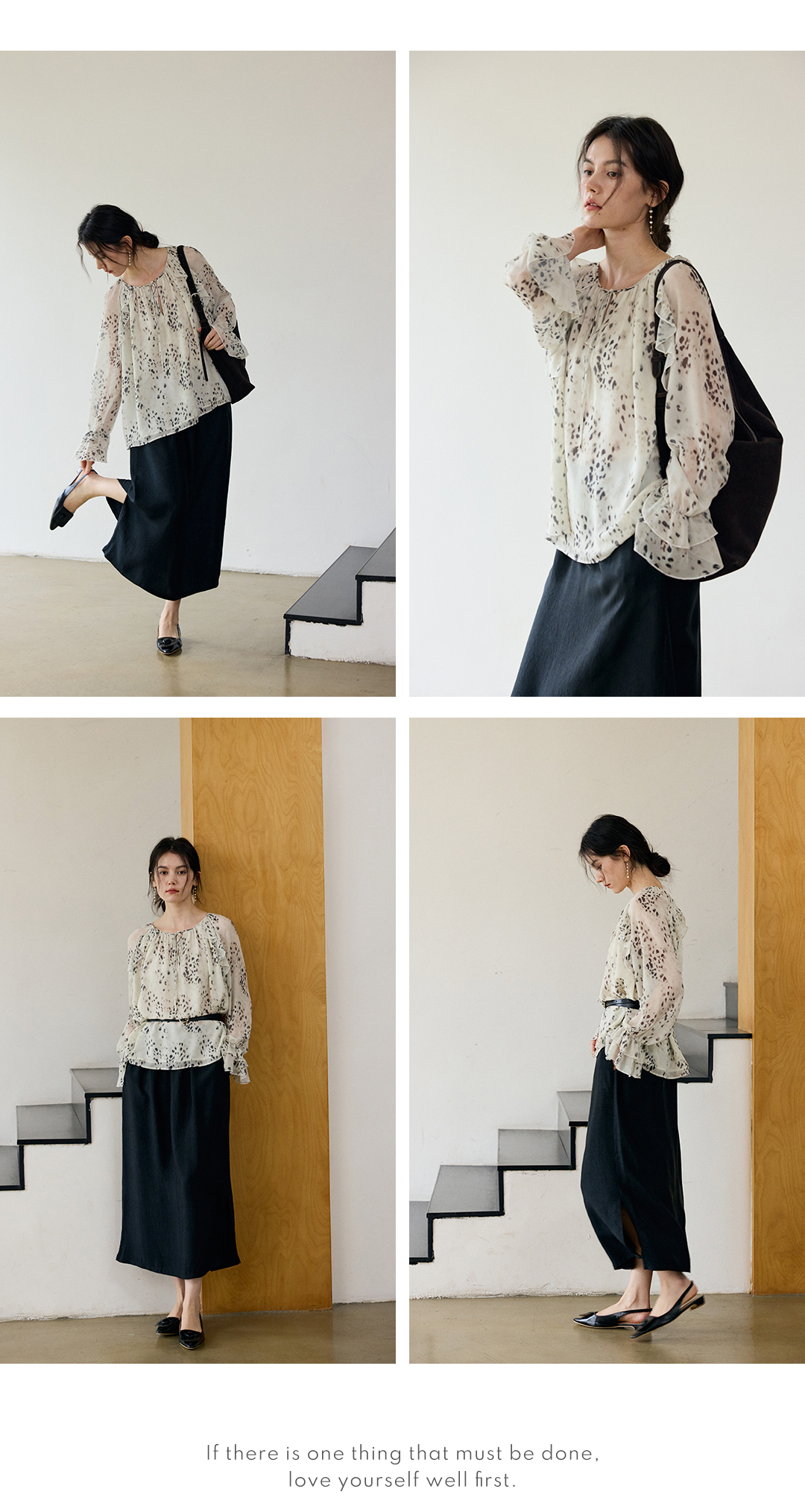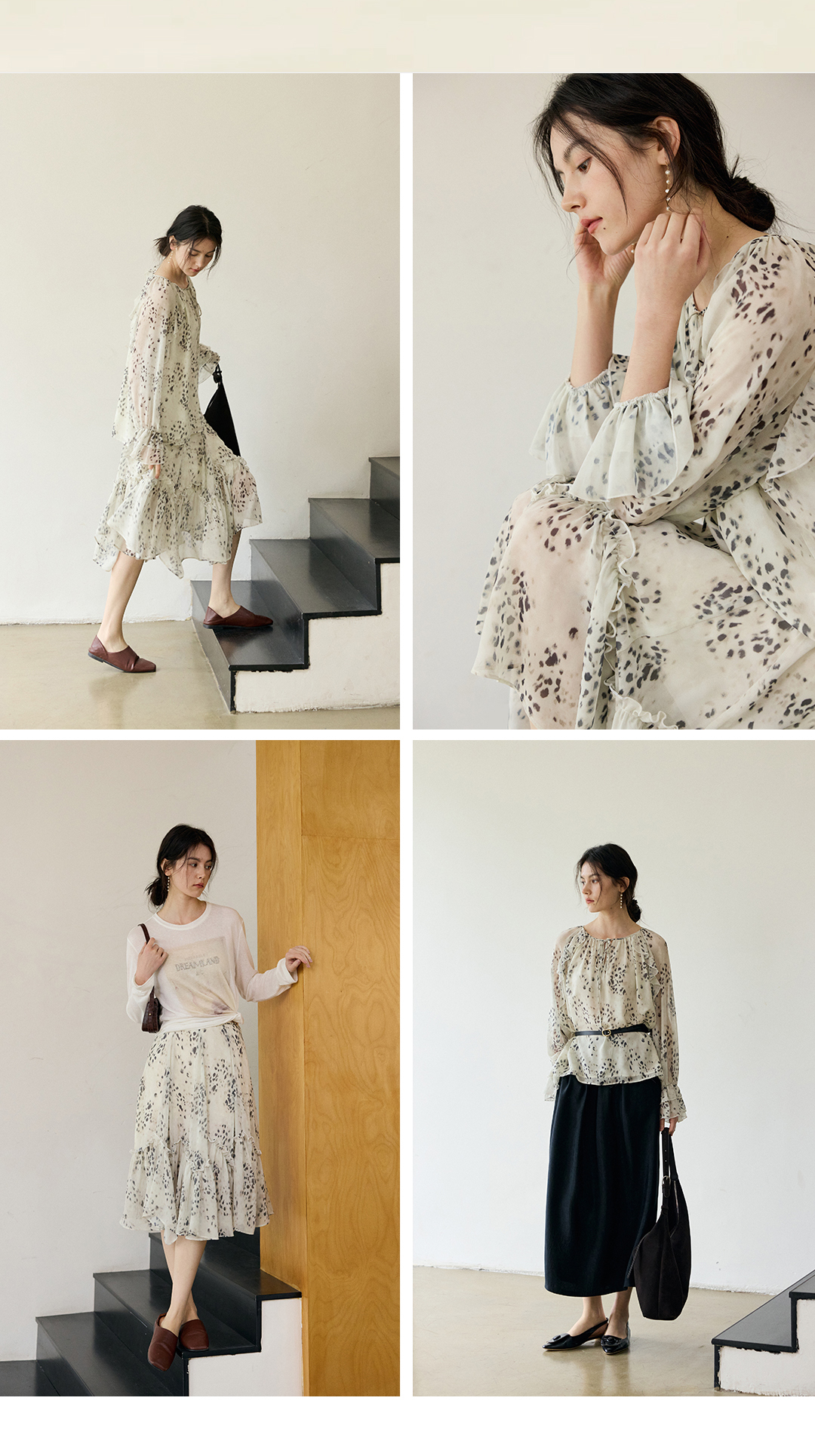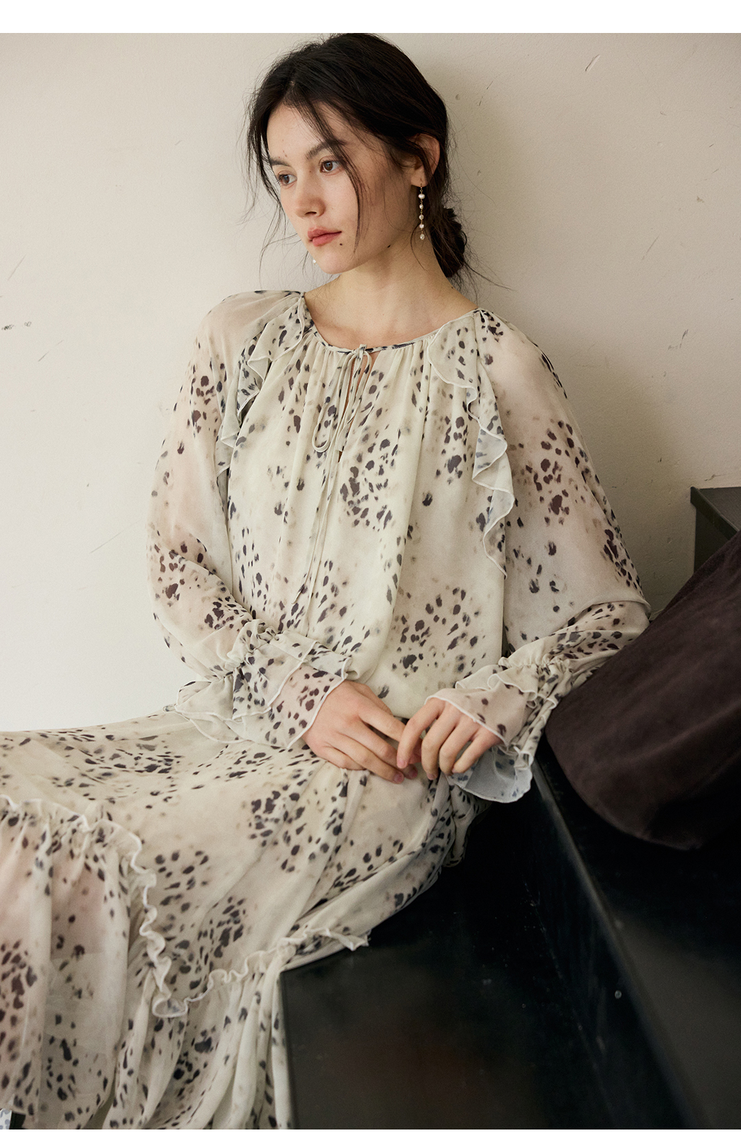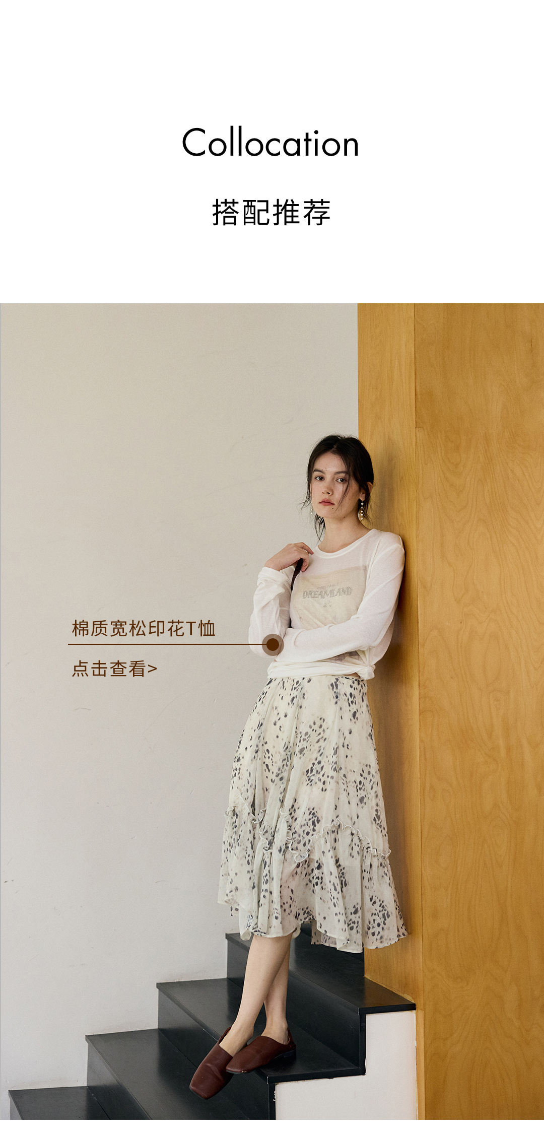 花边抽绳宽松印花衬衫