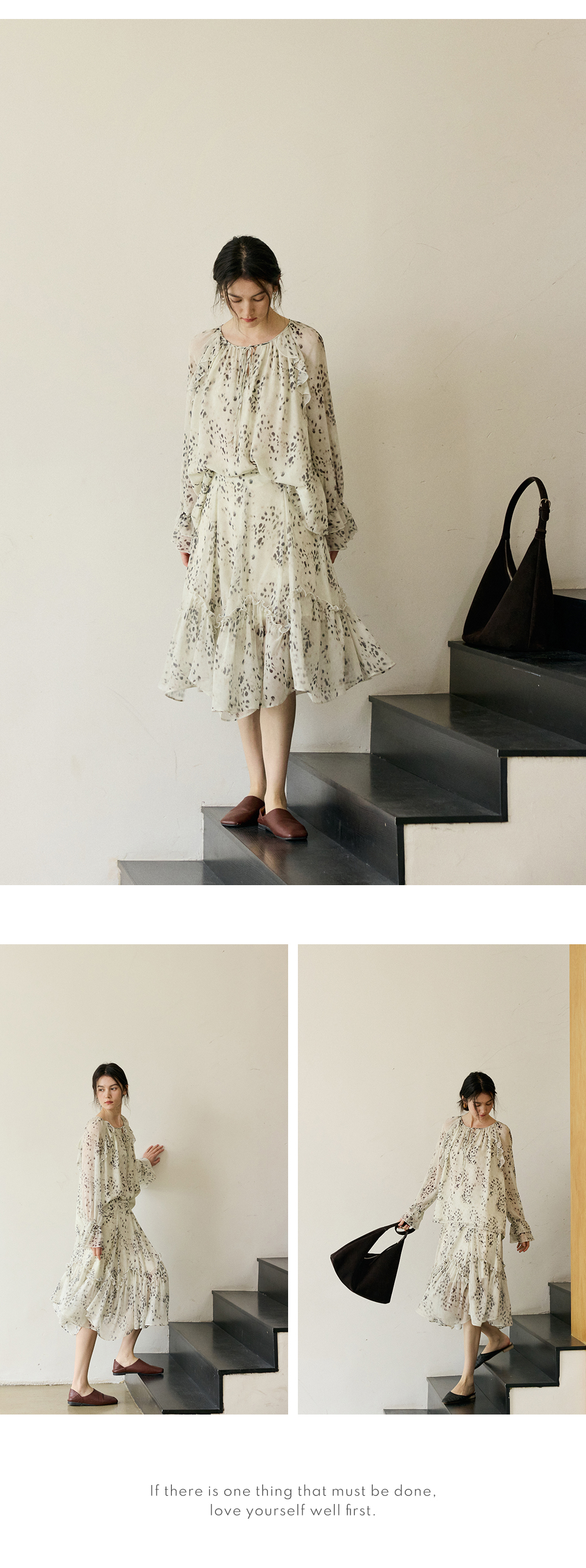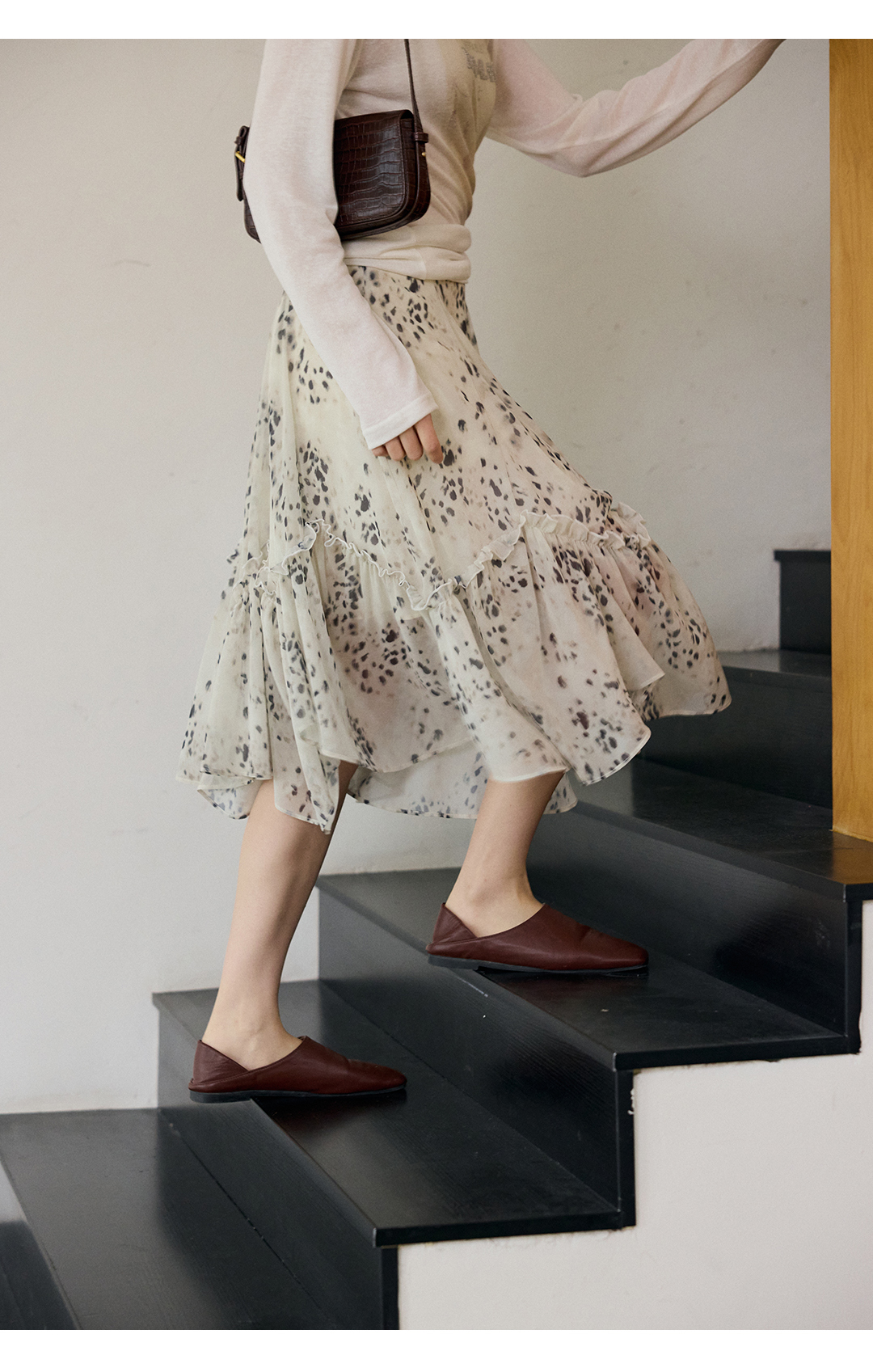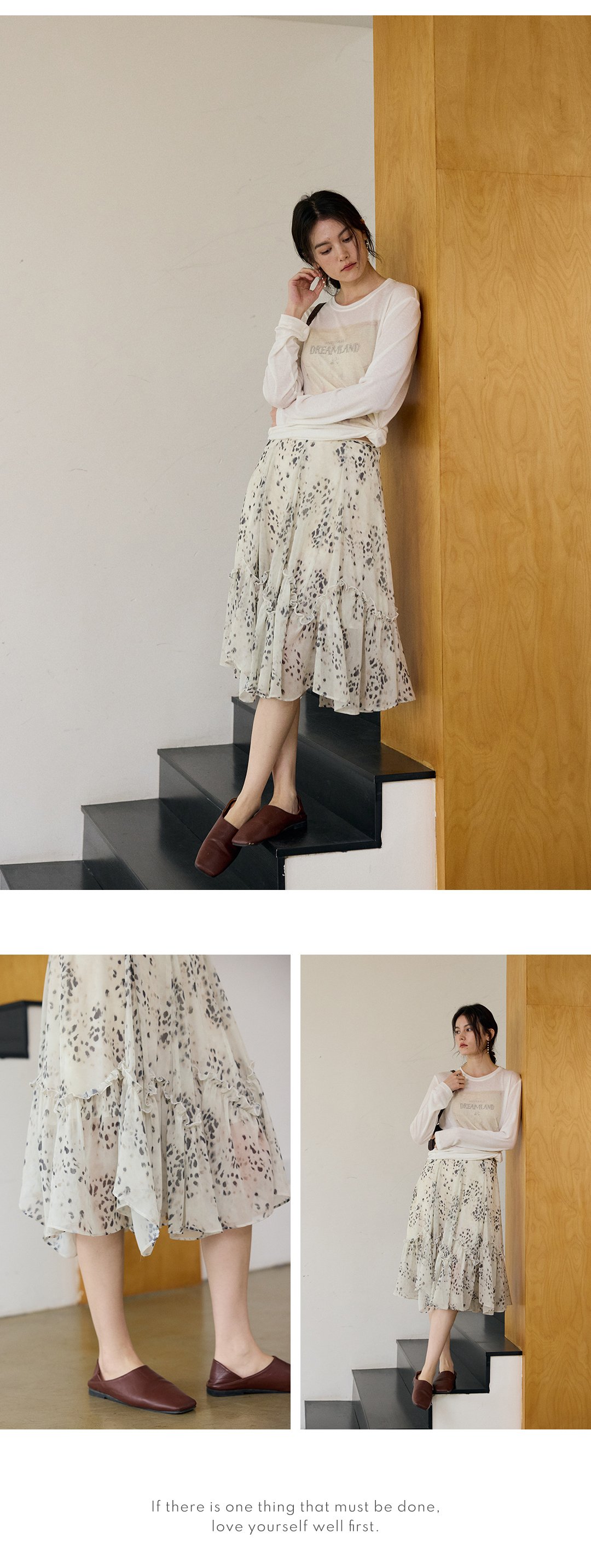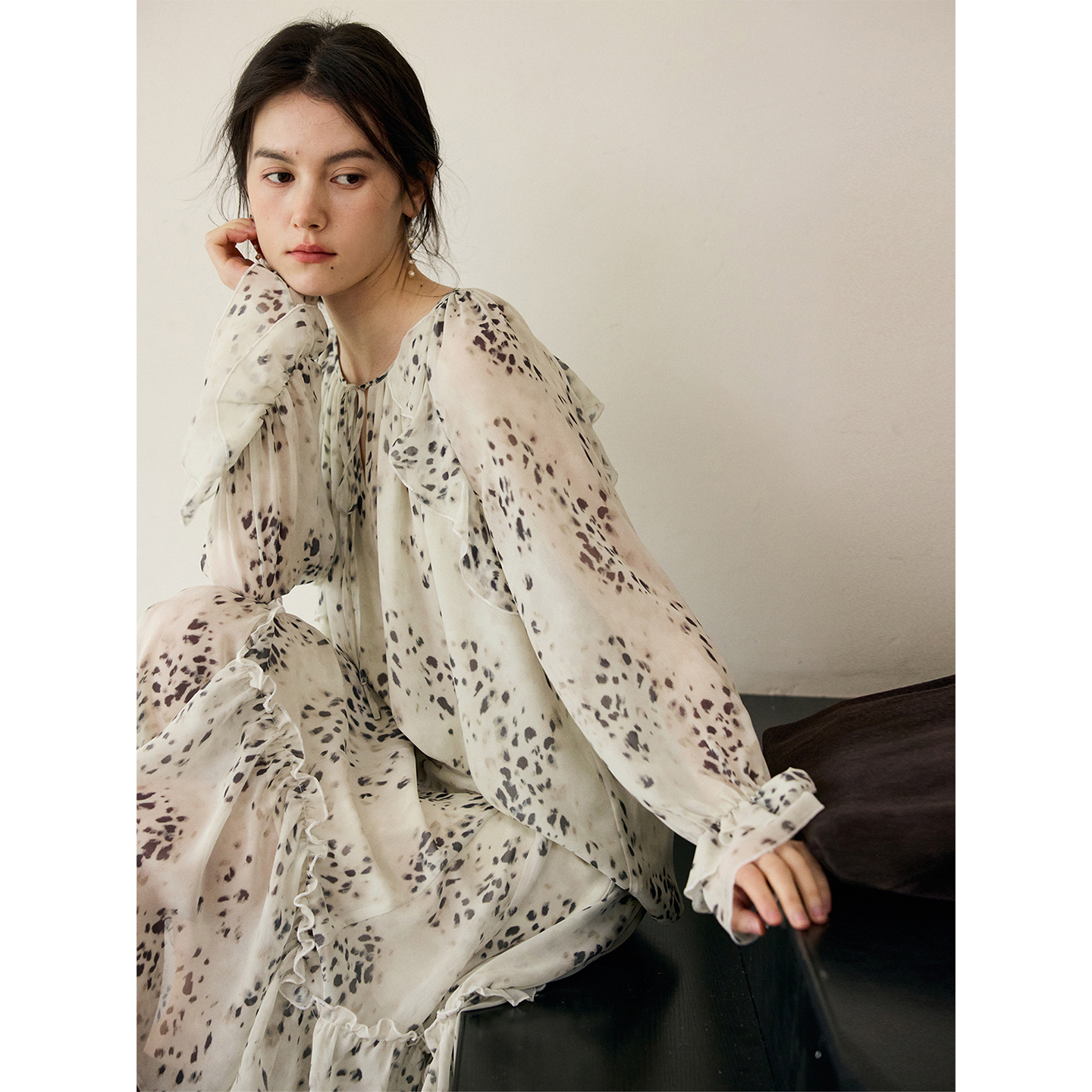 花边抽绳宽松印花衬衫