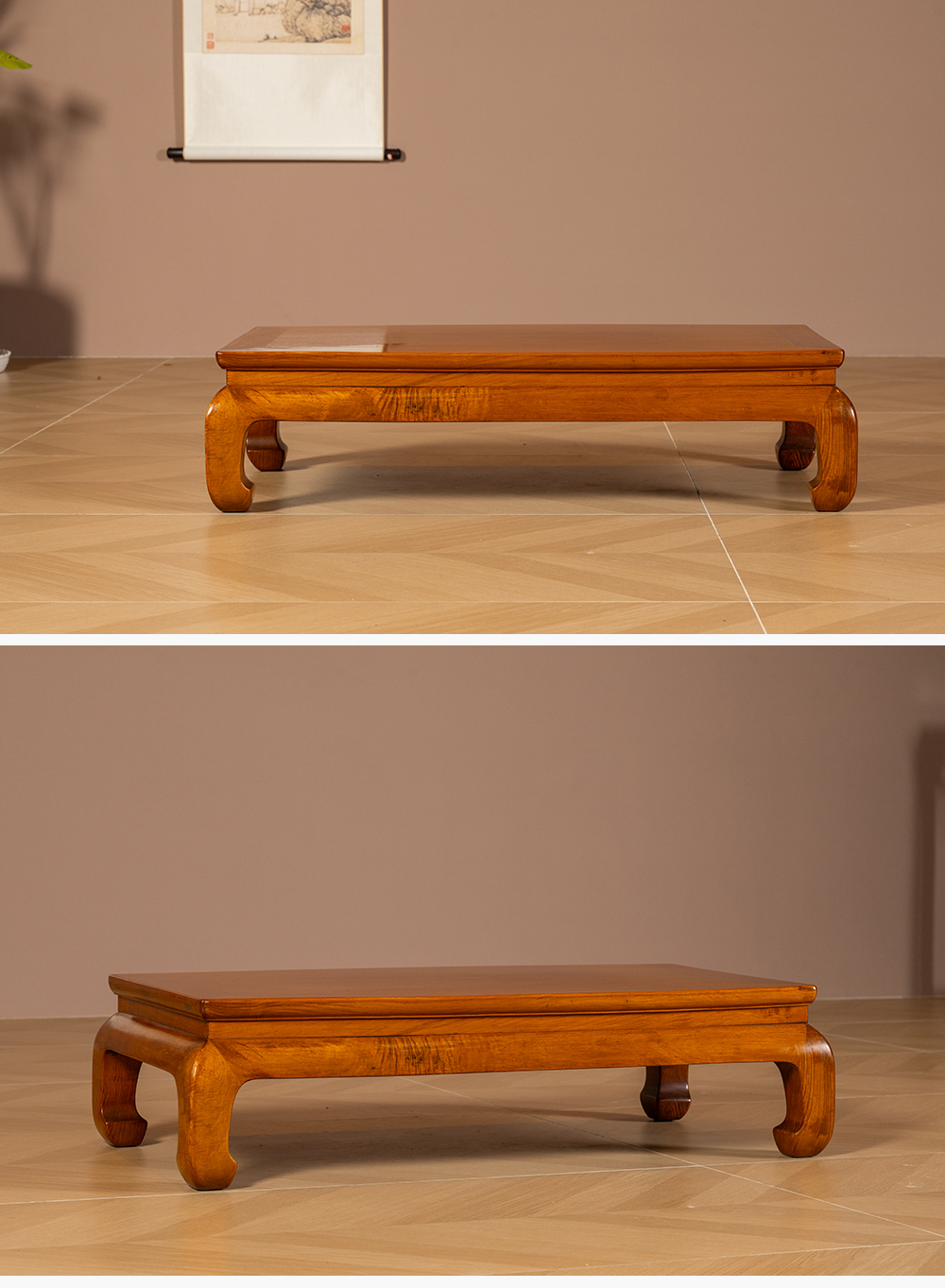 二十世纪 黄花梨束腰马蹄腿炕桌