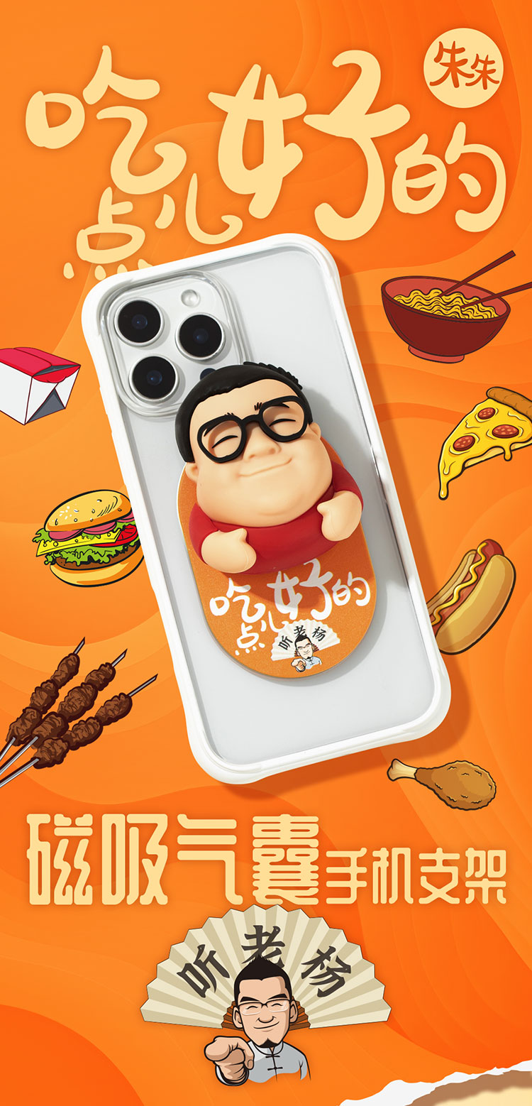 【听老杨原创】我朱“吃点儿好的”3D硅胶人偶磁吸气囊手机支架 商品图1
