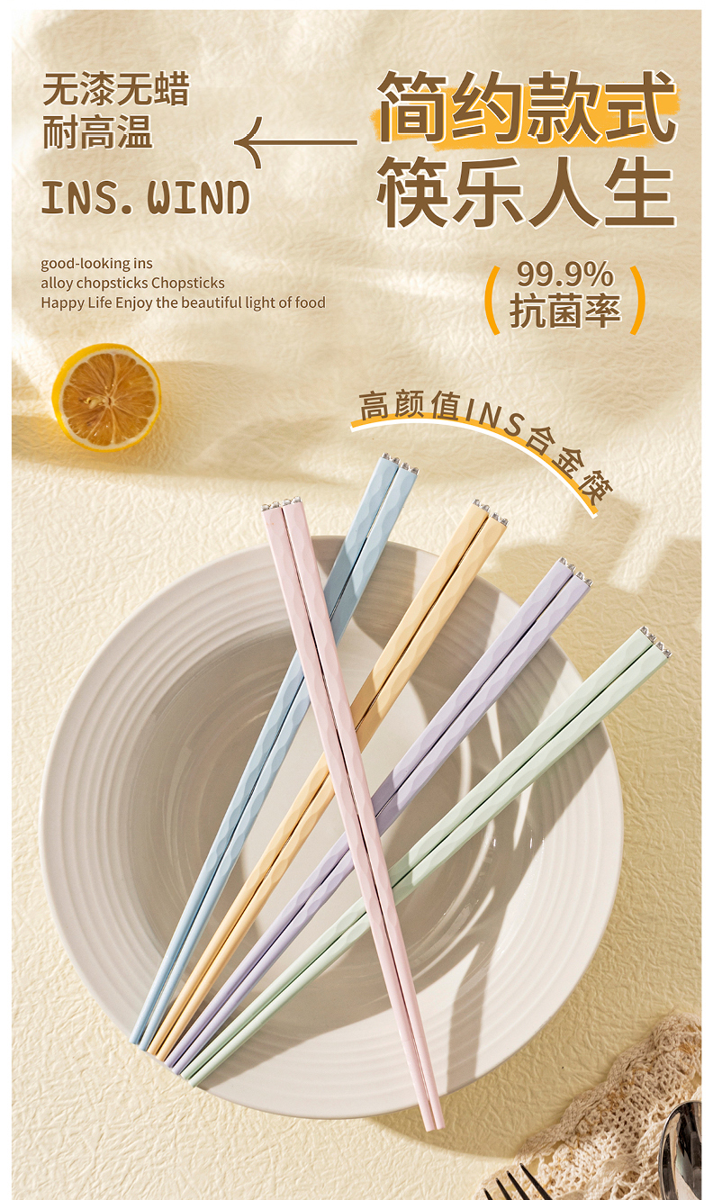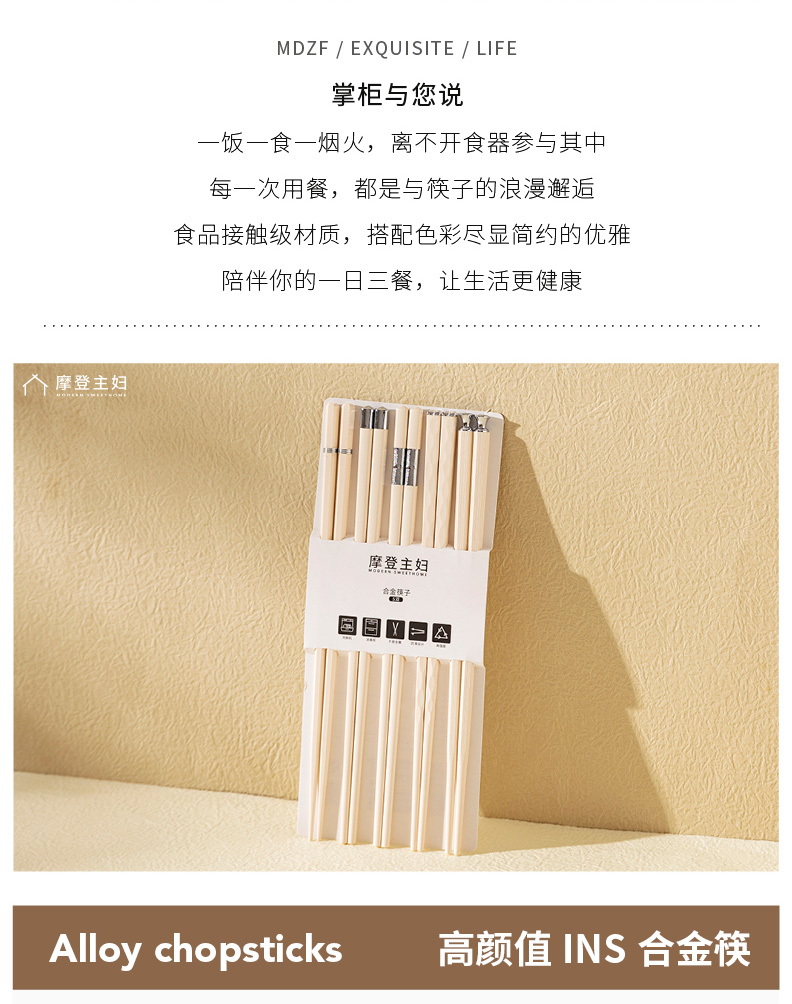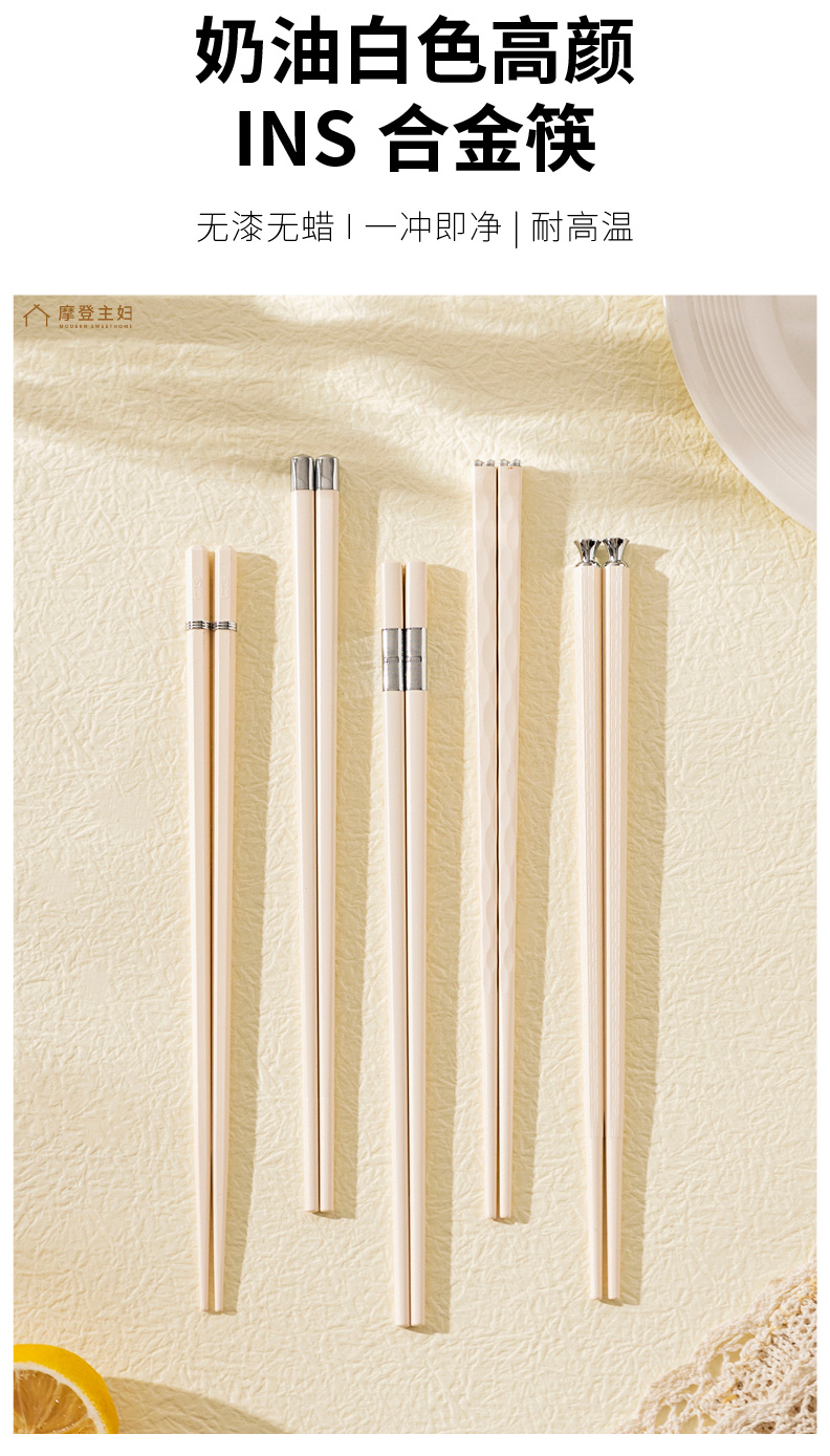 摩登主妇筷子家庭专人专用家用抗菌防霉轻奢高级感食品级合金筷子