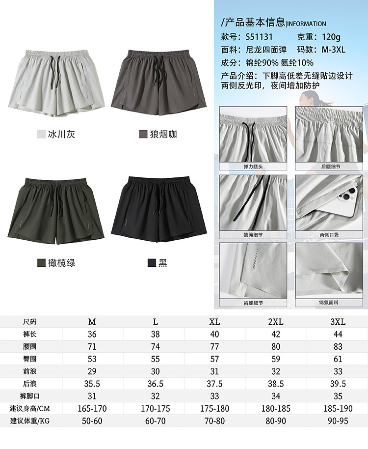 跃牌【跃LEAP-ACTIVE】系列 夏季速干透气运动短裤男子马拉松田径三分裤S51131