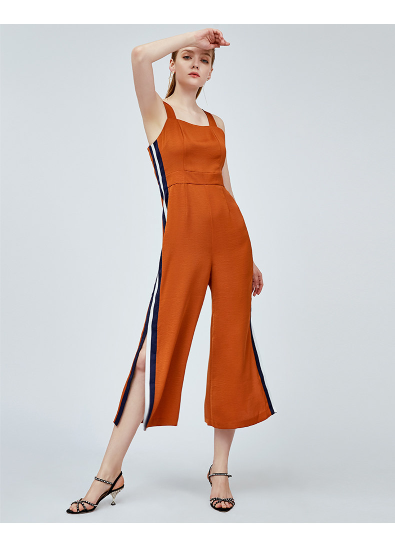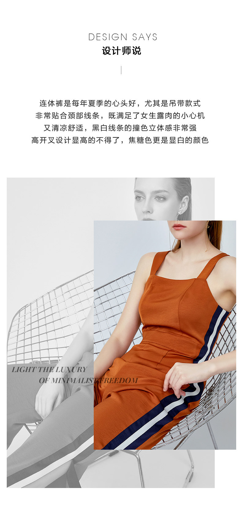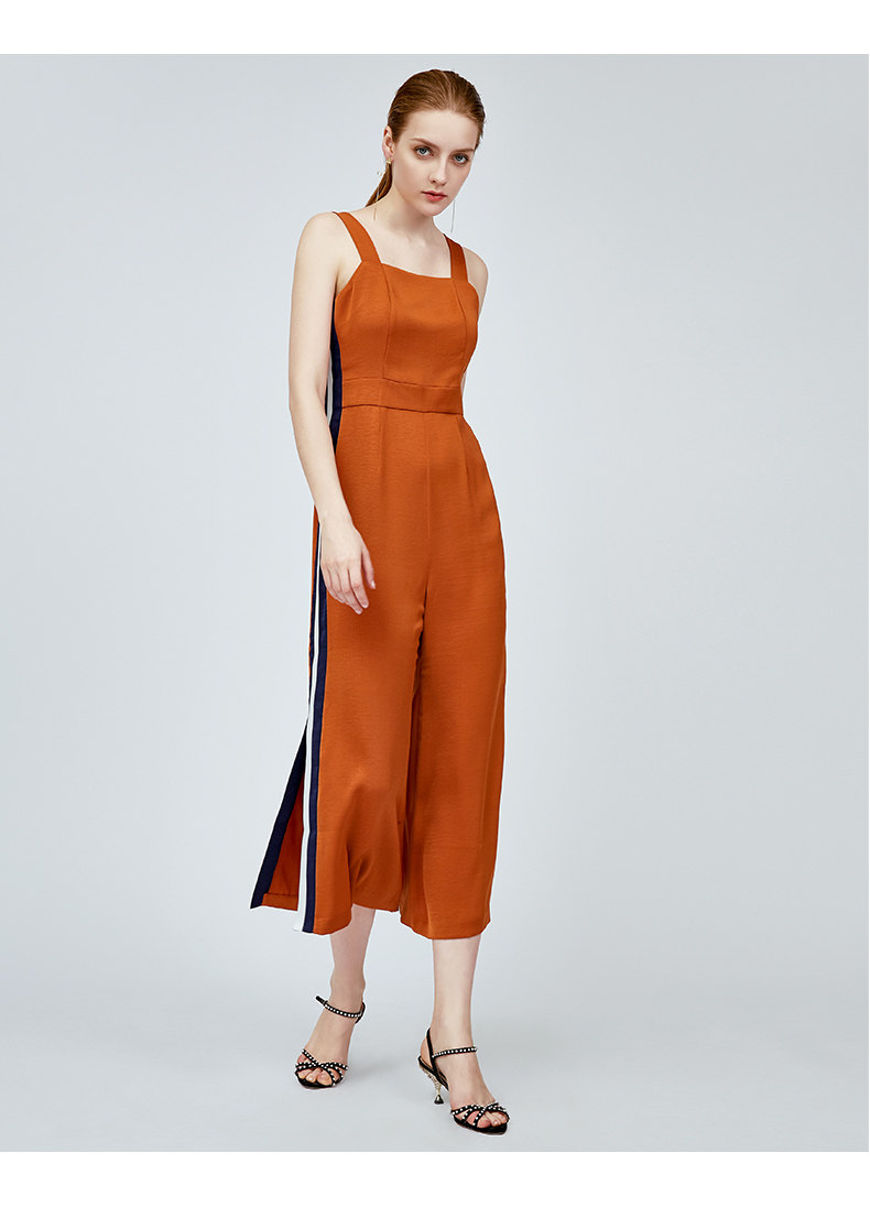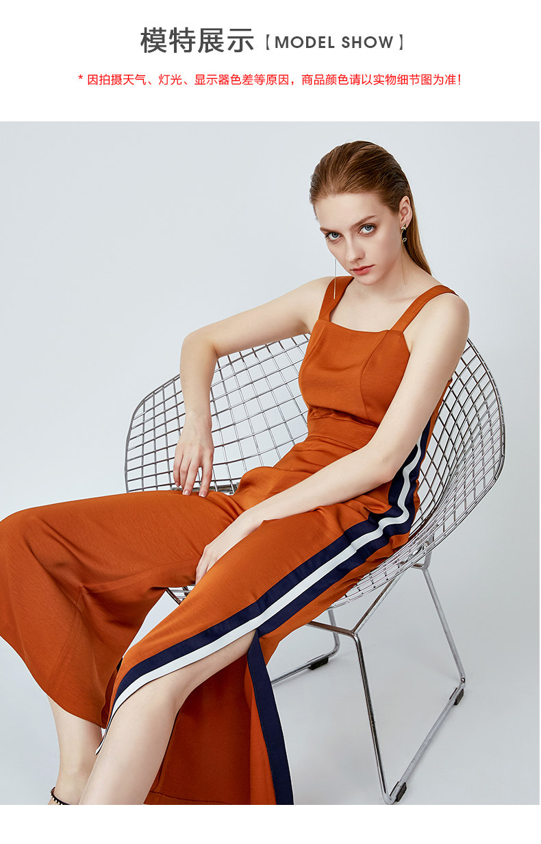 VIMAGE纬漫纪夏季吊带宽松休闲时尚焦糖色阔腿裤连体裤V1107738
