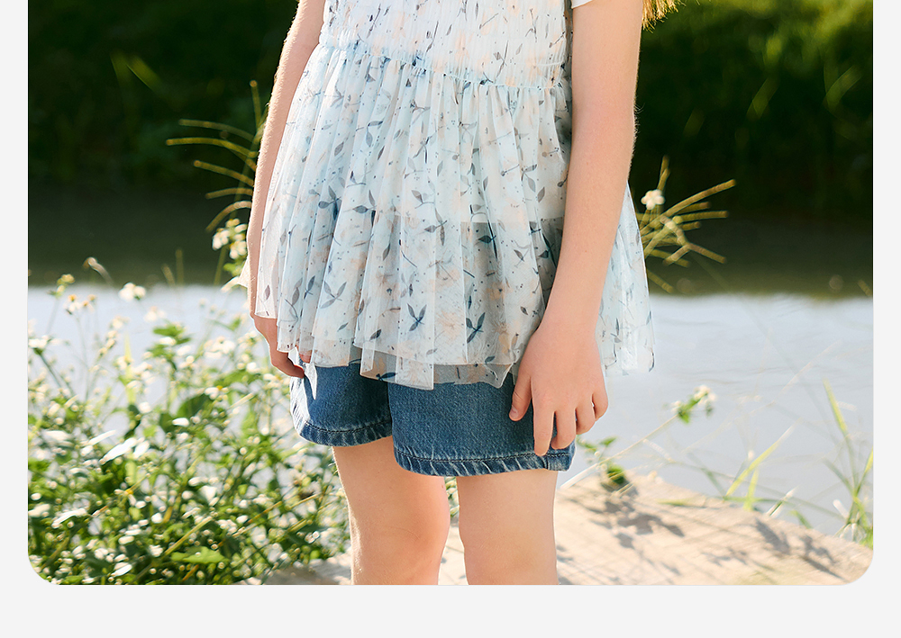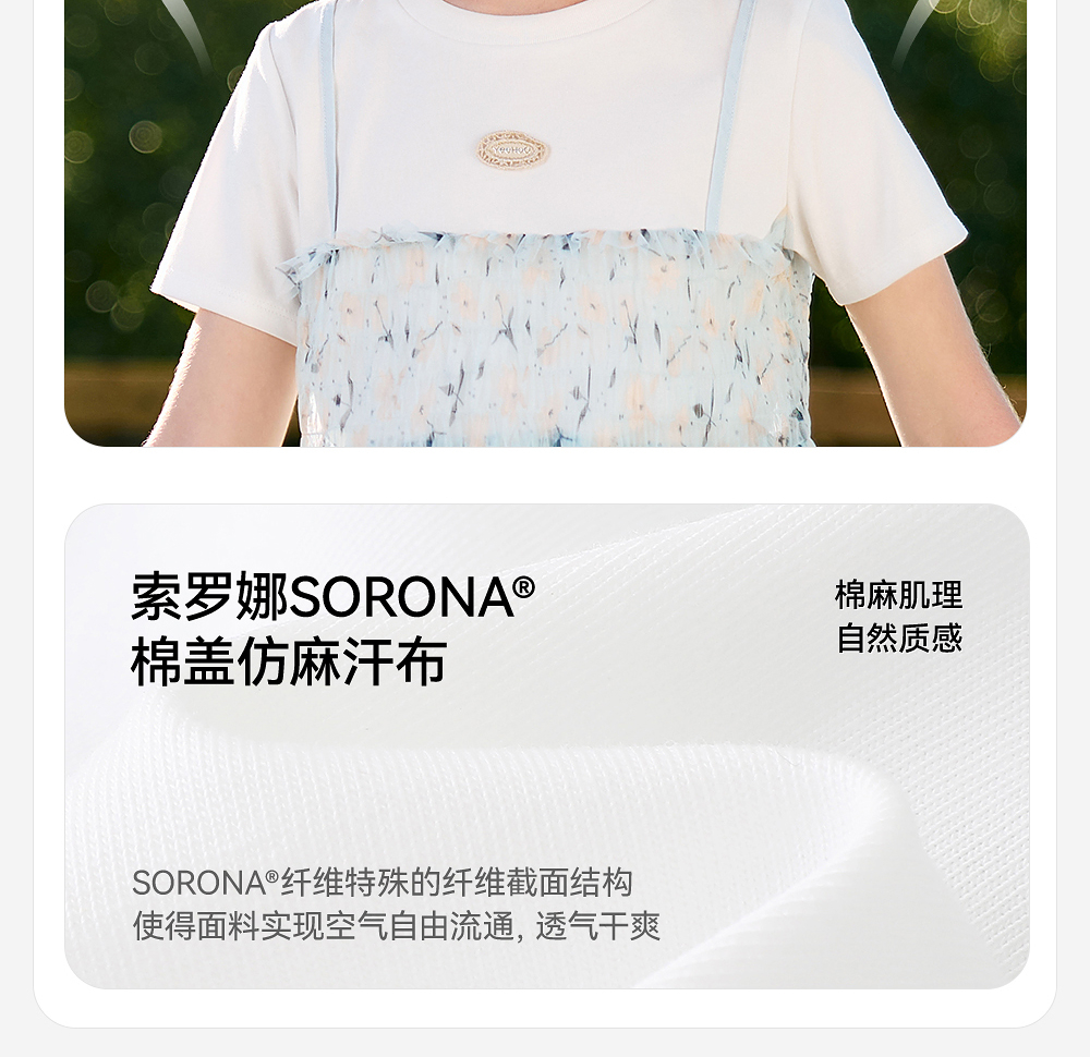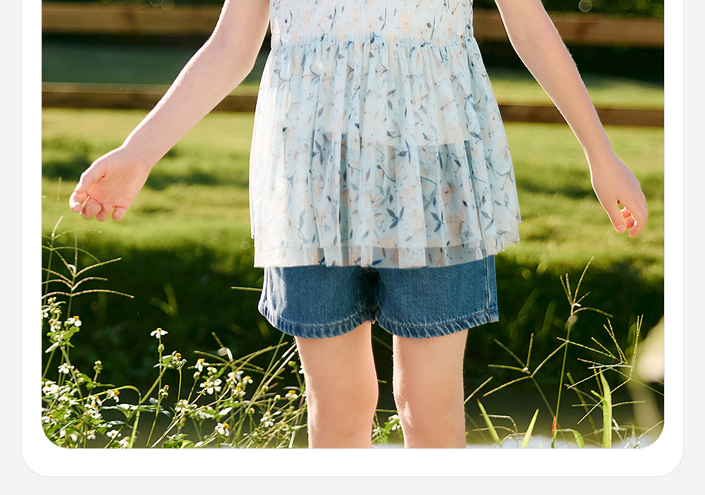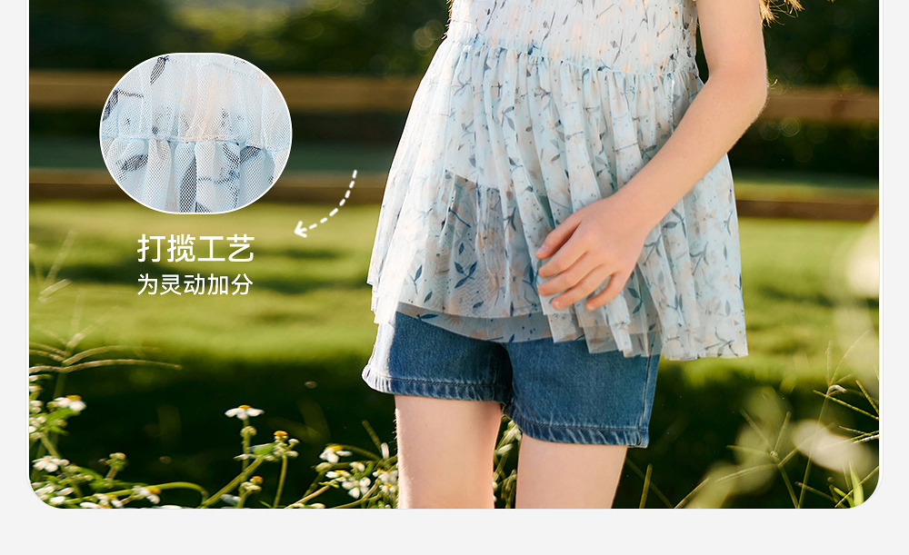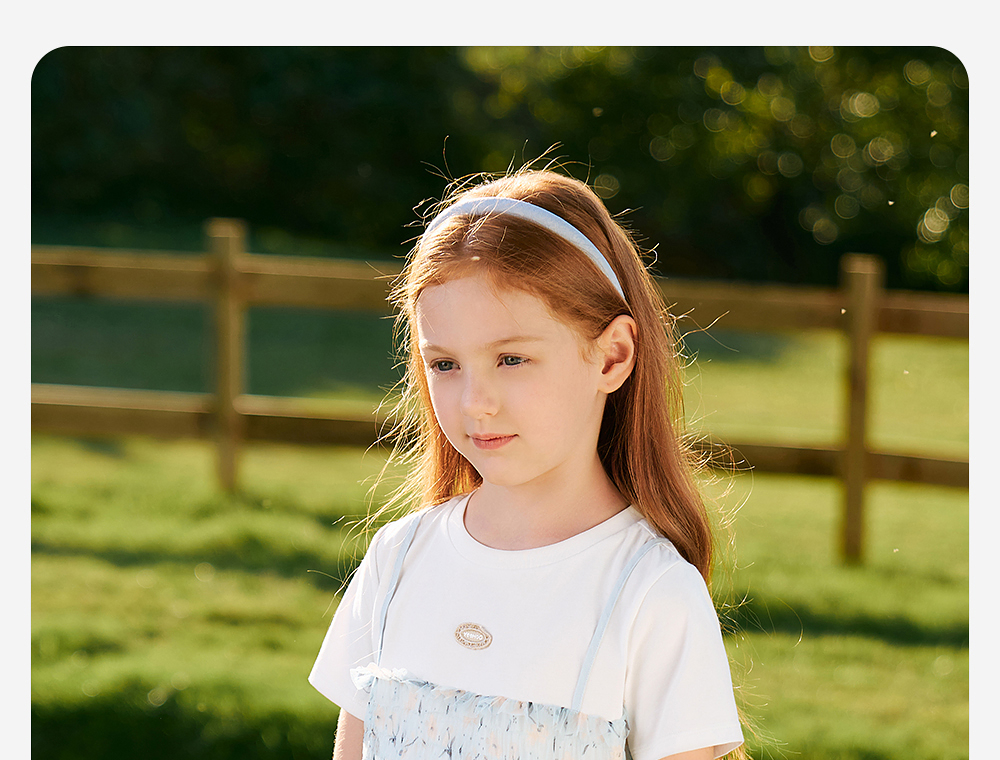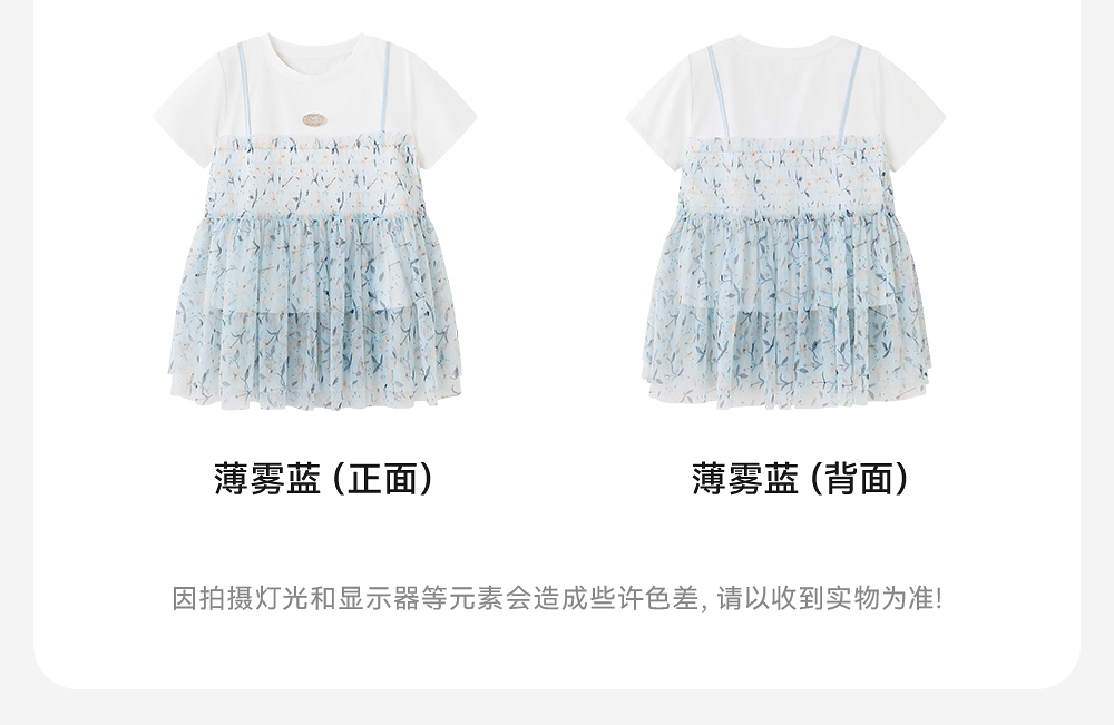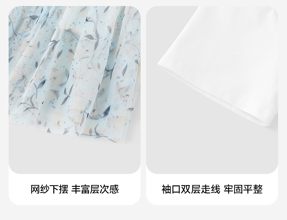 英氏儿童T恤夏季网纱透气女童T恤中大童基础款百搭短袖假两件新款