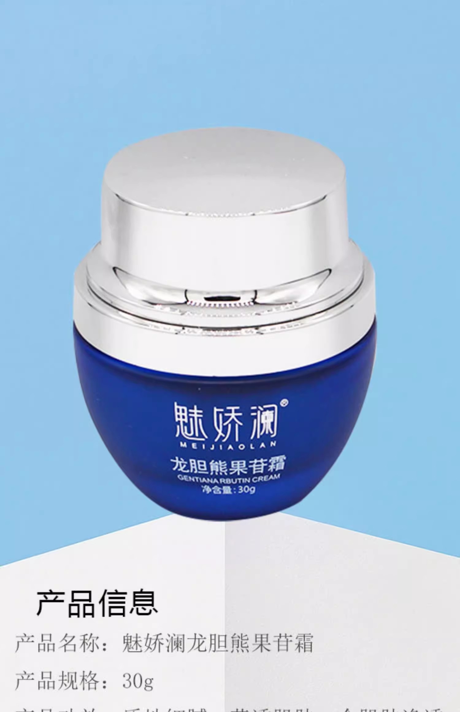 魅娇澜龙胆熊果苷霜30g美容院正品直发包邮提亮肤色祛黄改善美肤