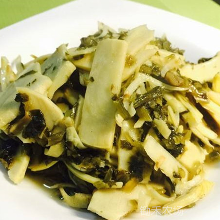 7.然后,合入切好的雪菜翻动一下煮开、煮上5分钟。