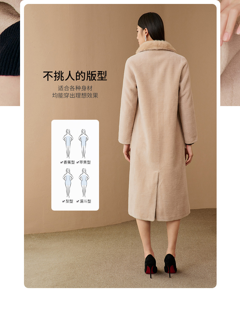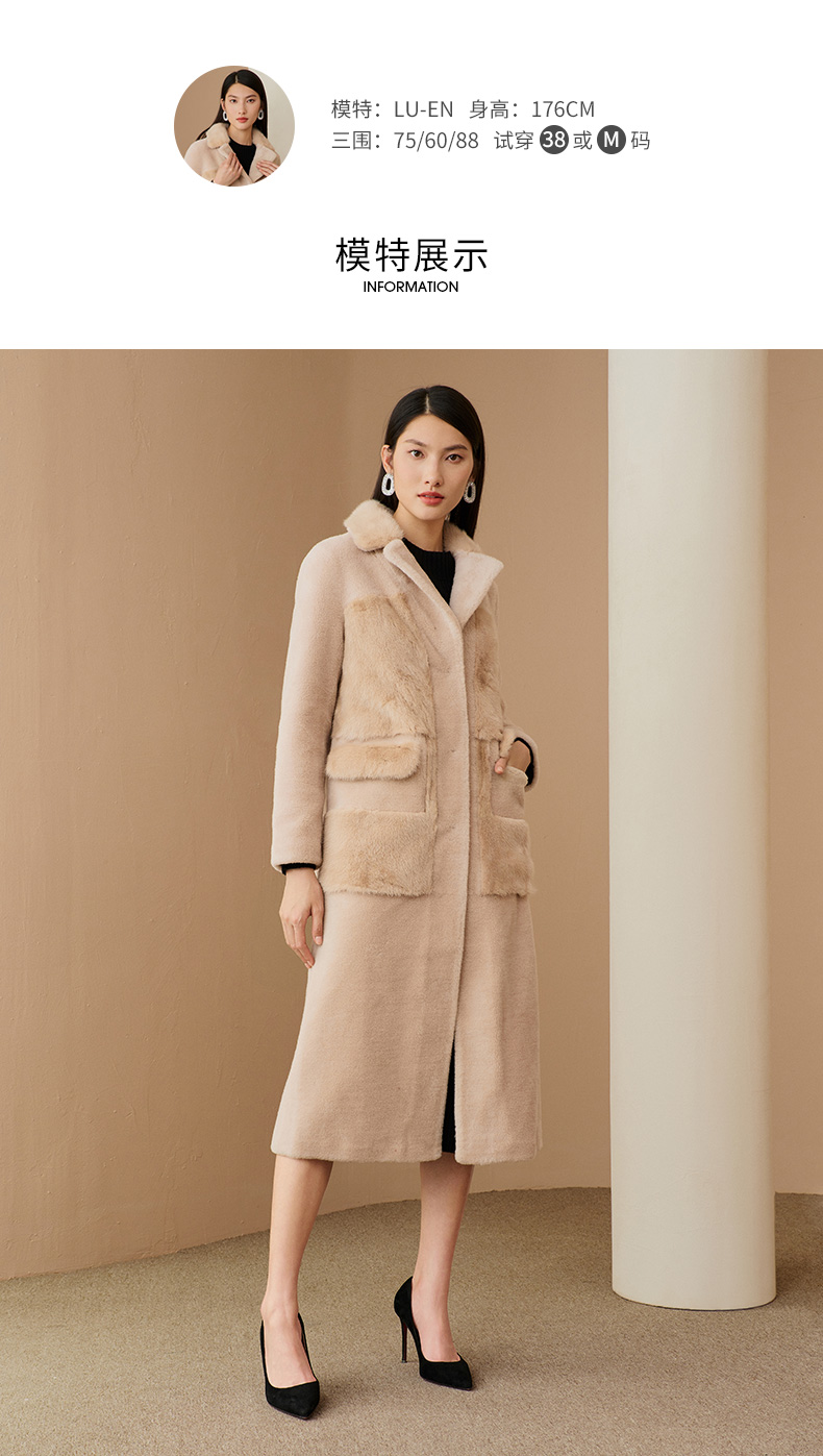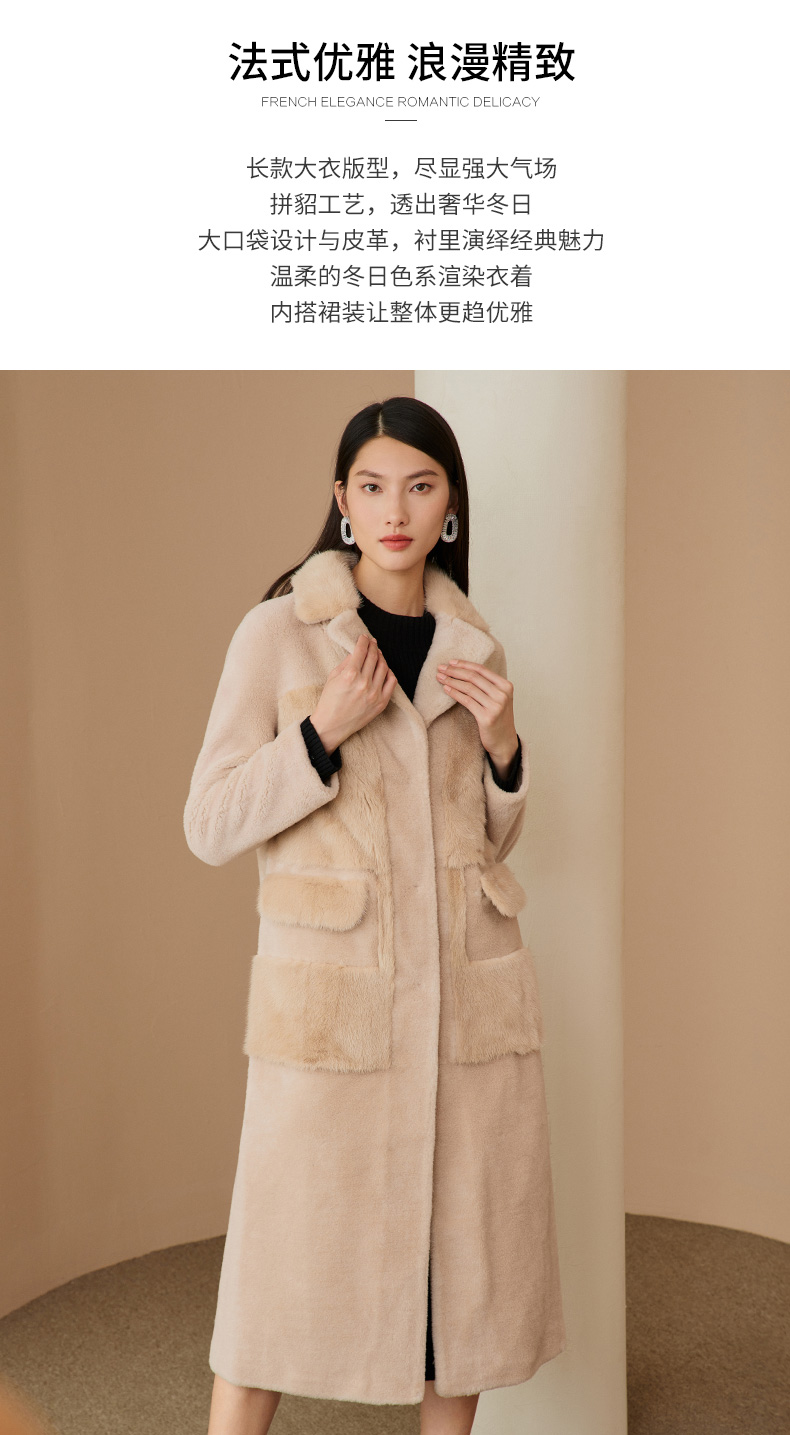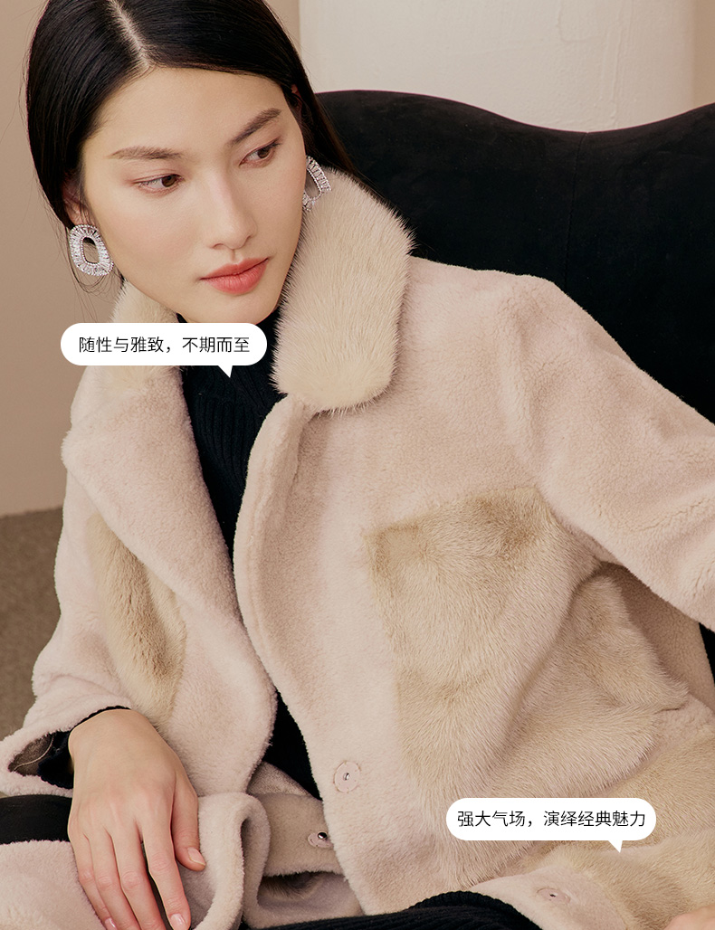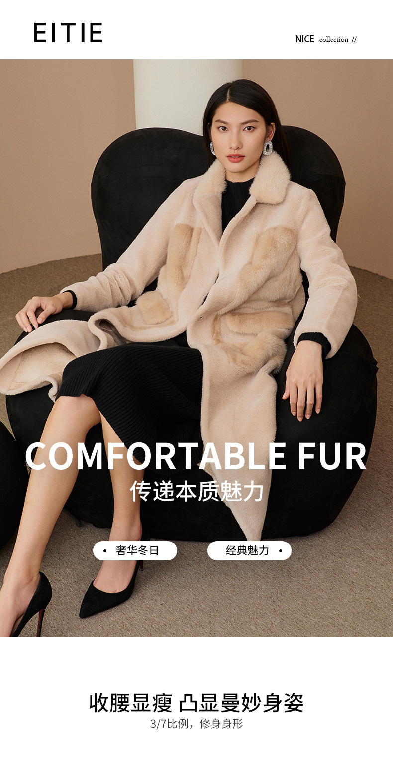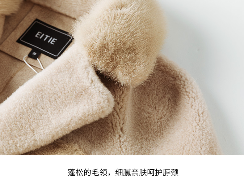 EITIE爱特爱冬季新款时尚优雅翻领保暖水貂毛皮草外套女6893521