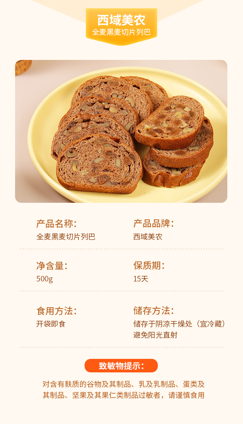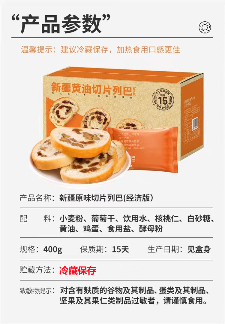 【产品规格】 原味切片列巴 400g/箱(买1送1,实发两箱)一箱大约16-18片