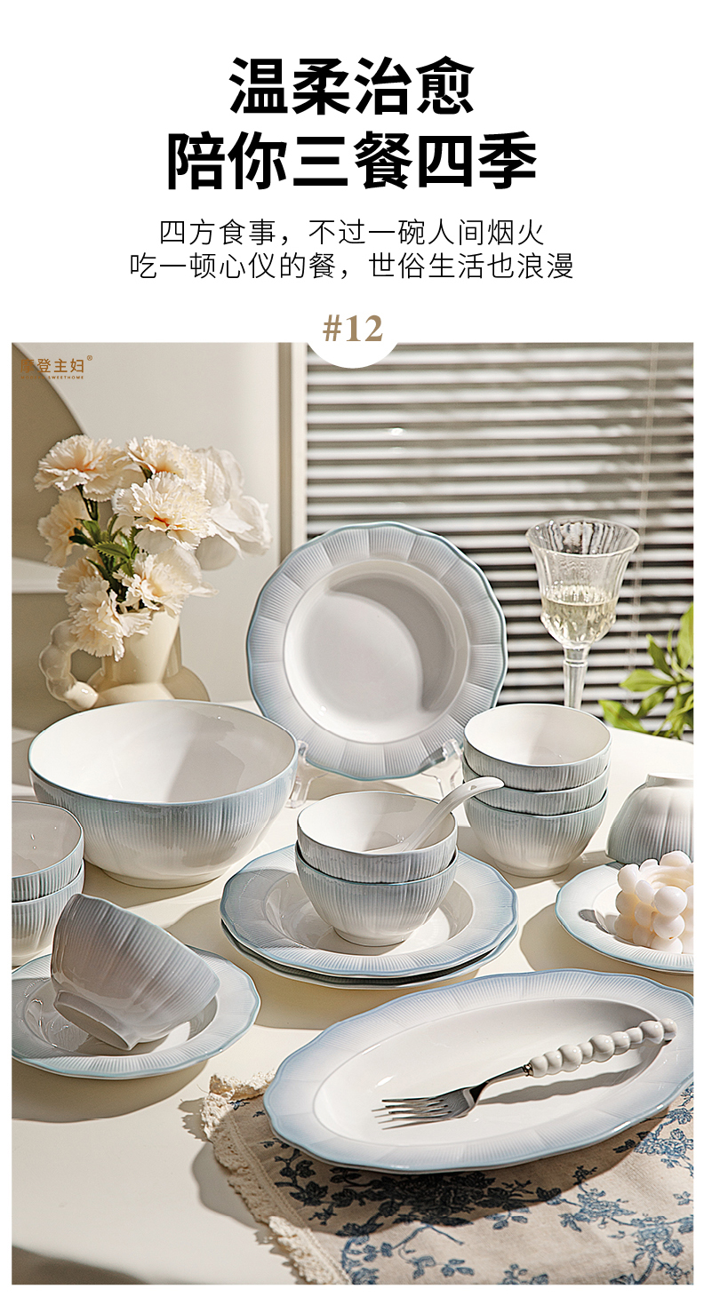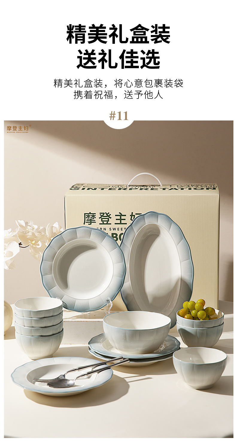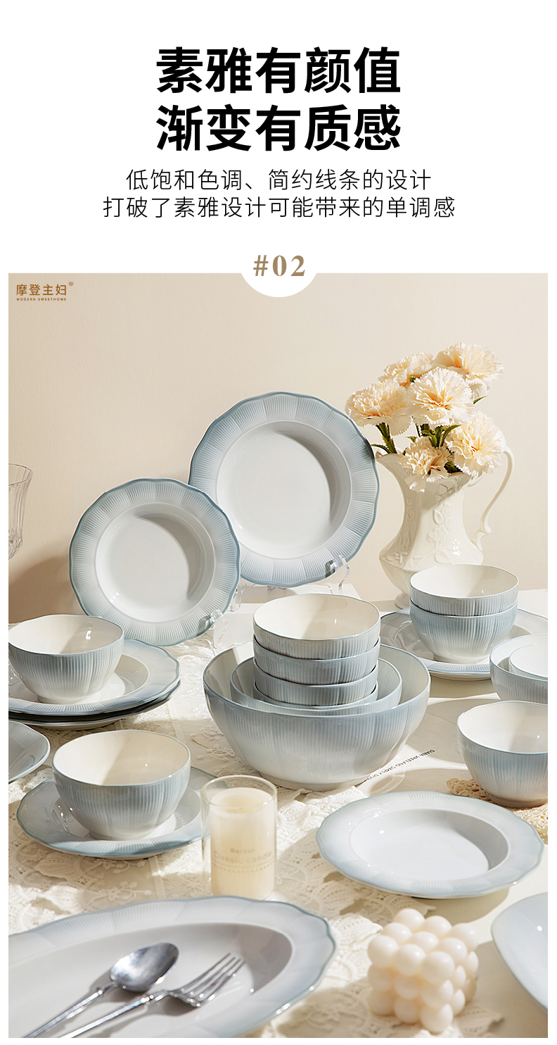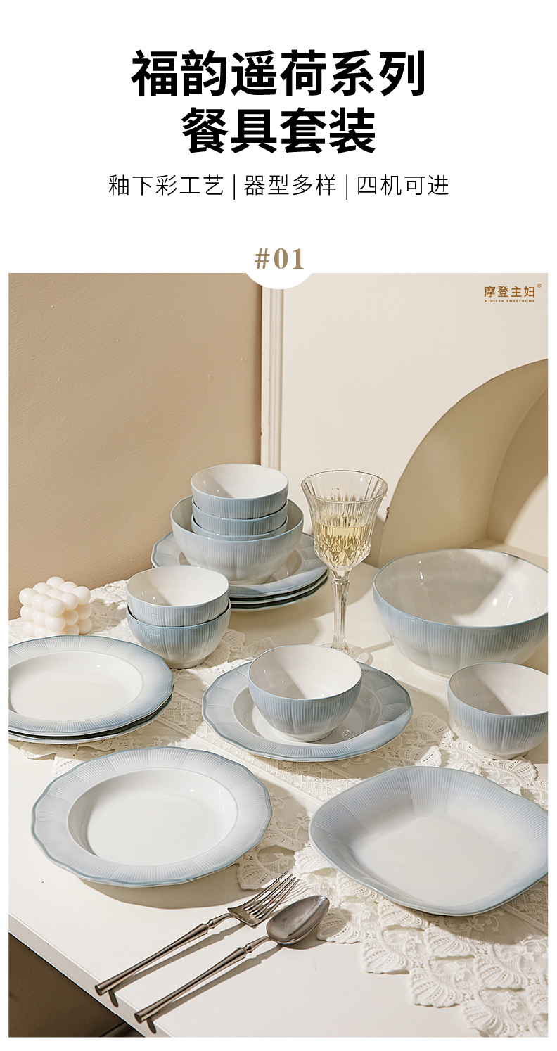 摩登主妇釉下彩餐具套装碗蝶家用2025新款高颜值碗具乔迁新居礼物