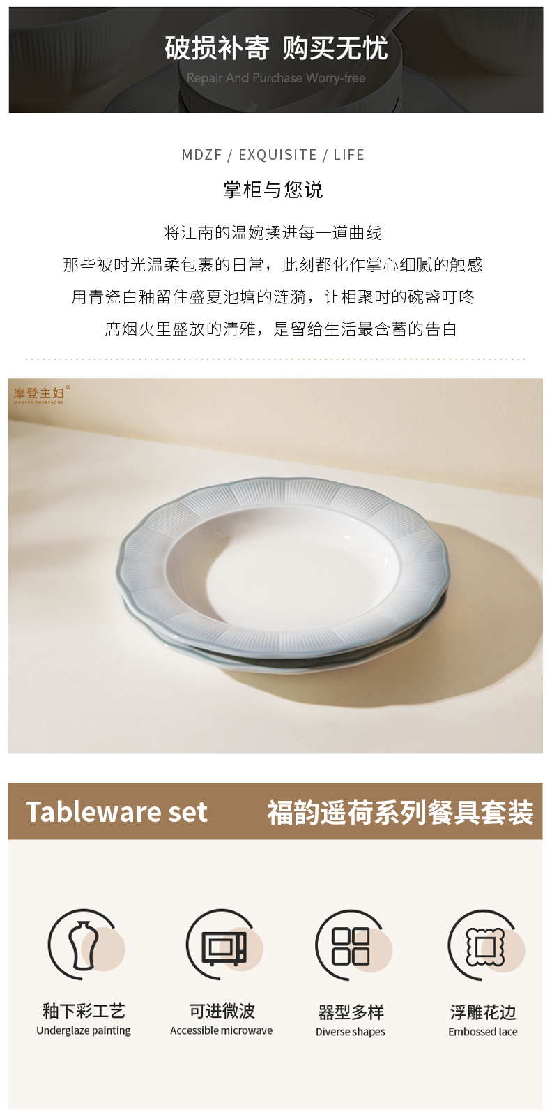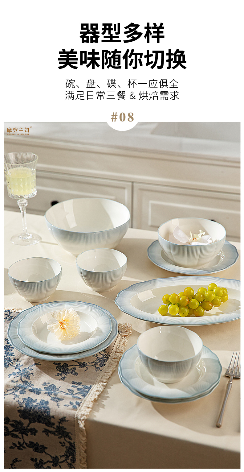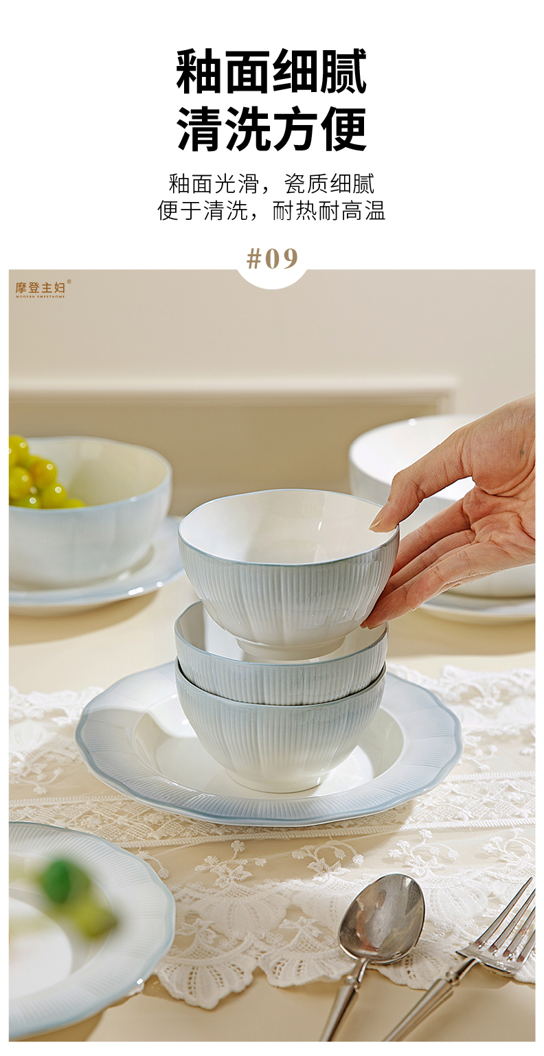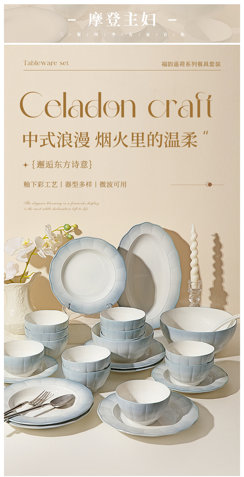 摩登主妇釉下彩餐具套装碗蝶家用2025新款高颜值碗具乔迁新居礼物
