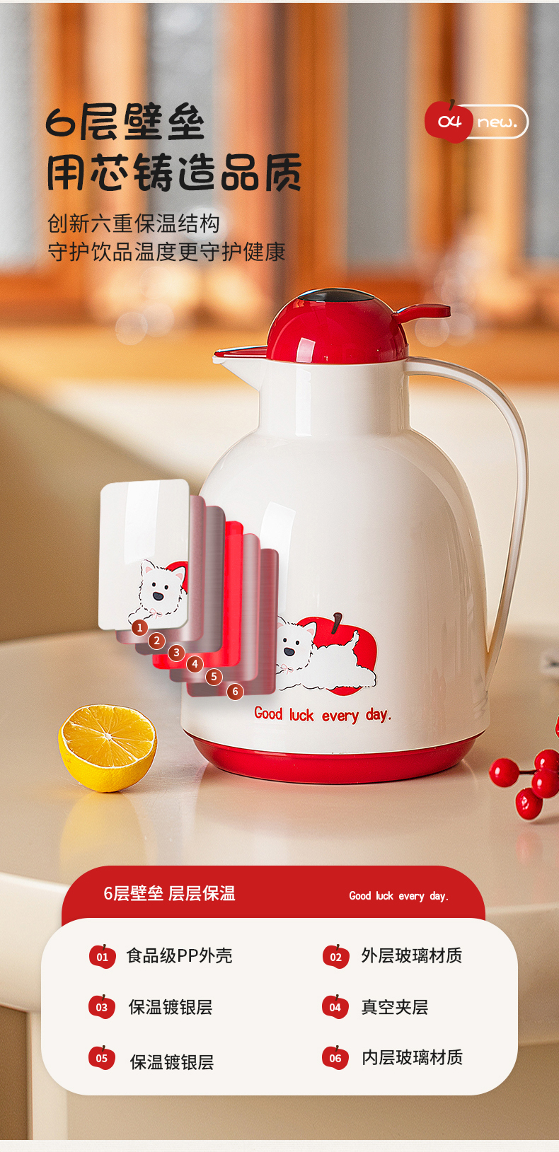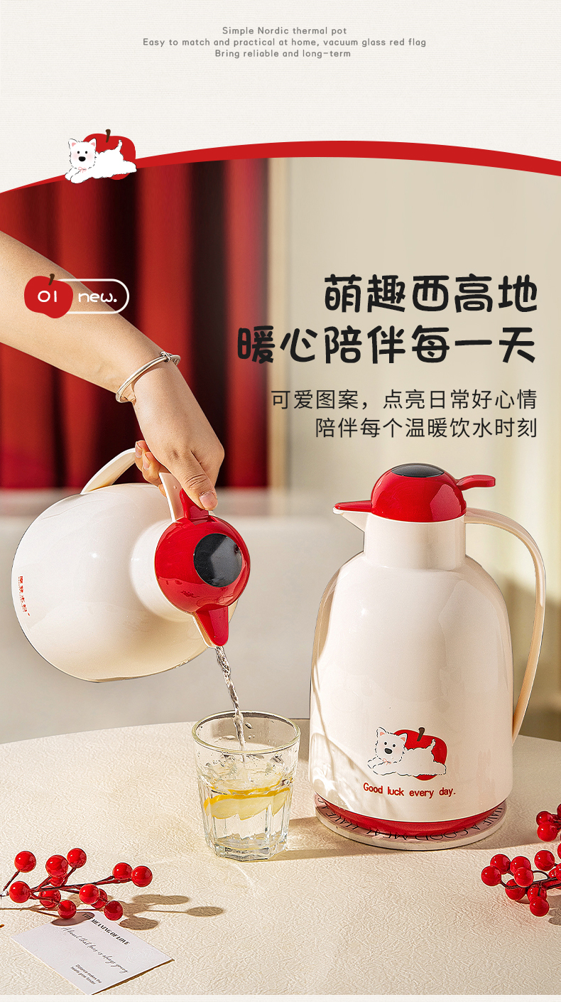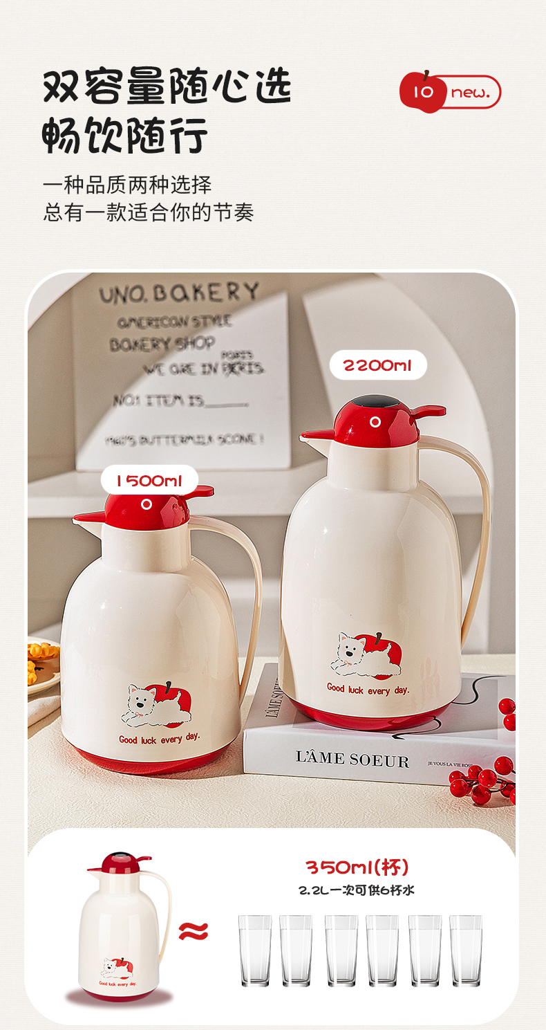摩登主妇保温壶大容量2025新款家用玻璃内胆开水瓶暖壶宿舍热水壶
