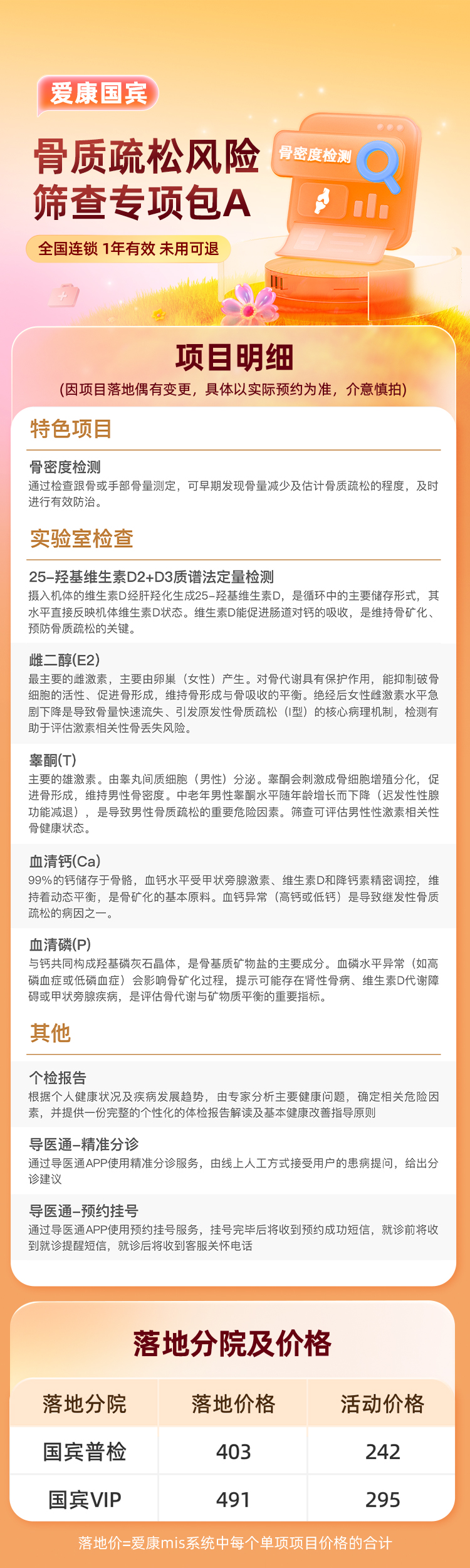 爱康国宾 骨质疏松风险筛查专项包A