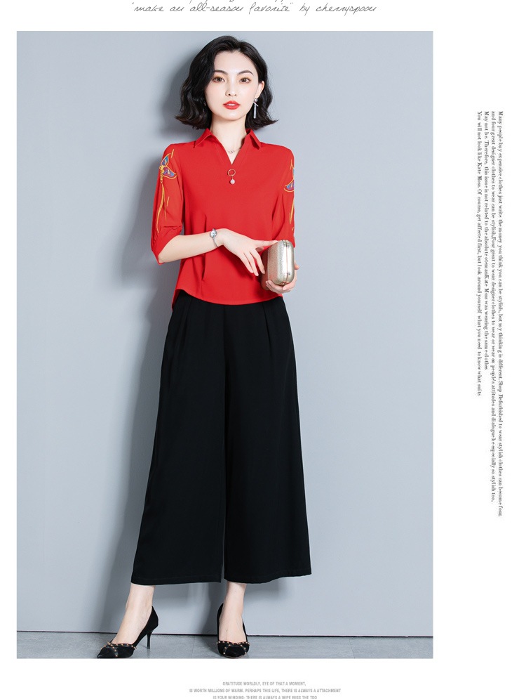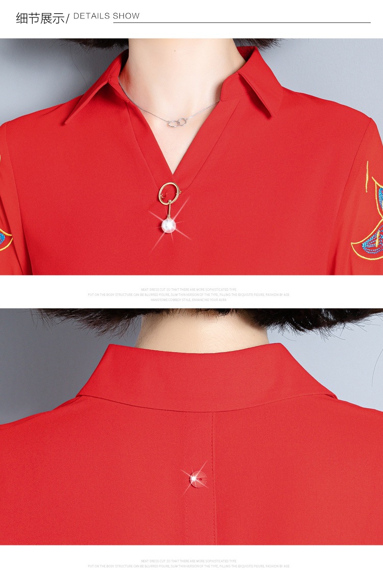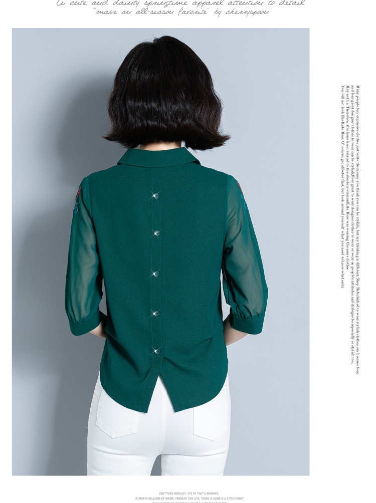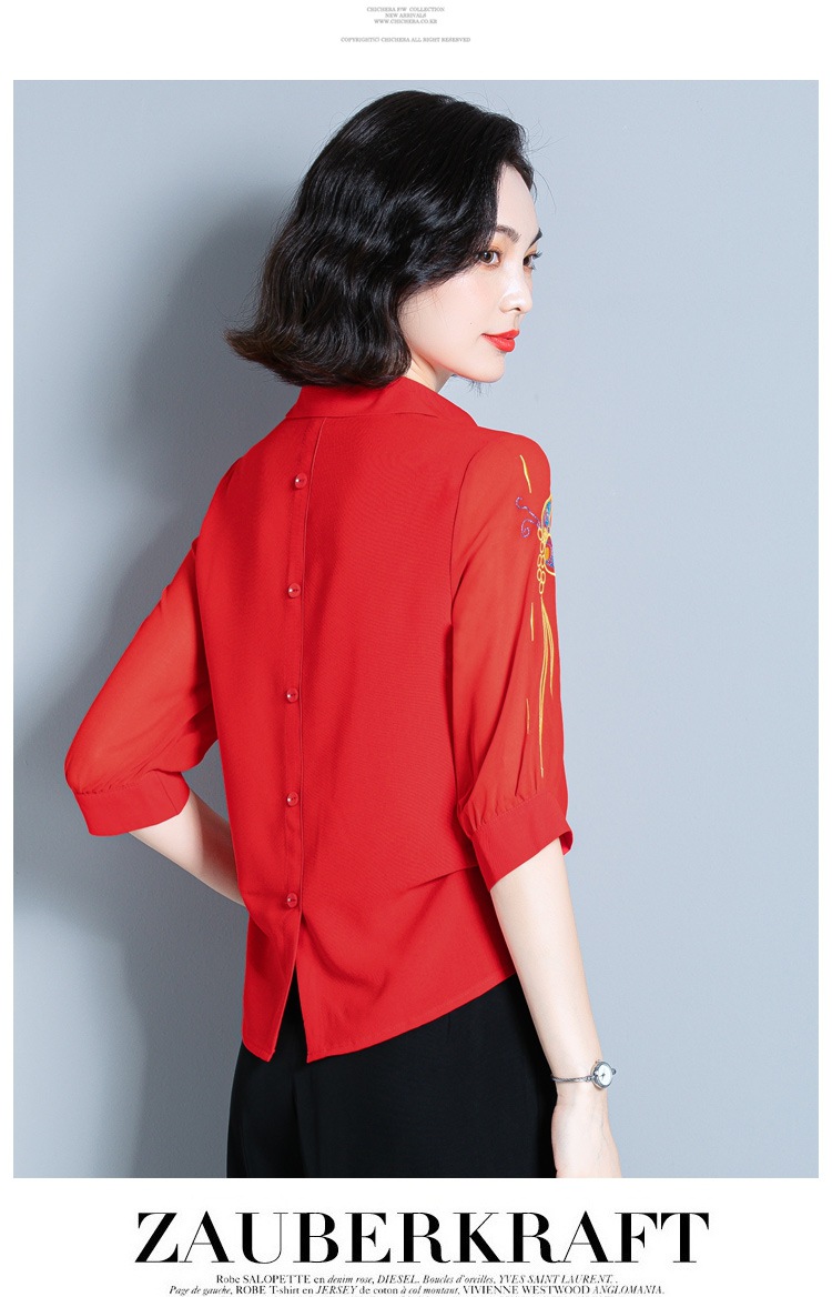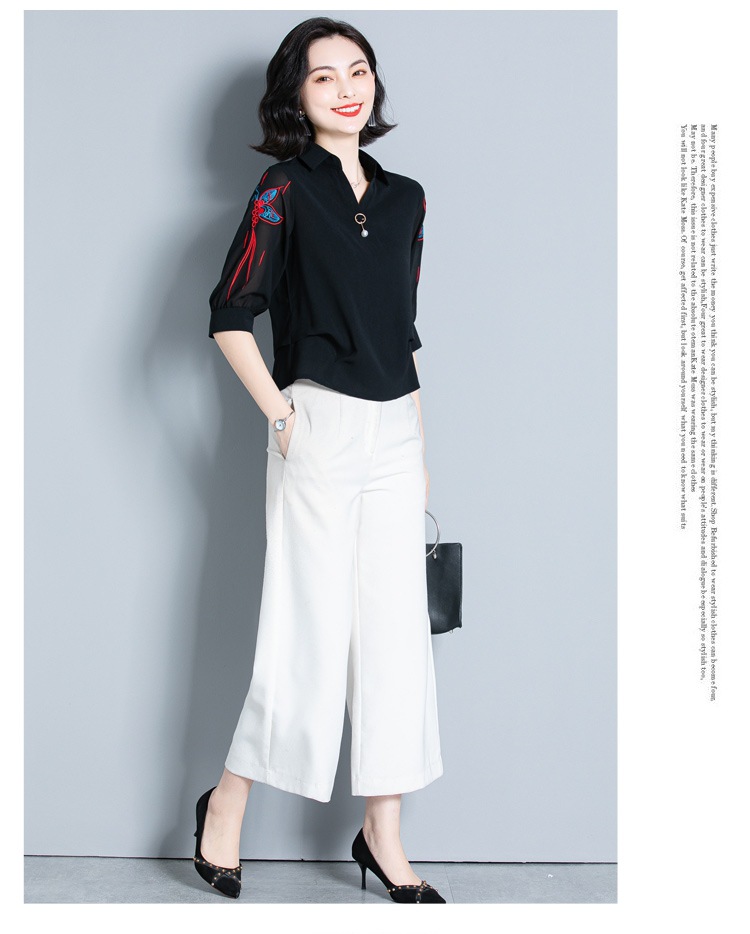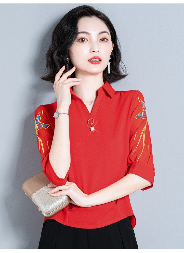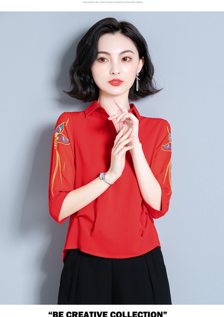 HT8631新款时尚气质宽松绣花七分袖百搭雪纺衫