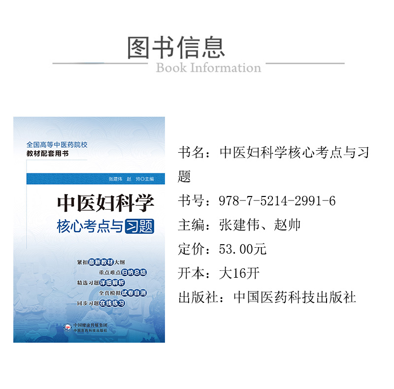《中医妇科学核心考点与习题》以全国高等中医药院校教材和教学大纲《中医妇科学》为基础,将教材中的重点、难点内容进行精简提炼,帮助学生系统掌握课程的重点内容。其中,重点、难点及习题的覆盖范围与教学大纲及教材内容一致。全书编写顺序与教材章节顺序基本一致,方便学生同步学习。 本书的主要特点在于总结教材中需重点掌握的知识点和难点,并附大量习题,使学生在短时间内既能对已学知识进行复习回顾,又能熟悉题目、掌握考点,同时还可以对自己学习中的薄弱环节进行强化记忆和练习。书中覆盖了教材的全部重要知识点,题型多样,题量丰富,对需要掌握、熟悉的内容予以强化。重点、难点部分力求全面而精炼,并有所侧重;答案分析部分力求简单明了地概括知识点的学习方法和相关解题技巧,帮助学生在复习、练习的过程中及时发现自身知识的不足之处,并厘清学习和解题的思路,提示学生针对易错点进行分析、辨别,尽可能减少在考试中的失分,从而提高对知识的应用能力,增强应试能力。书后附有3 套模拟试卷及详细的答案解析,均依据新版教材要求,将重点、难点结合经典题型编写而成,可用于备考前查缺补漏。 本书适合中医学专业或相关专业学生在校学习、备考使用,也可作为执业医师资格考试的复习用书。