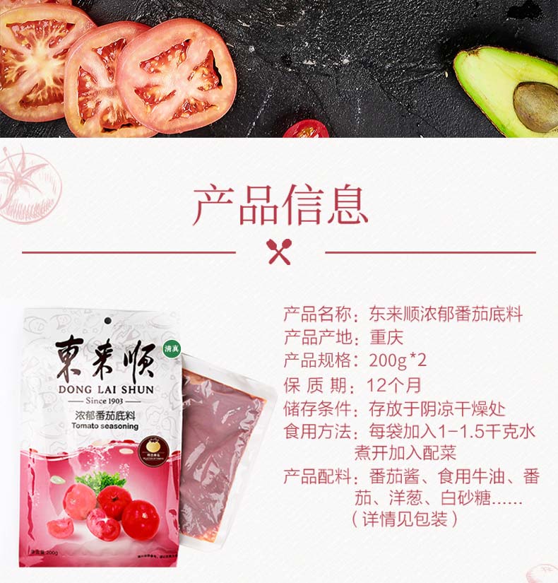 东来顺 浓郁番茄底料 200g*2