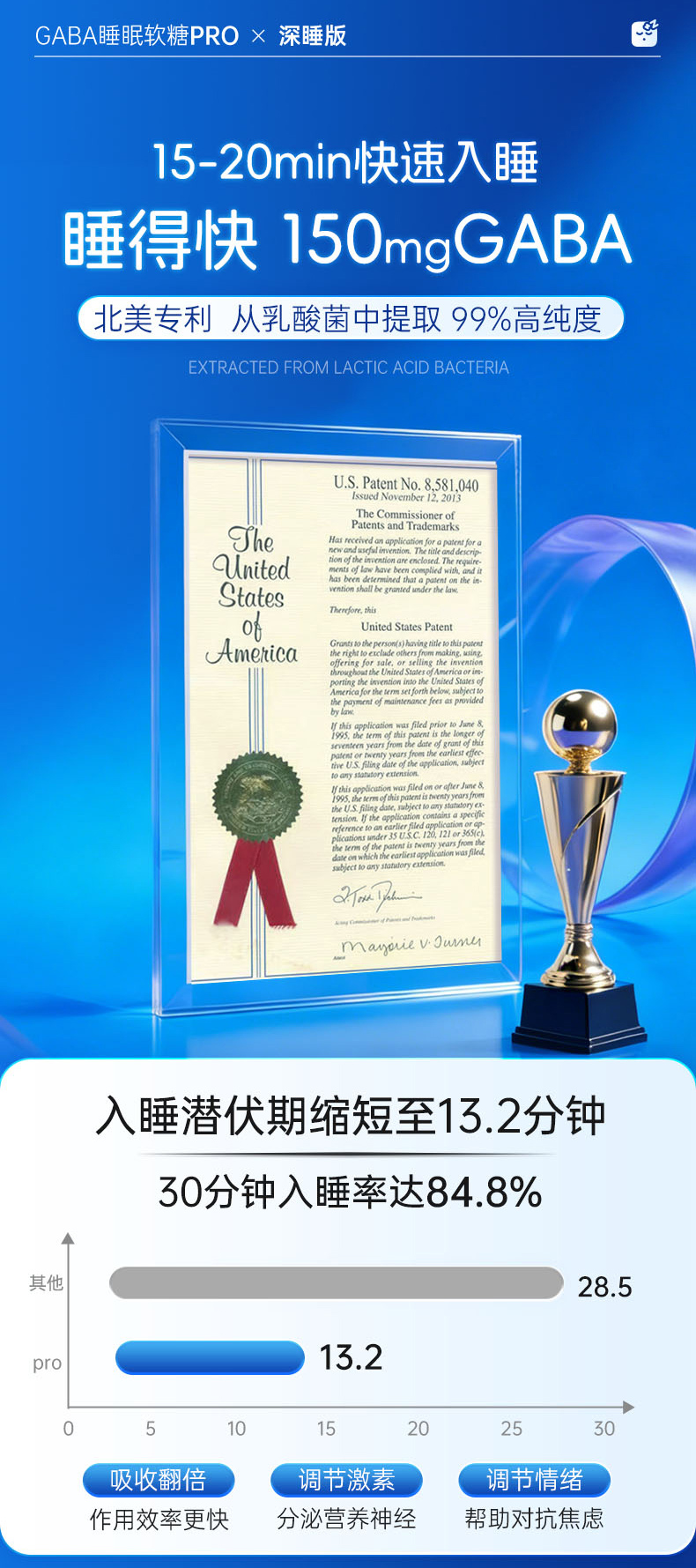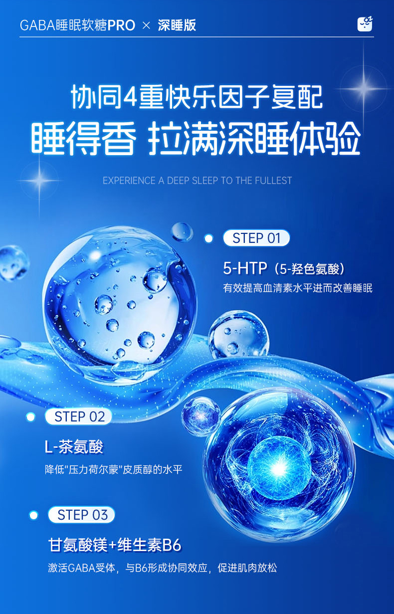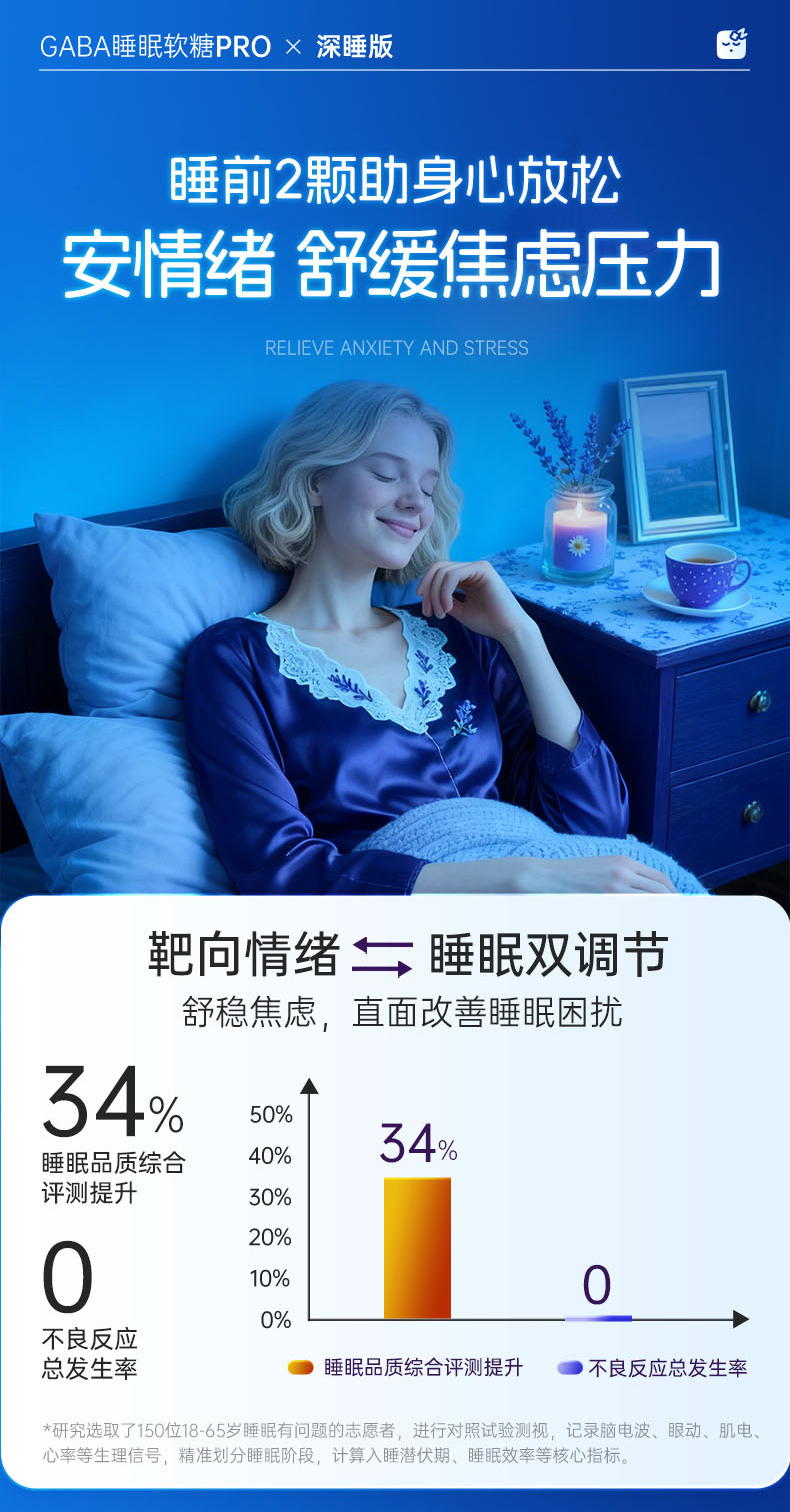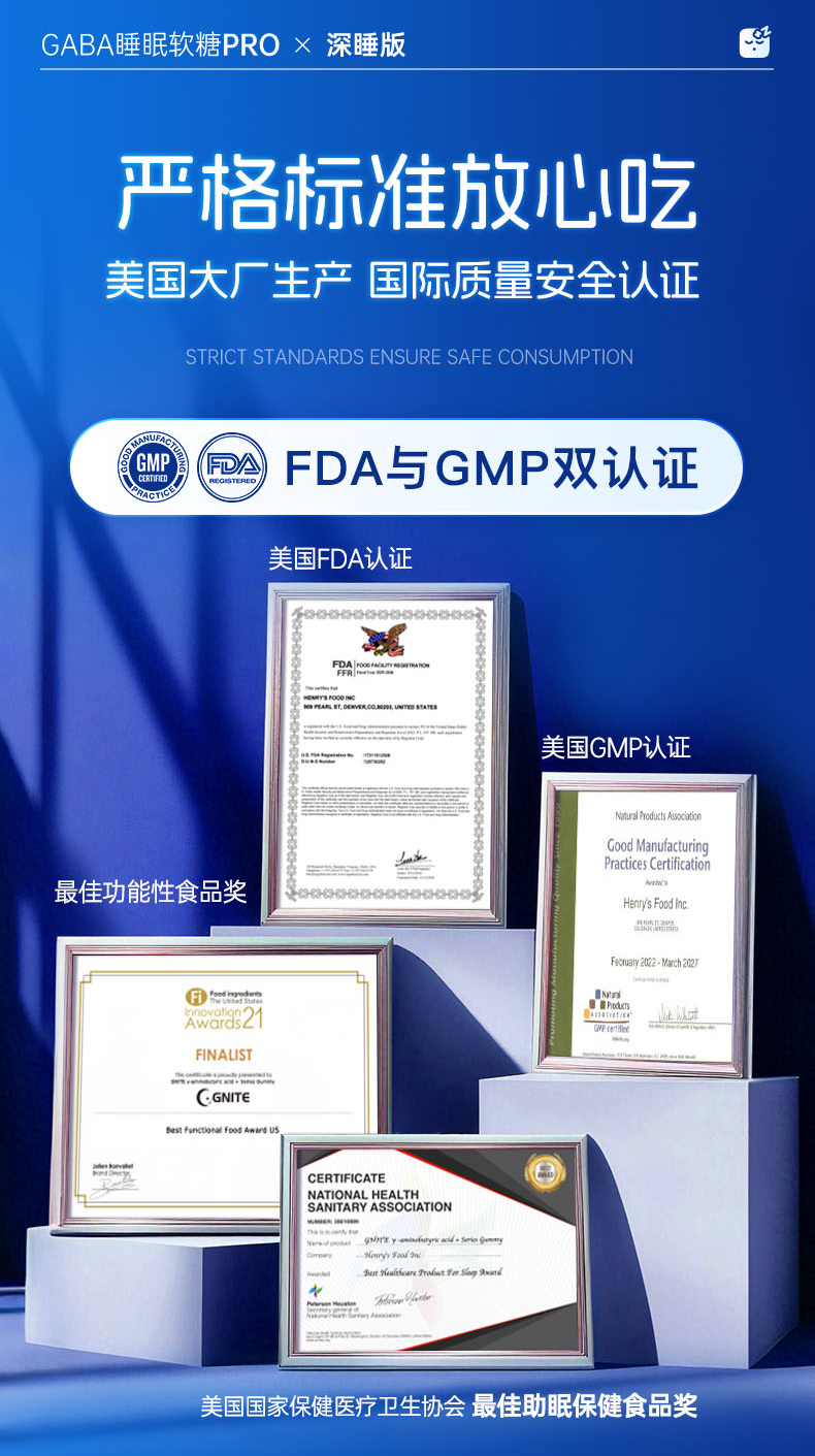 【保税仓】美国GNITE GABA睡眠软糖pro 百香果味 60粒/瓶 深睡版 150mg GABA/粒