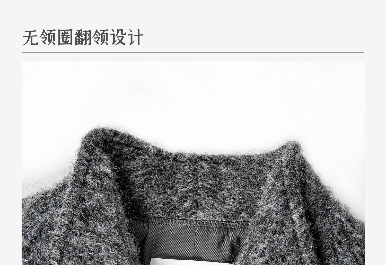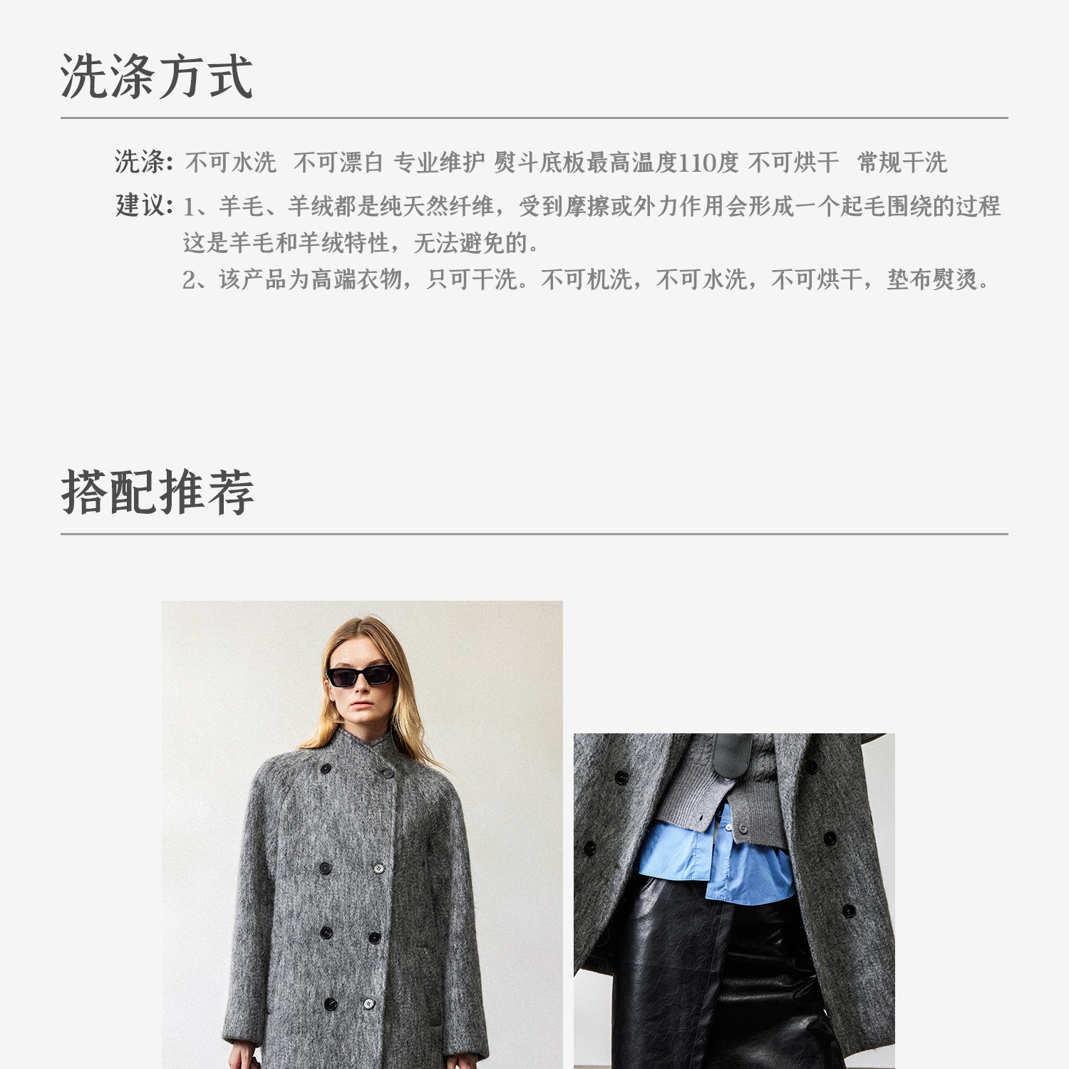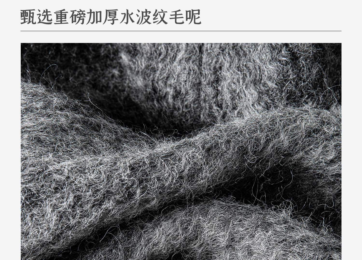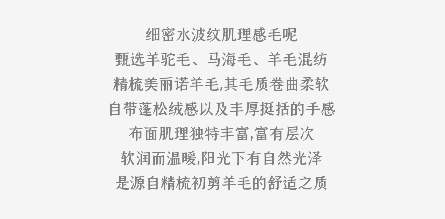 西嘉|精梳美丽诺羊毛 高智感格雷系水波纹灰色中长款毛呢外套女冬