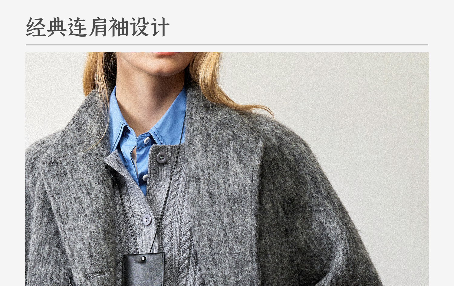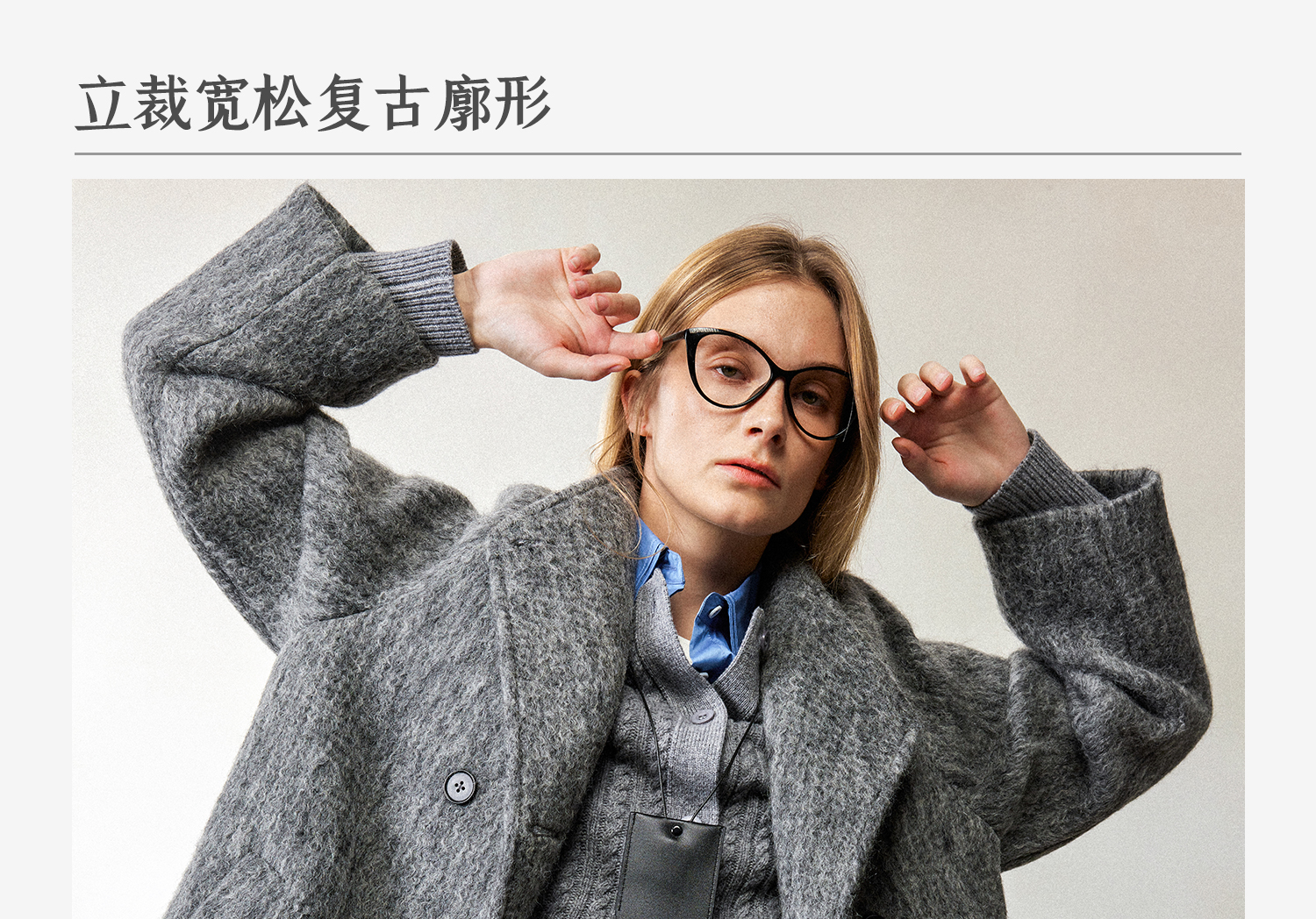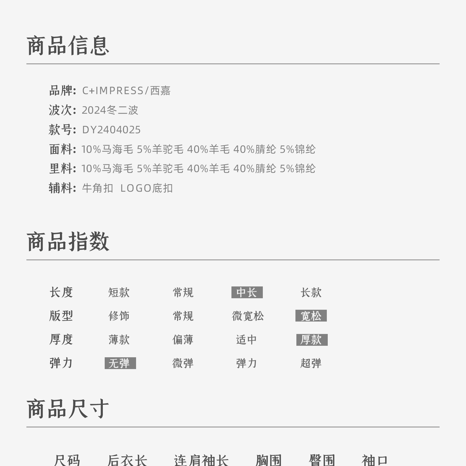 西嘉|精梳美丽诺羊毛 高智感格雷系水波纹灰色中长款毛呢外套女冬