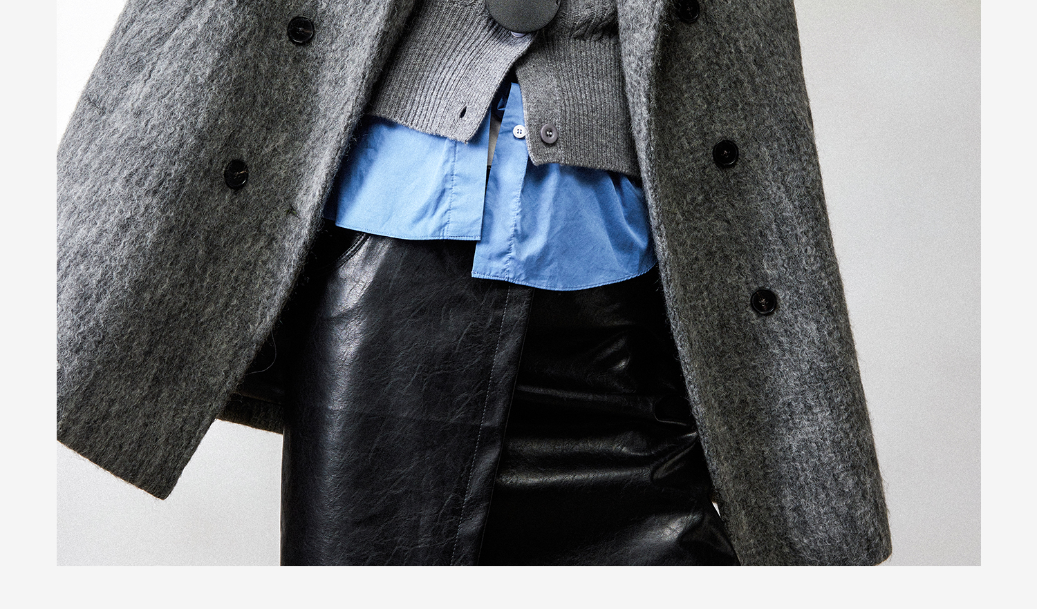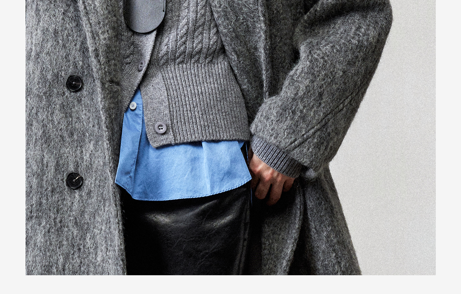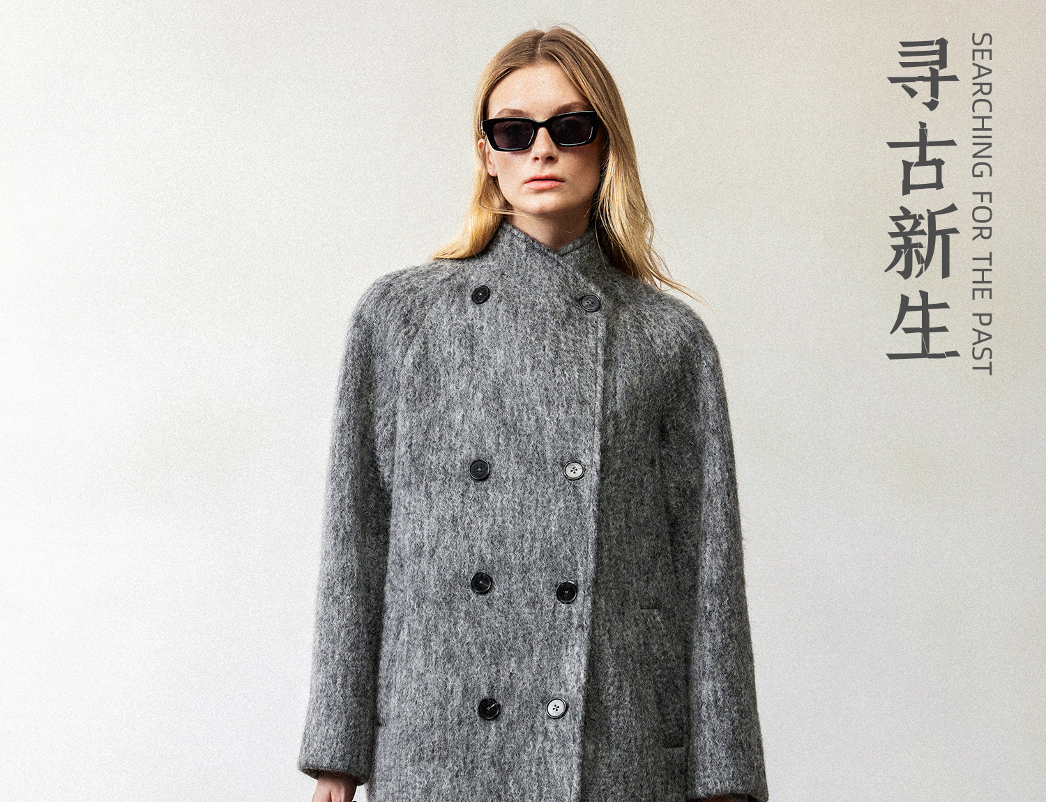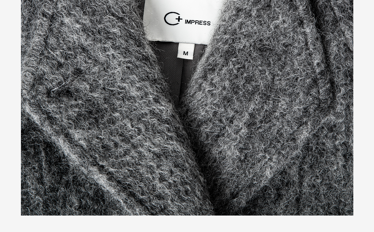 西嘉|精梳美丽诺羊毛 高智感格雷系水波纹灰色中长款毛呢外套女冬