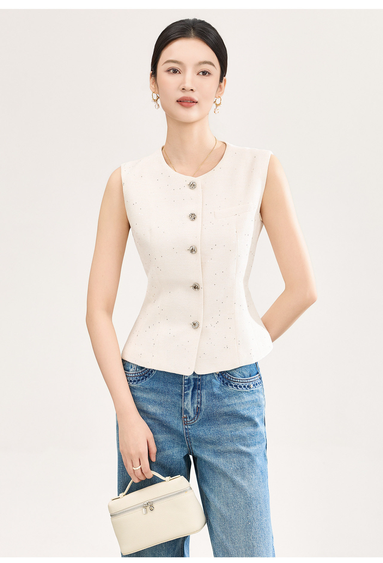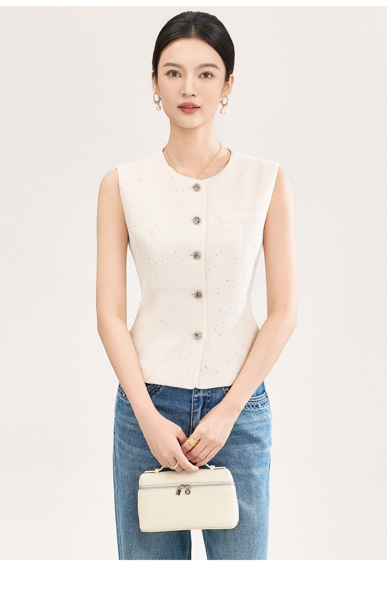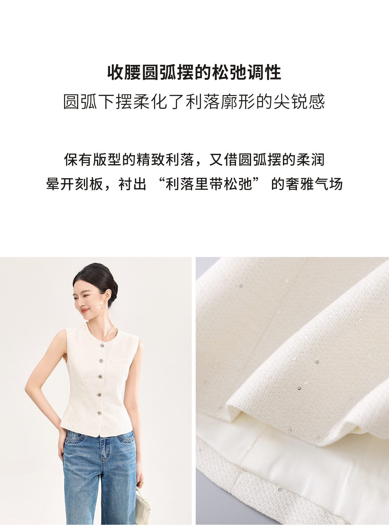 「高货wl」全新升级【铂金会员330/天猫449/差价119】(92237)洛诗琳法式小香风金丝亮片马甲2026春季新款时髦洋气收腰背心女