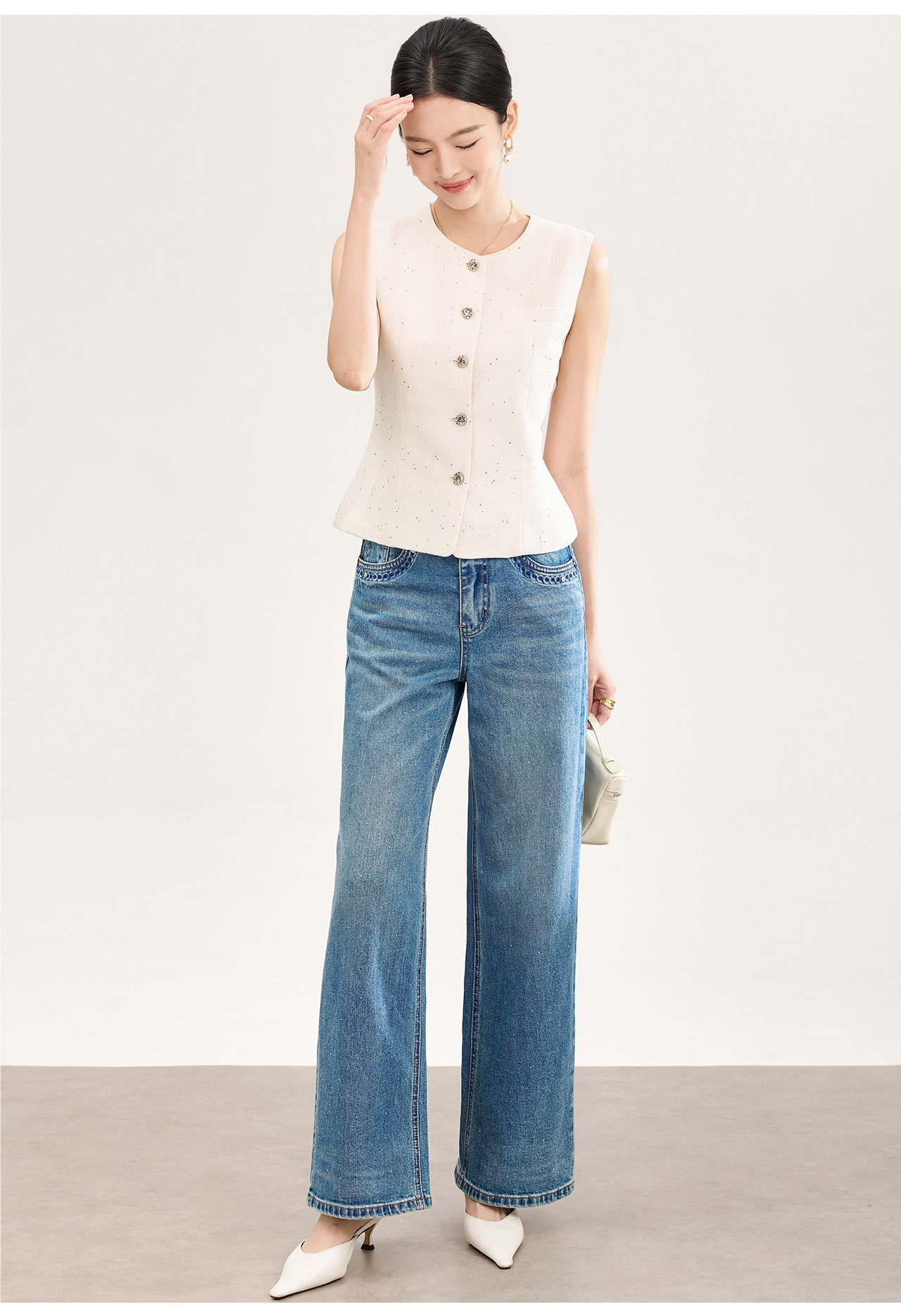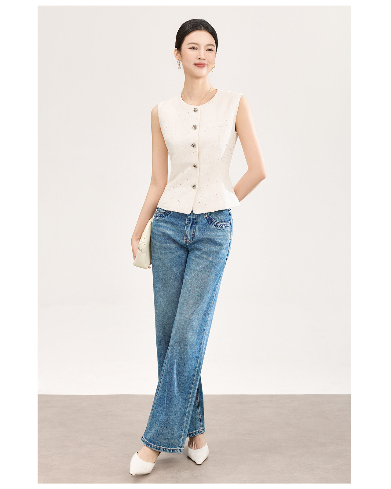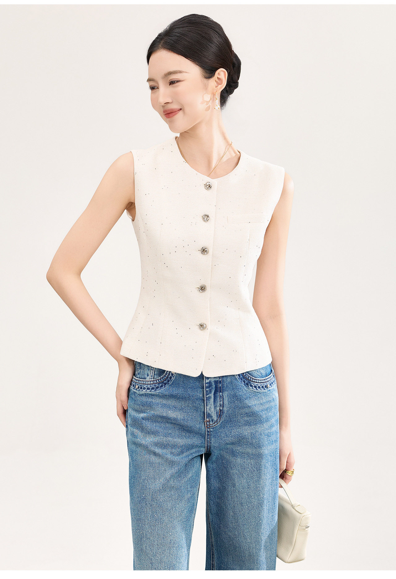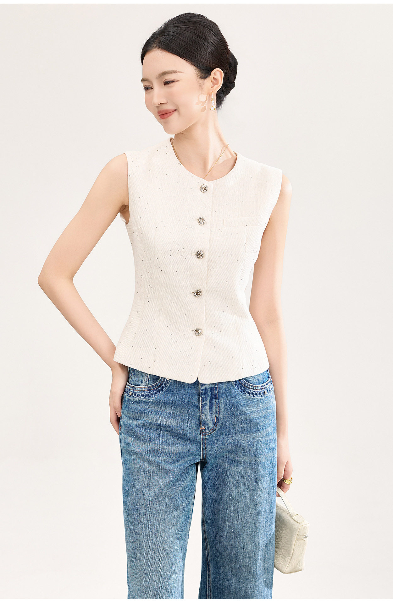 「高货wl」全新升级【铂金会员330/天猫449/差价119】(92237)洛诗琳法式小香风金丝亮片马甲2026春季新款时髦洋气收腰背心女