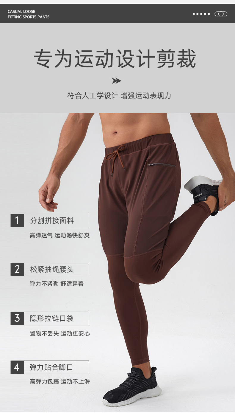 跃牌【欲动春风】男装系列 男士锦纶健身跑步长裤拉链口袋紧身运动长裤31343