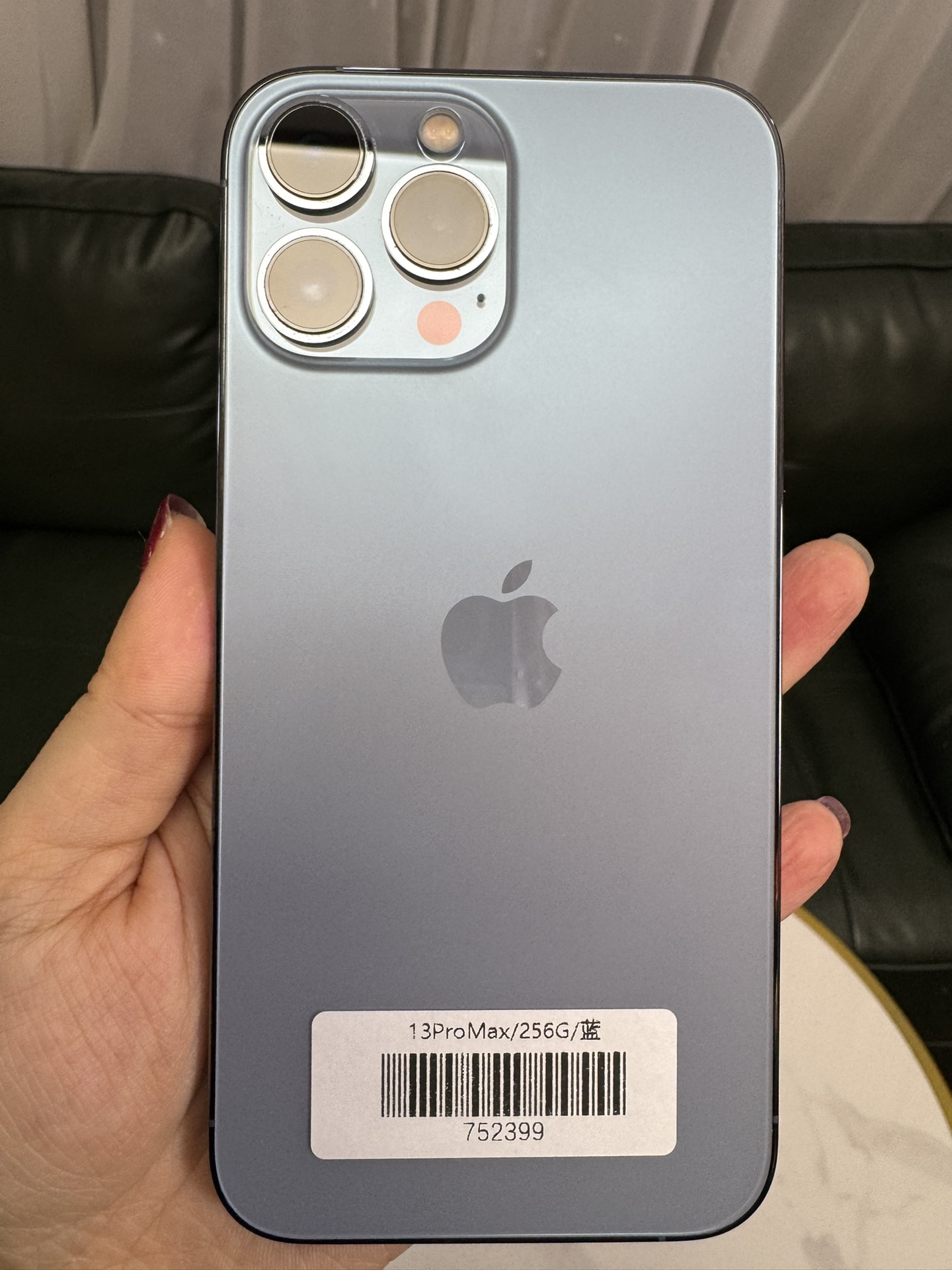 编号752399-苹果国行iPhone13ProMax/256G/蓝色,5G双卡双待手机,9.9新成色好,原机电池81%,特价3999元!质检工程师已深度检测通过,店保180天,请放心购买!