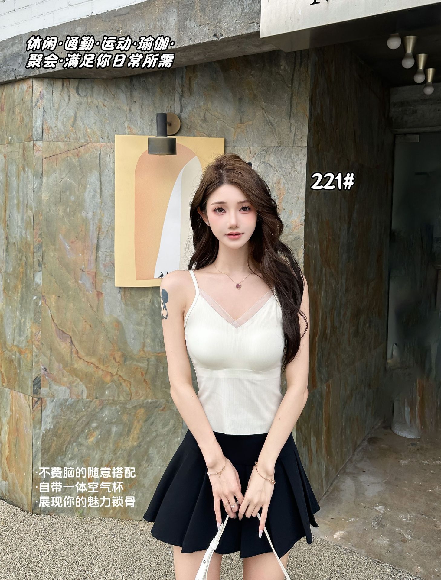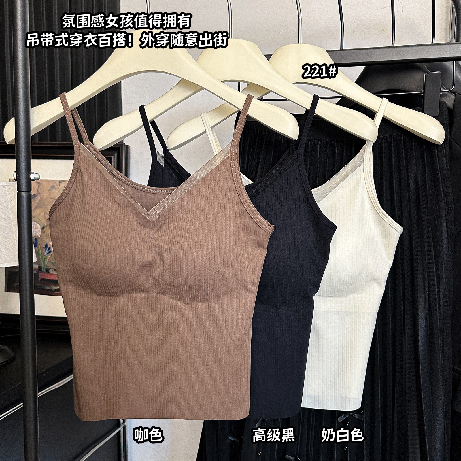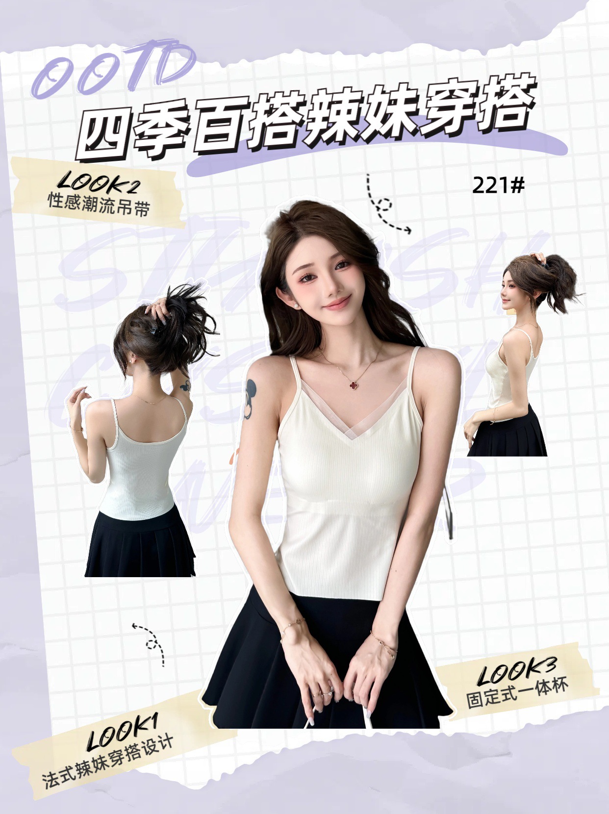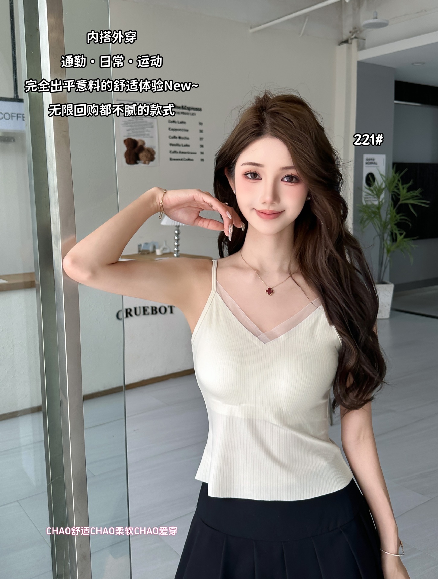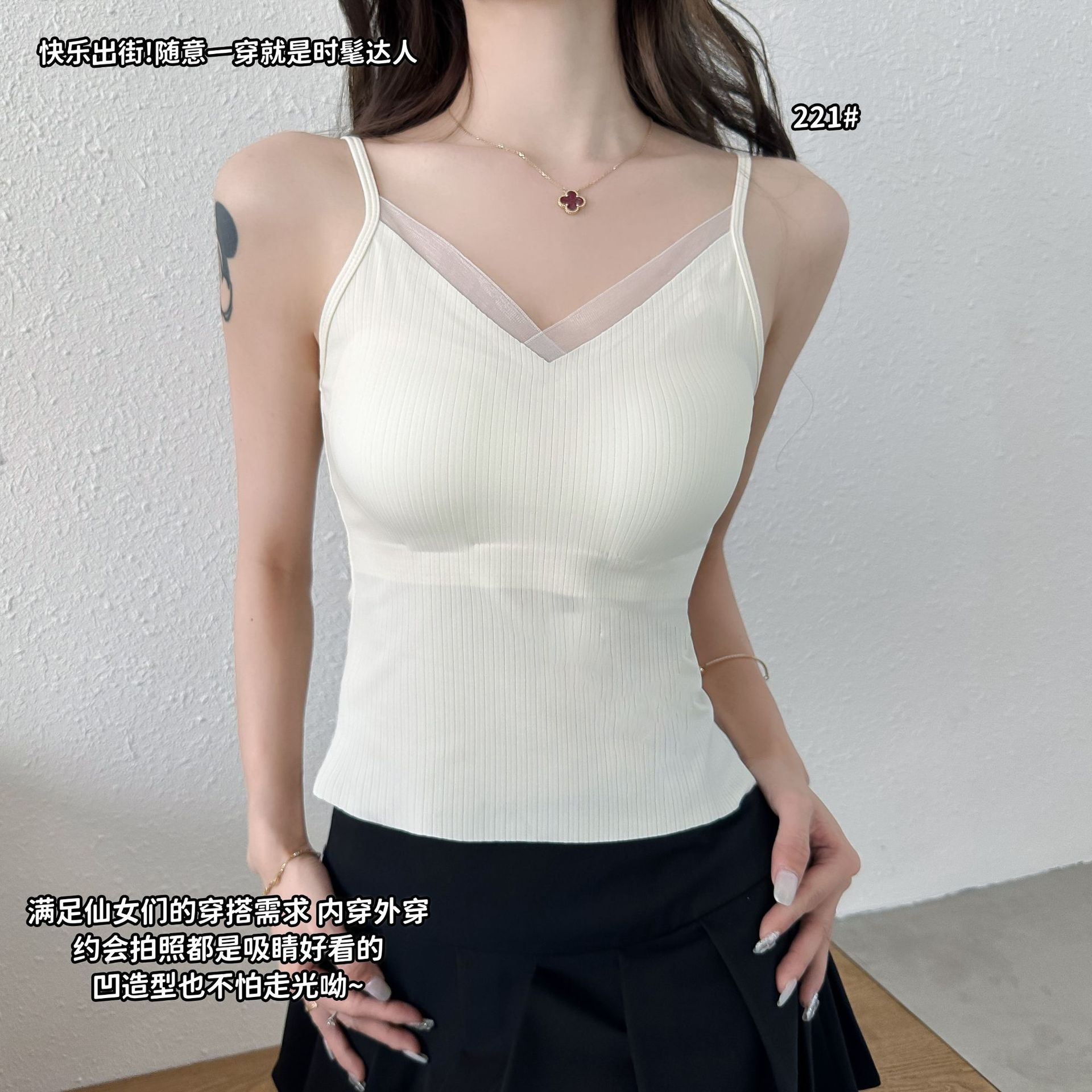 雀说时尚新款蕾丝拼接V领辣妹穿搭性感吊带背心带胸垫内搭外穿上衣女AL
