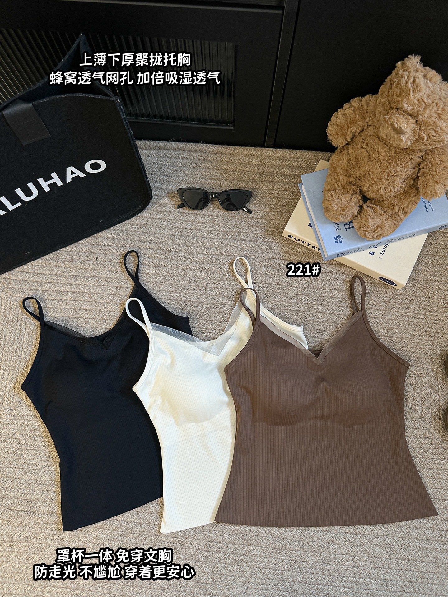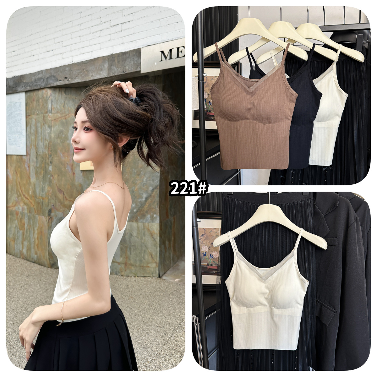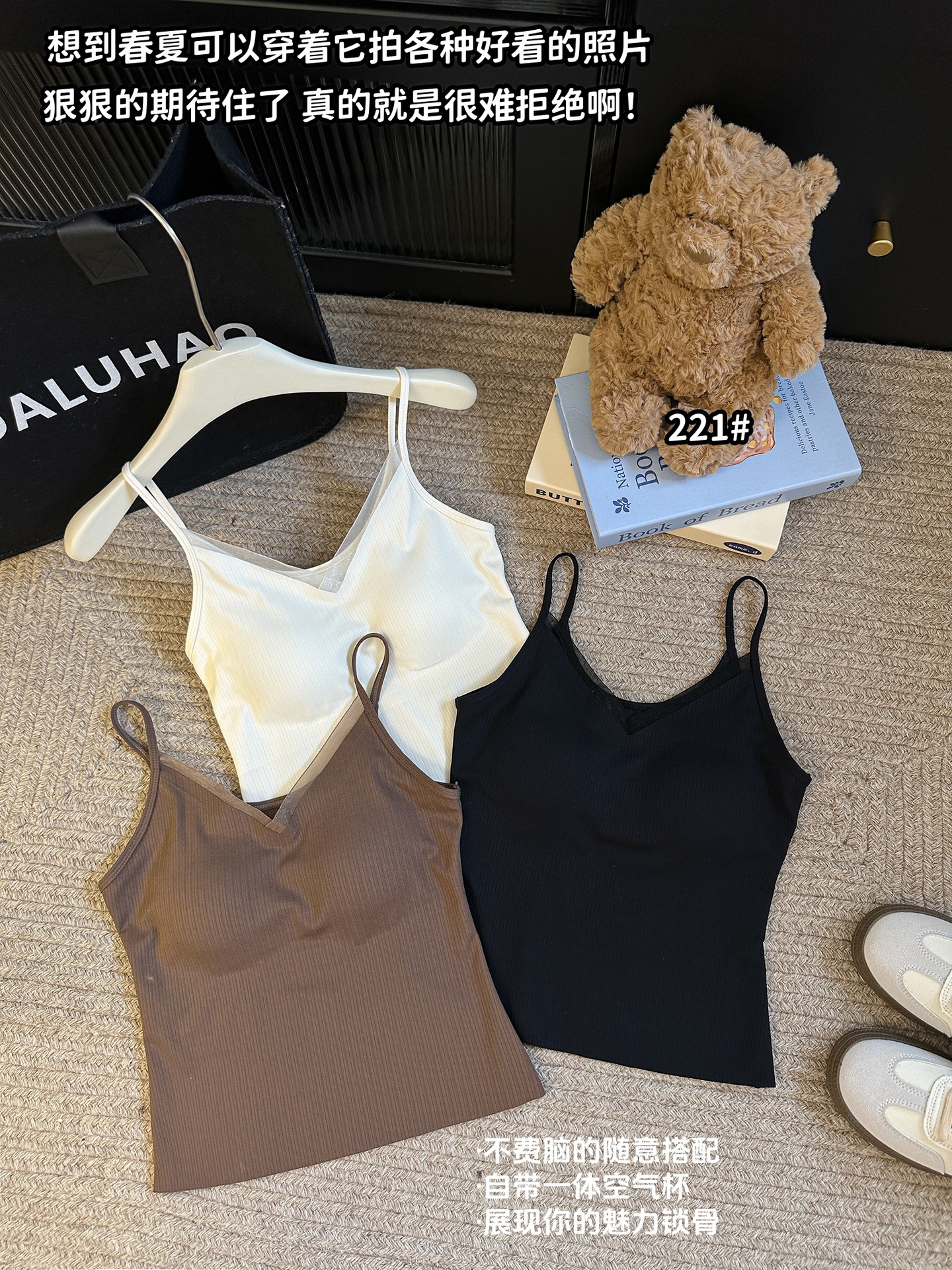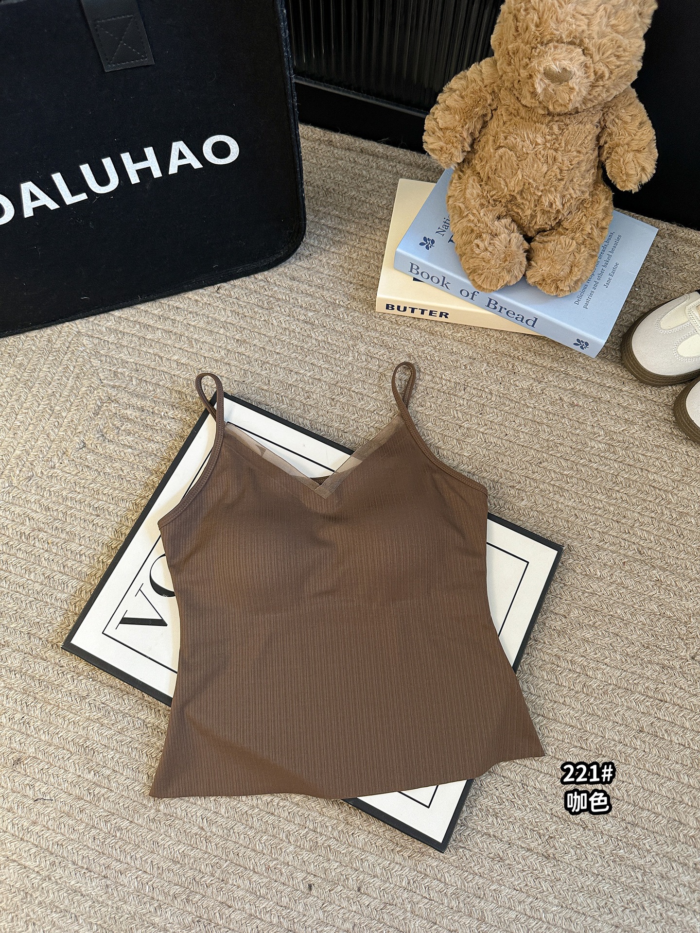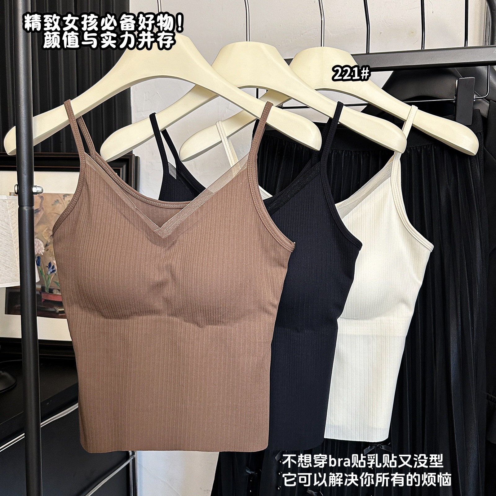 雀说时尚新款蕾丝拼接V领辣妹穿搭性感吊带背心带胸垫内搭外穿上衣女AL