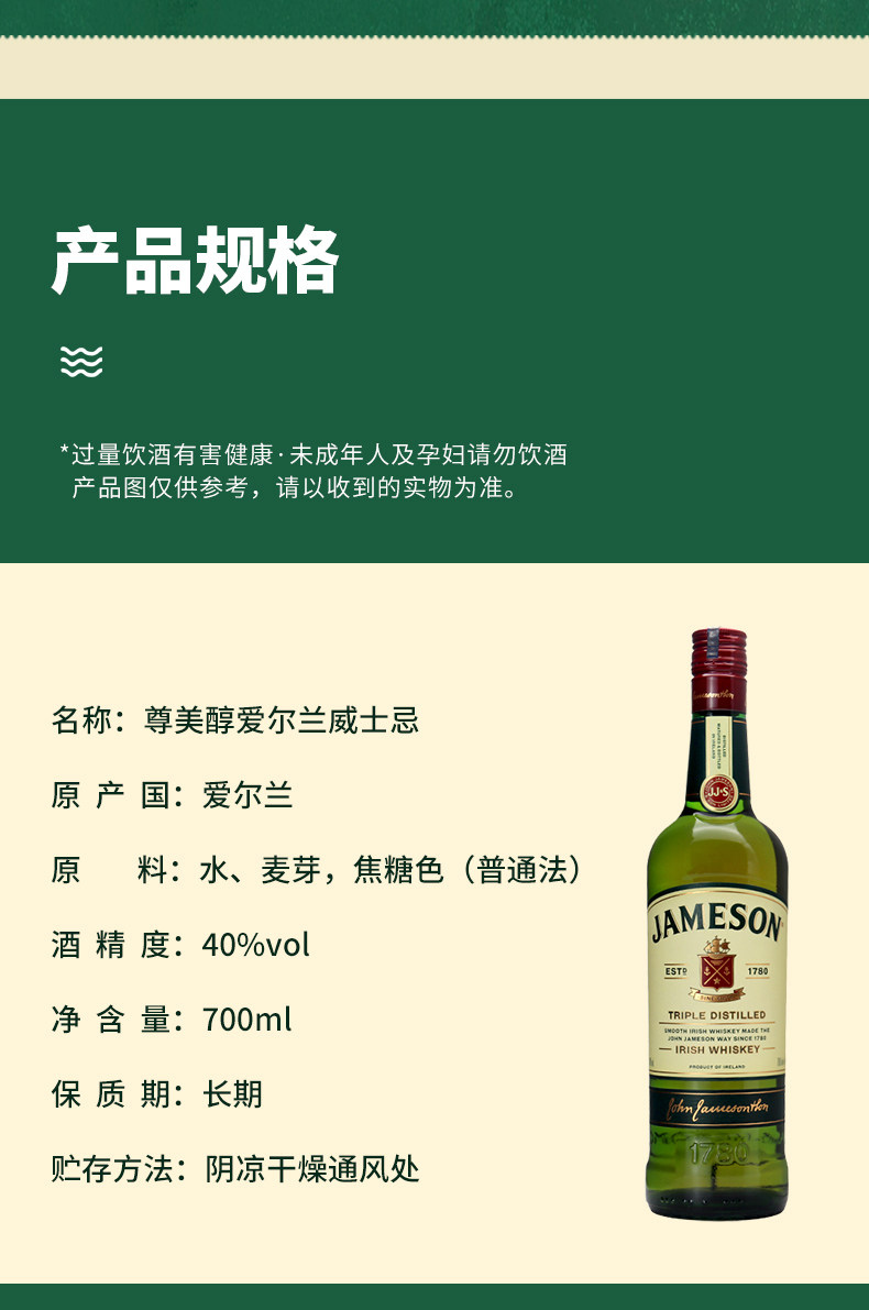 [洋酒]尊美醇爱尔兰威士忌700ml