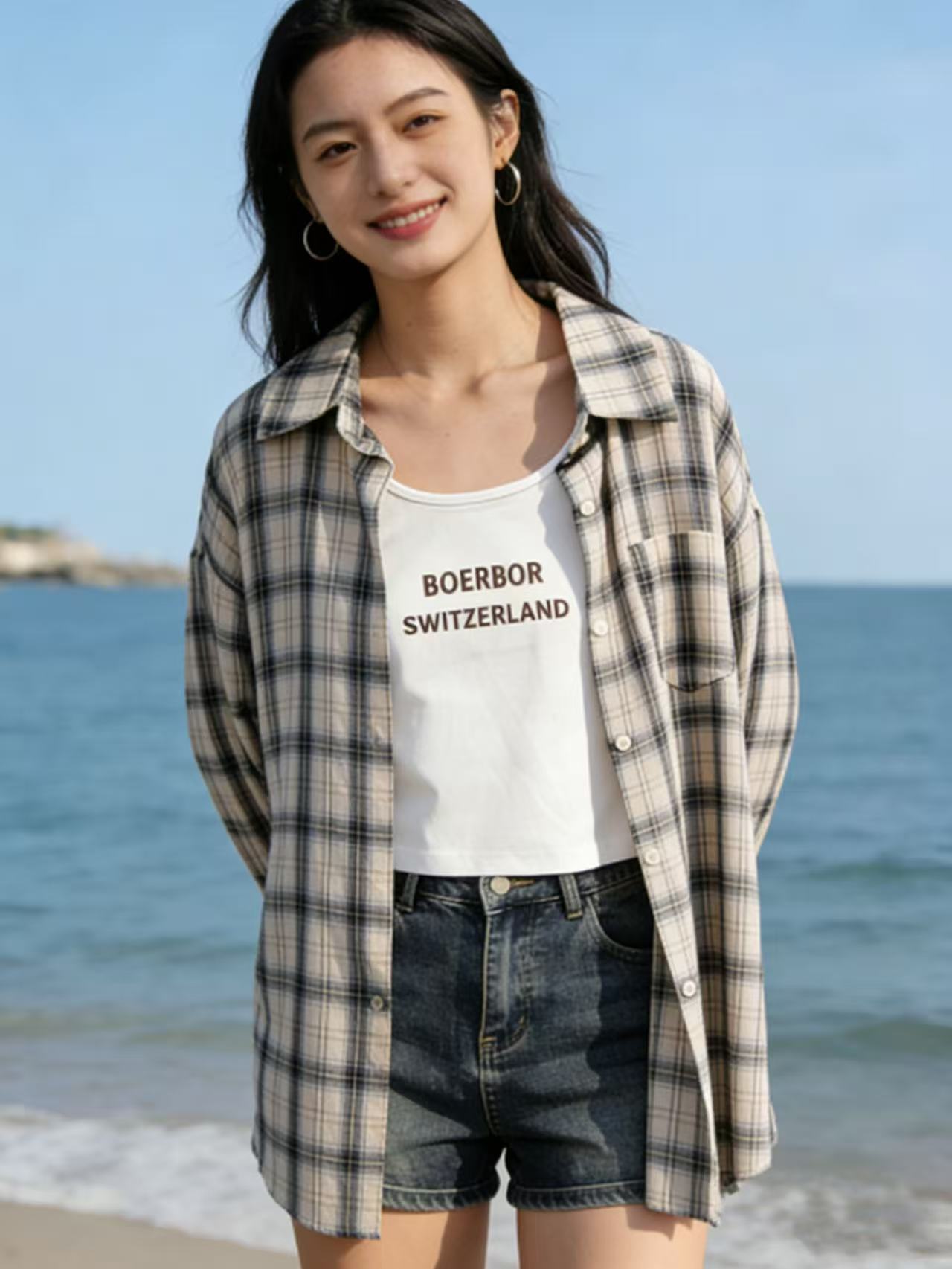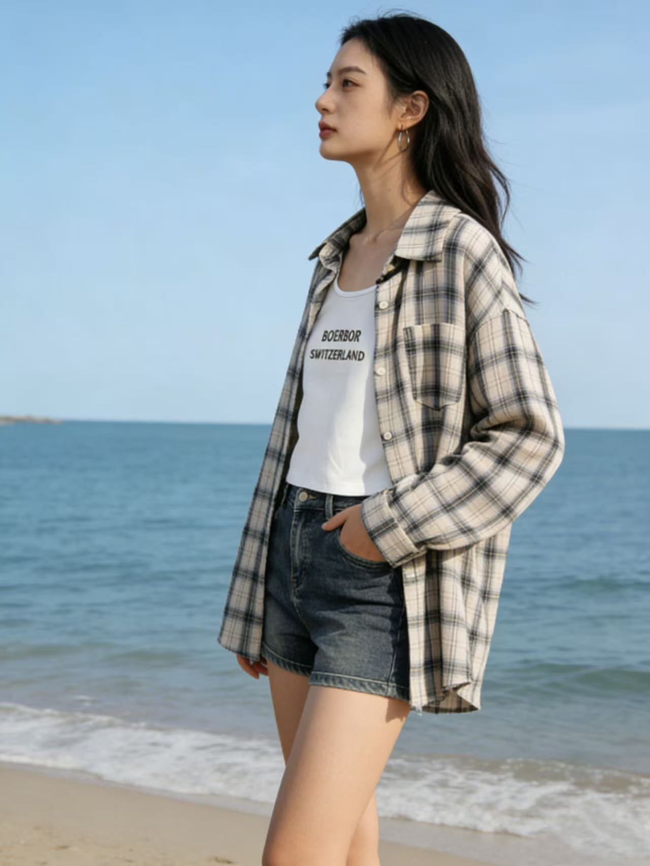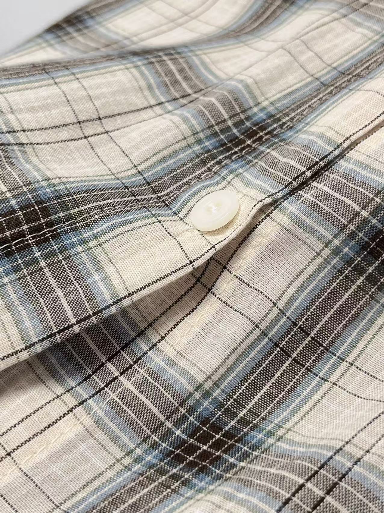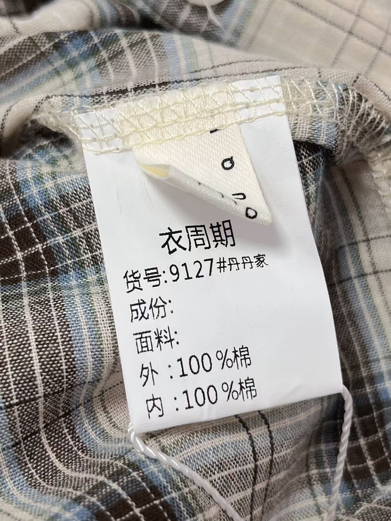 418良粉节|2026 活动爆款 品牌促【自营】衣周期 (两件套)9127春夏薄款~100%棉浅蓝灰格子衬衫➕背心套装上衣-喜出