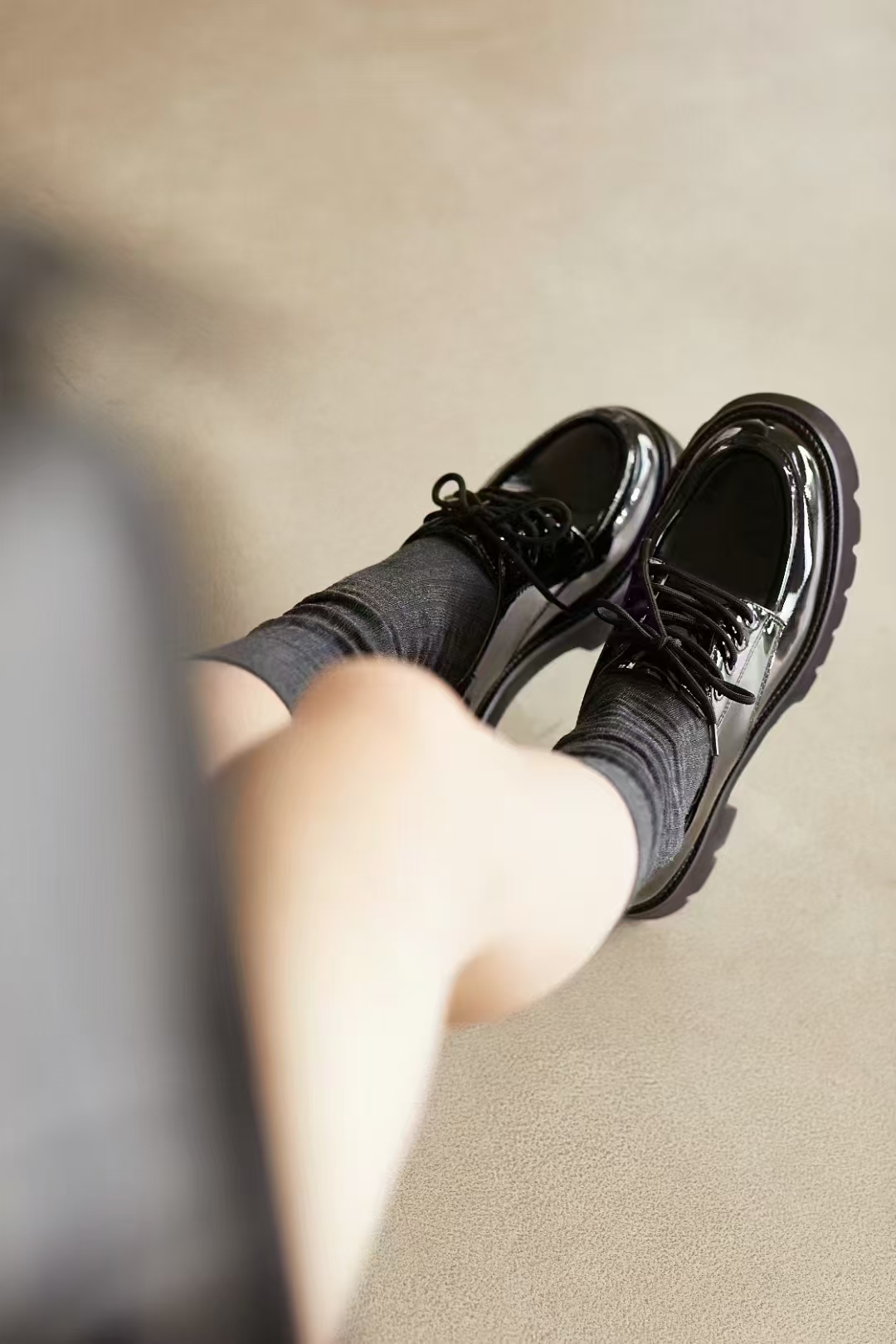 MUX2024秋季英伦风复古圆头系带乐福鞋