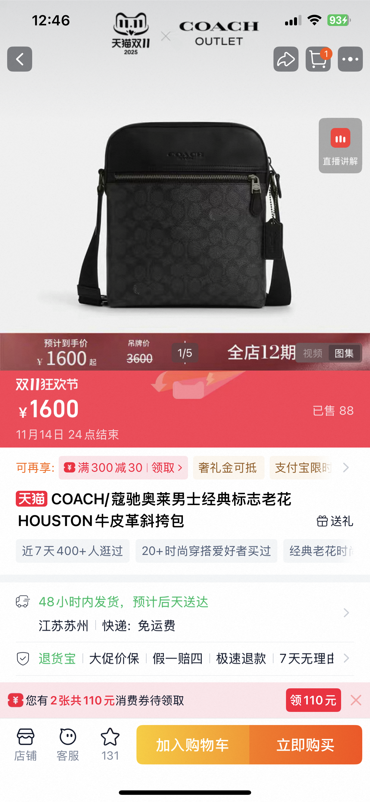 代购品相一比一复刻高版本‼️ 蔻家Houston飞行员斜挎包