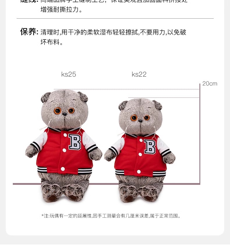 BUDIBASA巴迪宝思 宝喜可猫+红色夹克, 25cm (毛绒玩具)