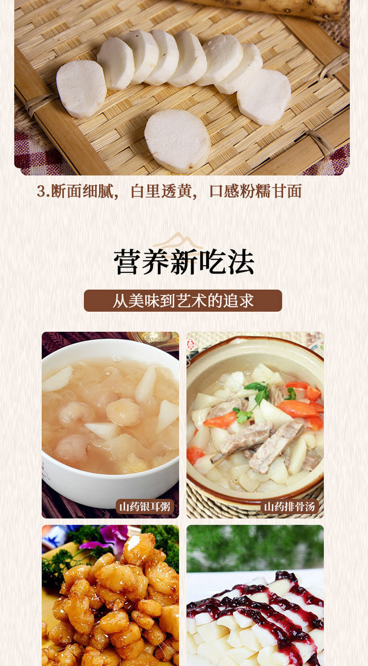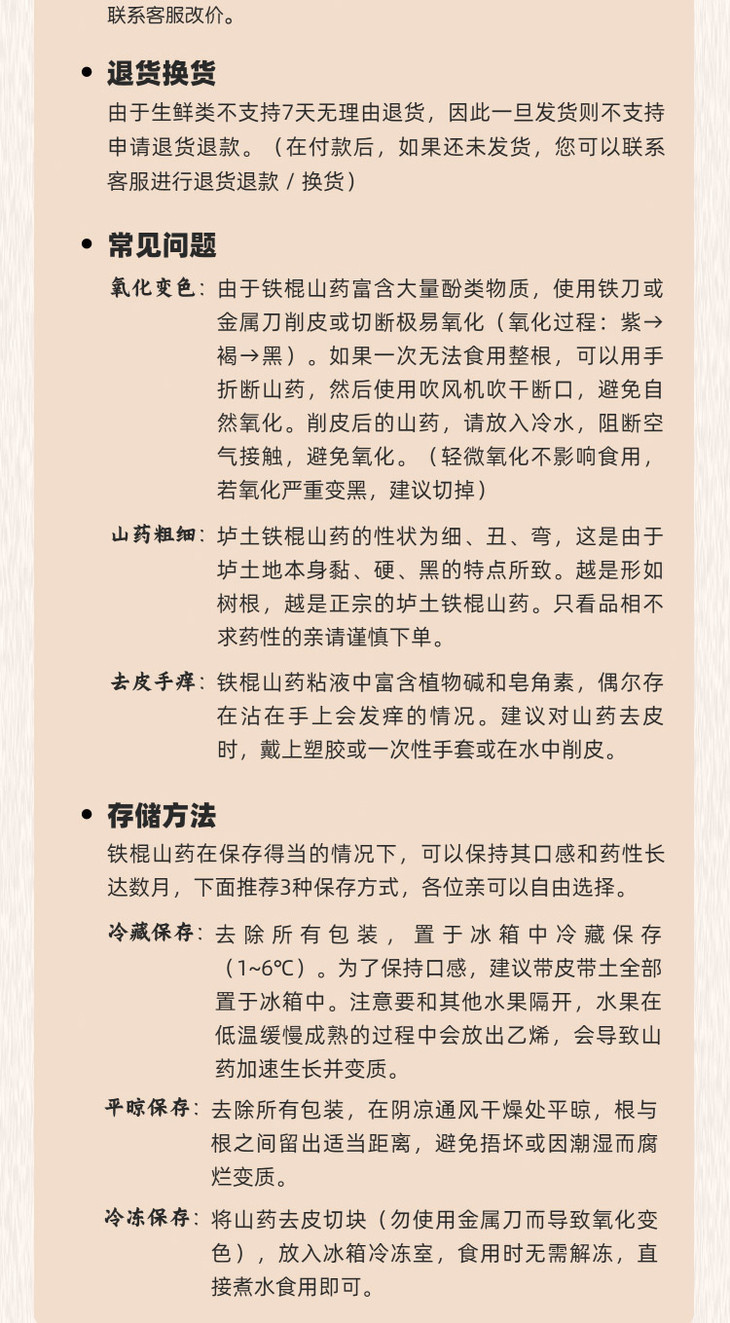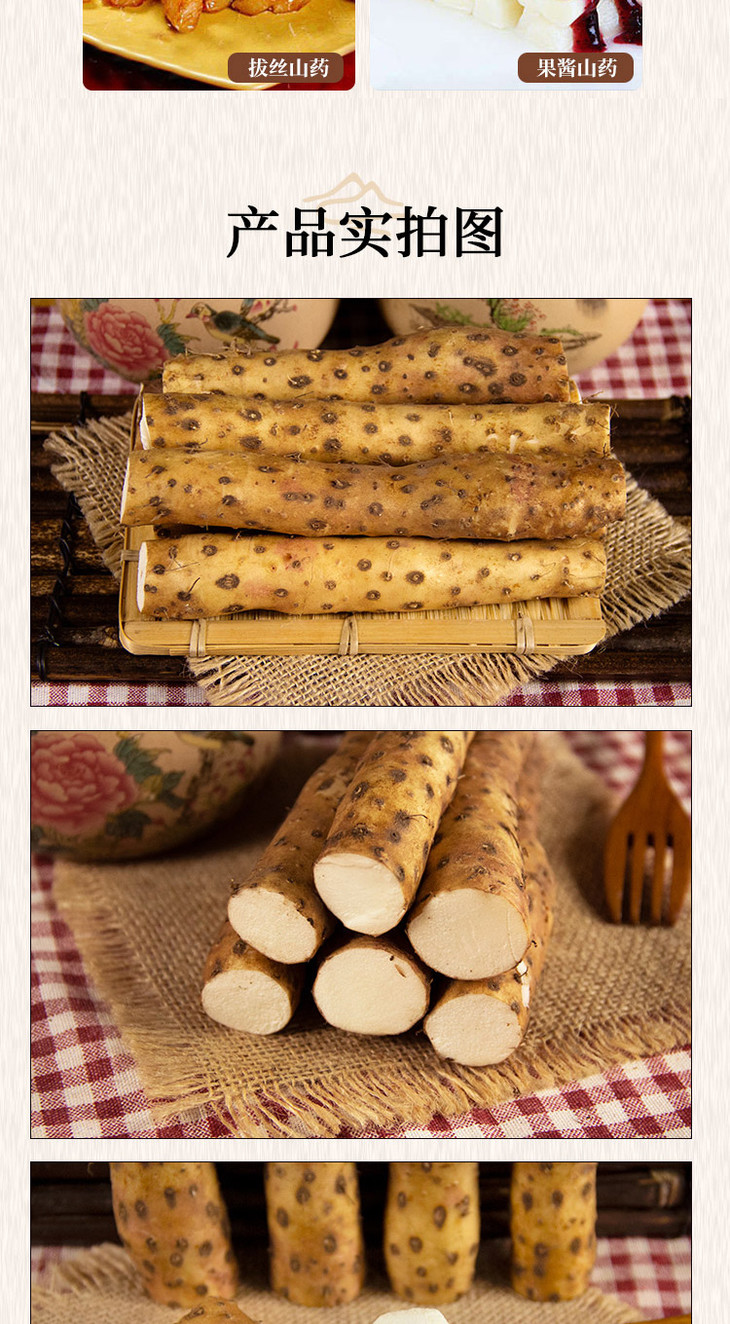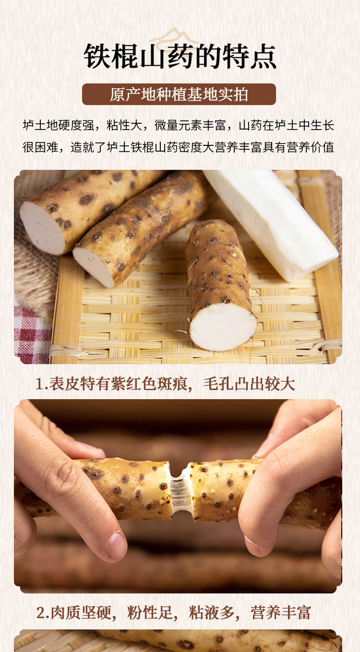 3、个别山药因为自然生长采摘,所以表皮可能会有斑点,不影响食用,介意勿拍。