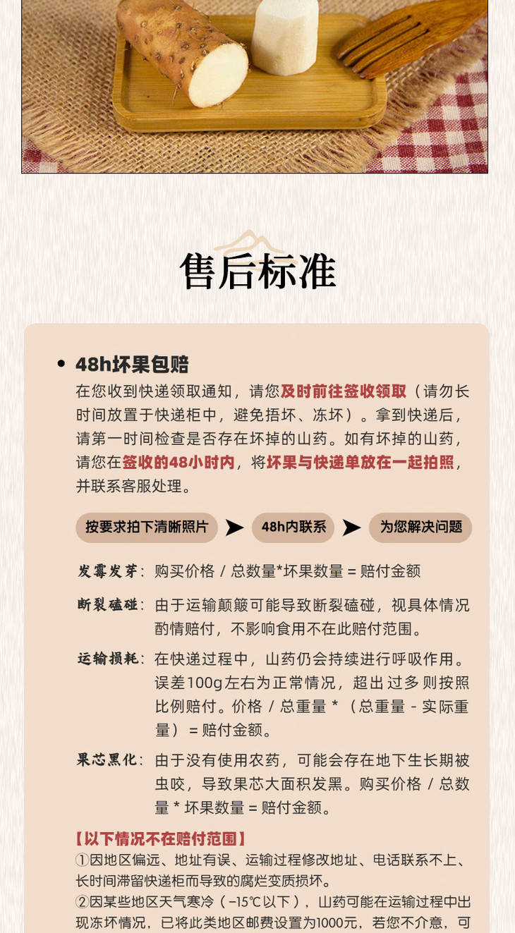 4、按比例售后:售后金额=(购买金额/山药数量)*坏果数量。