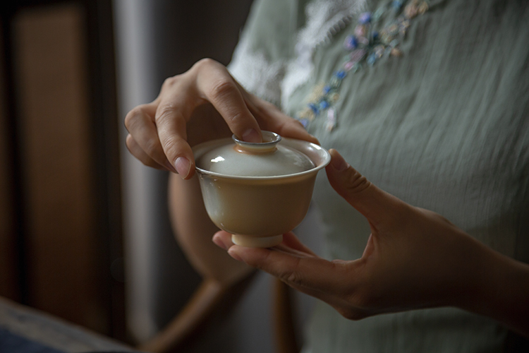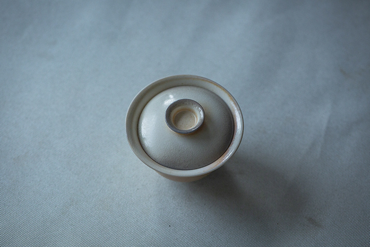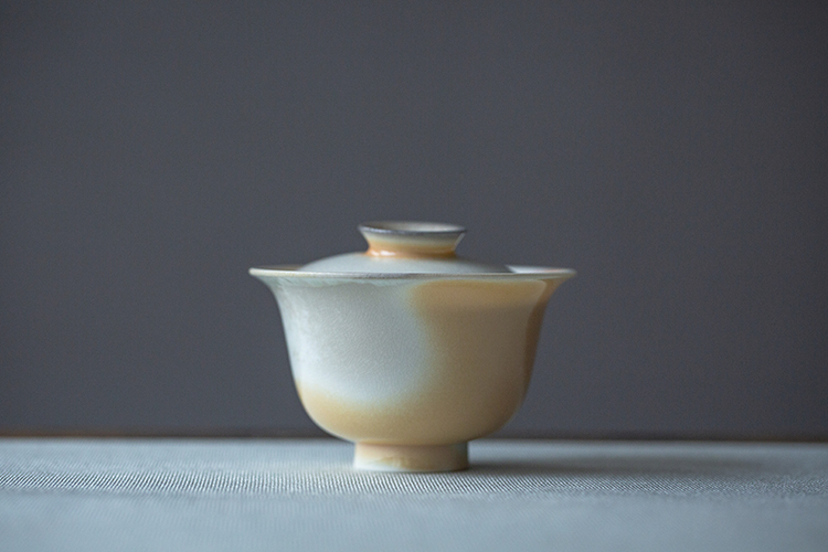 这款盖碗由胎土、窑火、落灰三者相互交融而成,