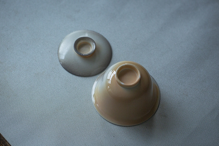 此盖碗浅橘黄色与浅灰白融汇交织,随机又自然。