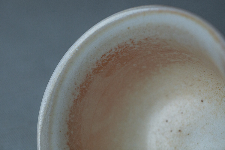 这款盖碗即为古法柴烧制作,裸烧出窑后,