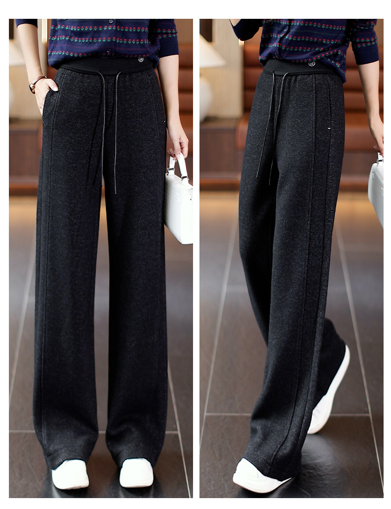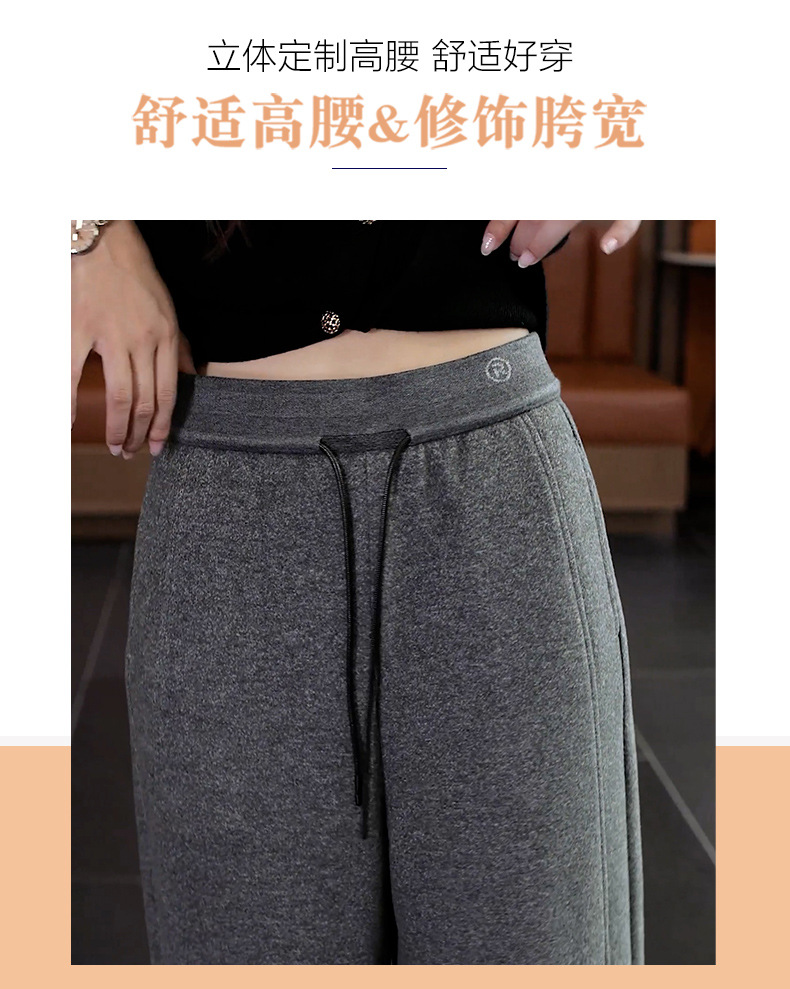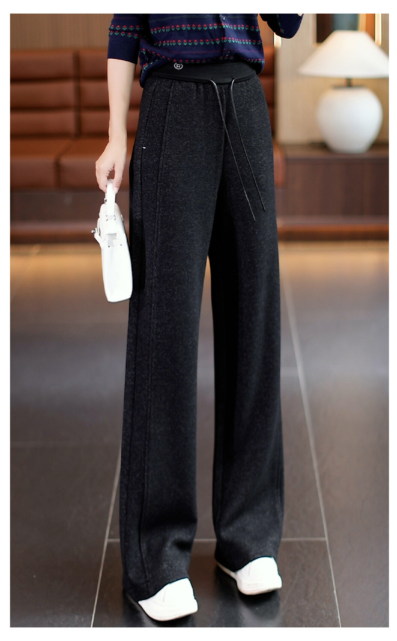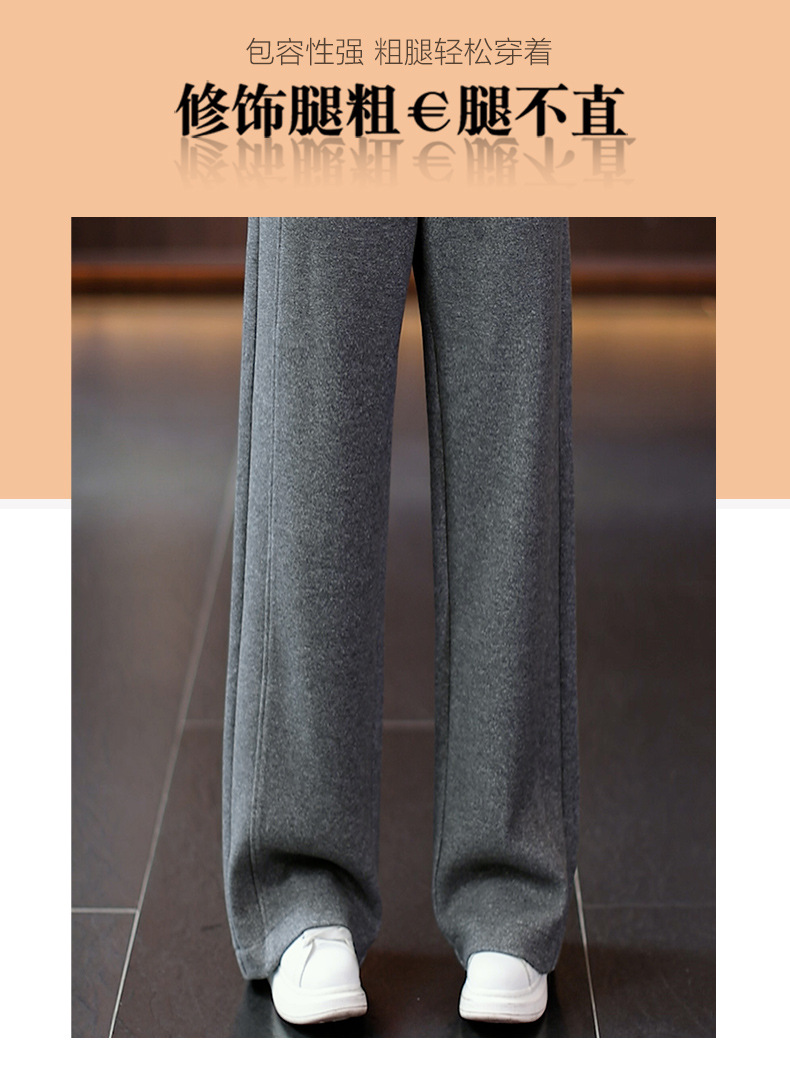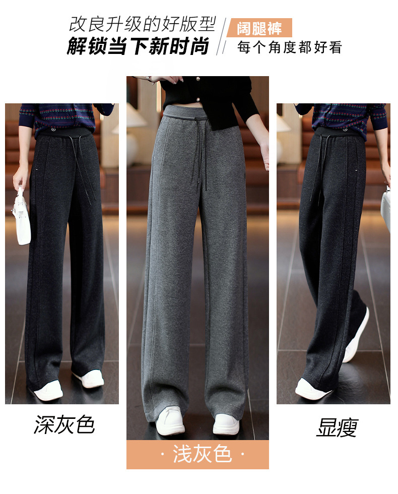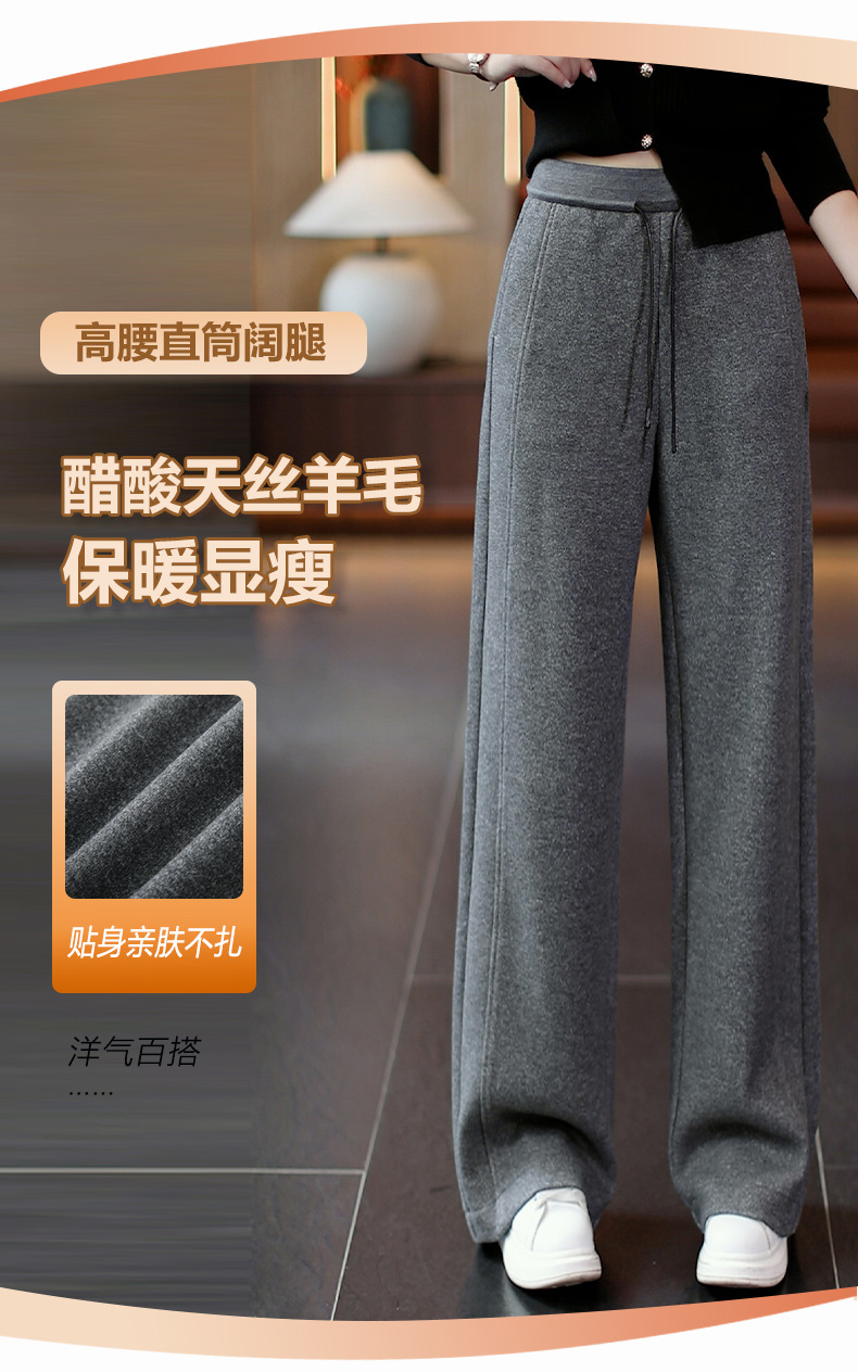 YM 2805羊毛阔腿裤高腰保暖舒适垂感休闲裤松紧腰直筒裤 商品图4
