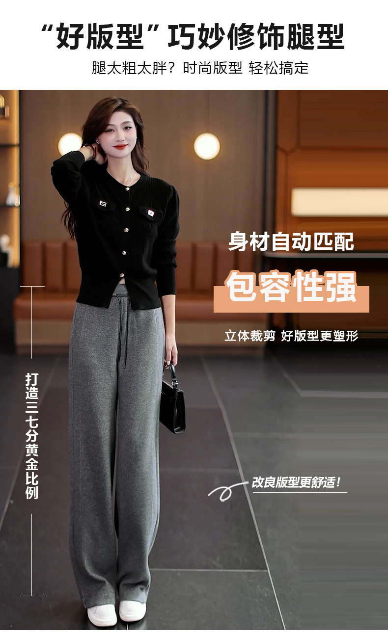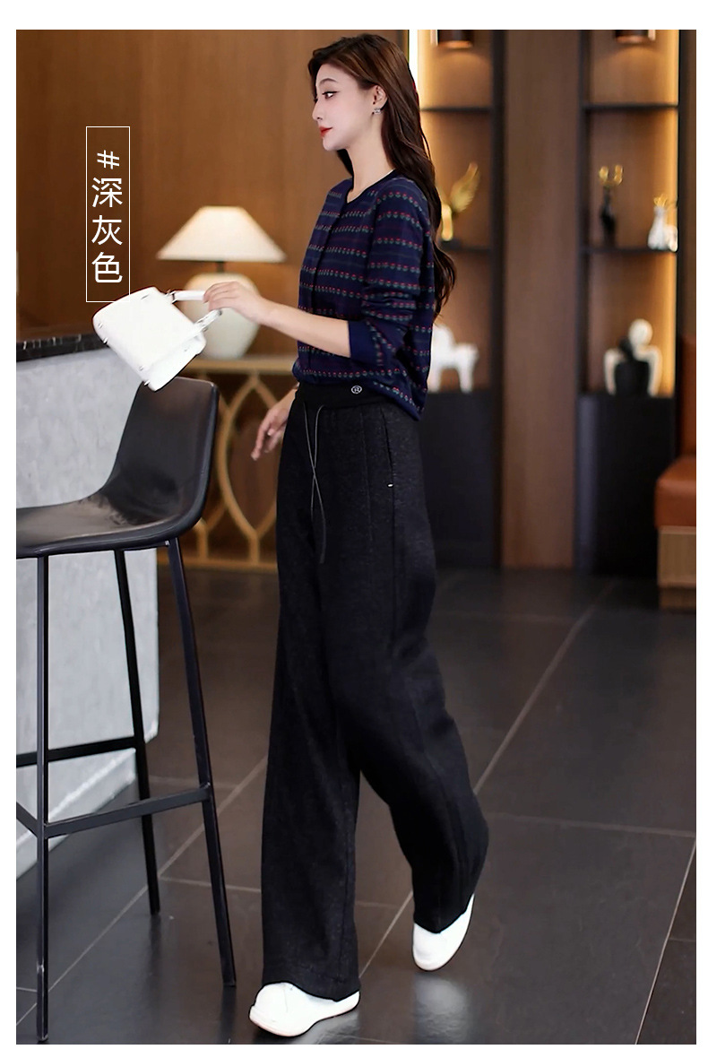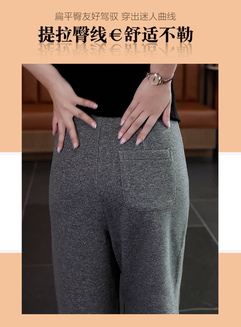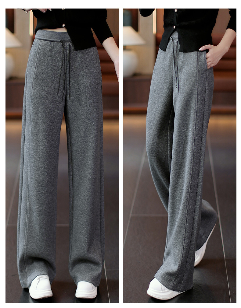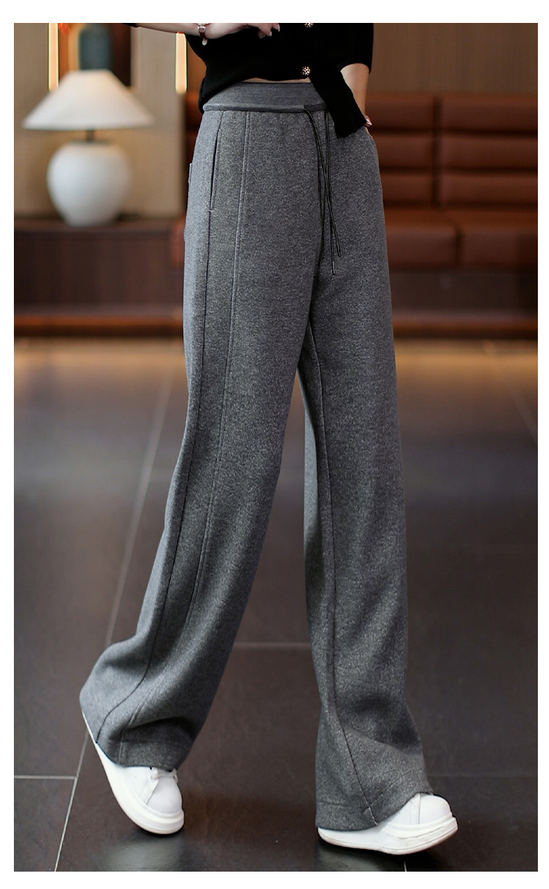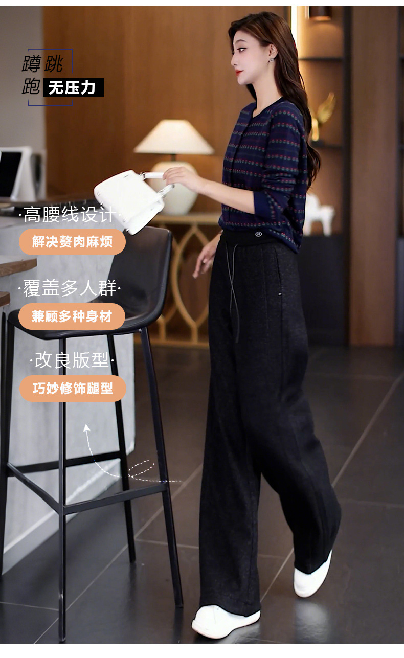 YM 2805羊毛阔腿裤高腰保暖舒适垂感休闲裤松紧腰直筒裤 商品图4