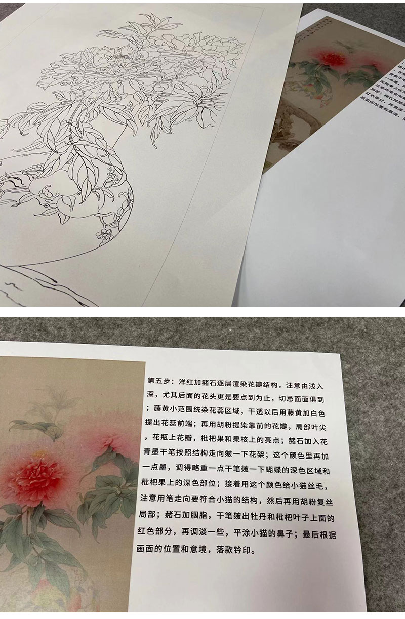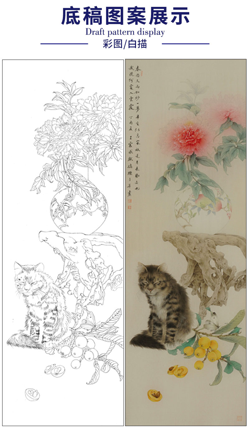 【有步骤】王震工笔画白描底稿博古画《春困久》花瓶初学者临摹花鸟线稿WZ13