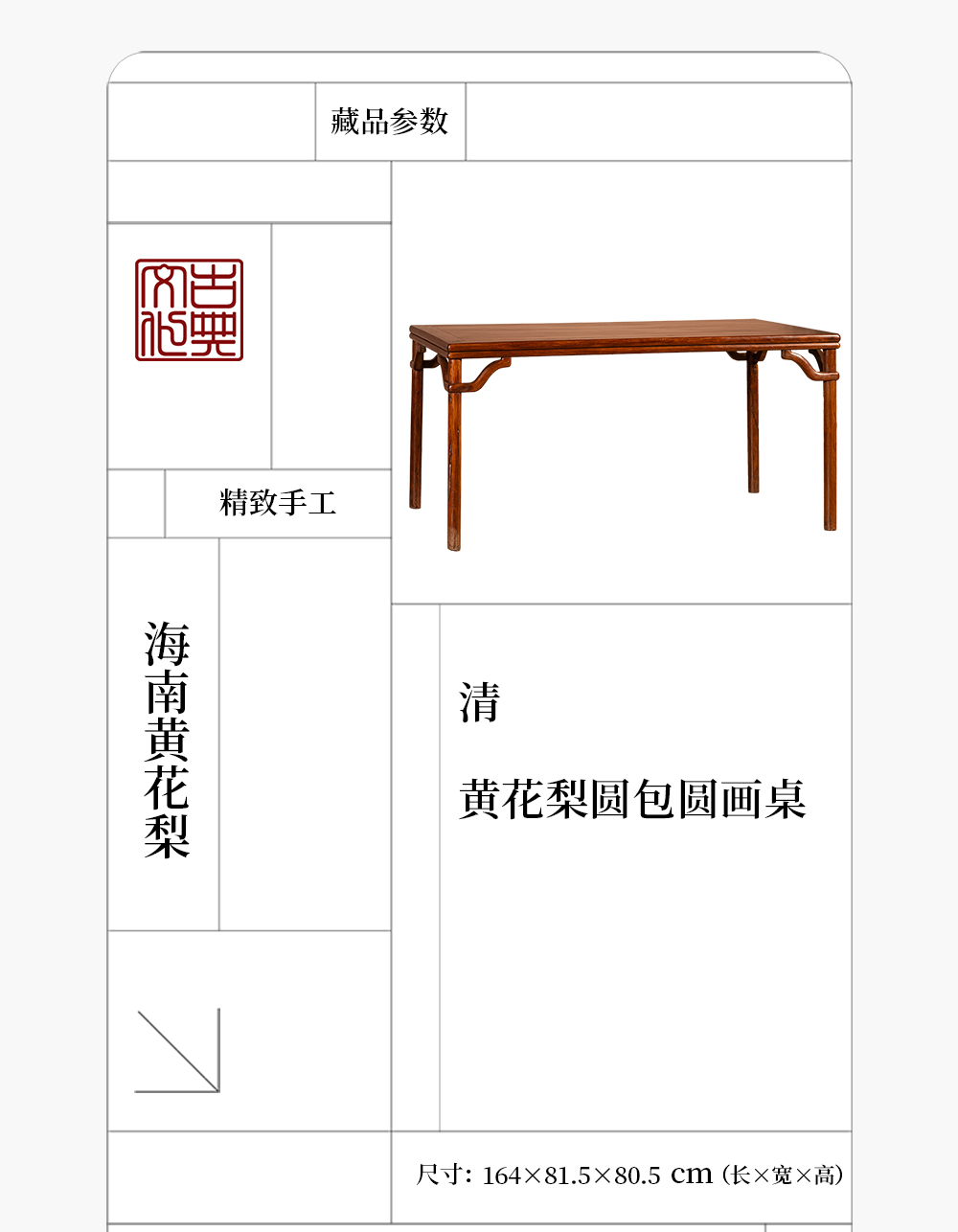 清 黄花梨圆包圆画桌