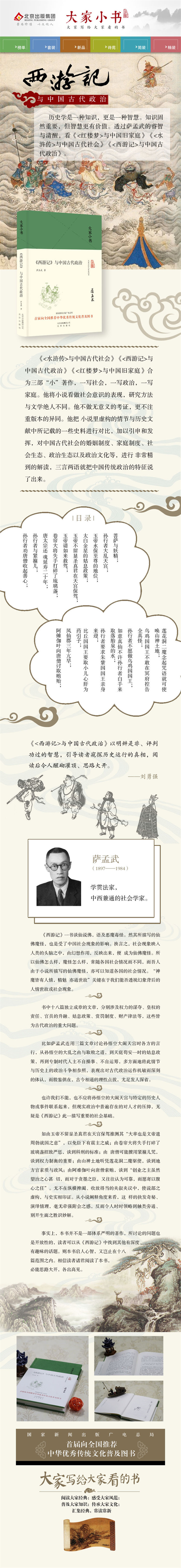 学贯政法、中西兼通的社会学家萨孟武,借中国传统经典小说《西游记》,对中国古代政治运作进行别开生面的透彻解读!