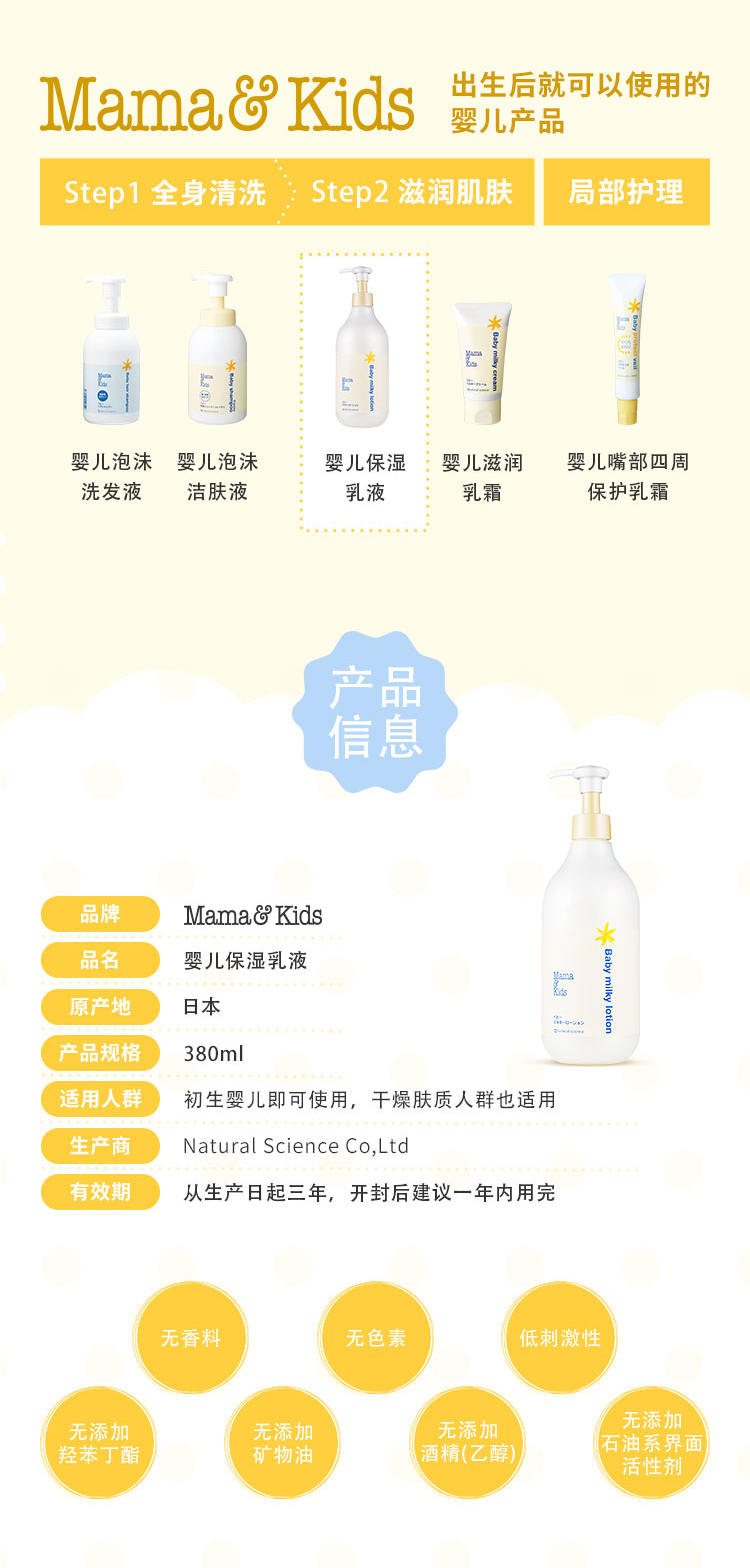 MamaKids 婴儿保湿乳液宝宝滋润补水保湿润肤乳全身防干适用380ml
