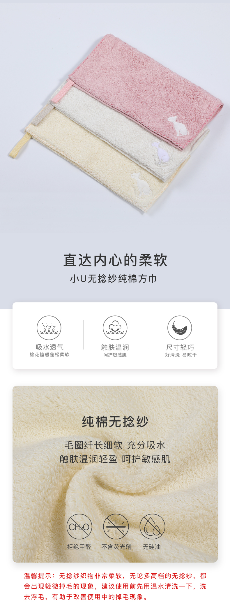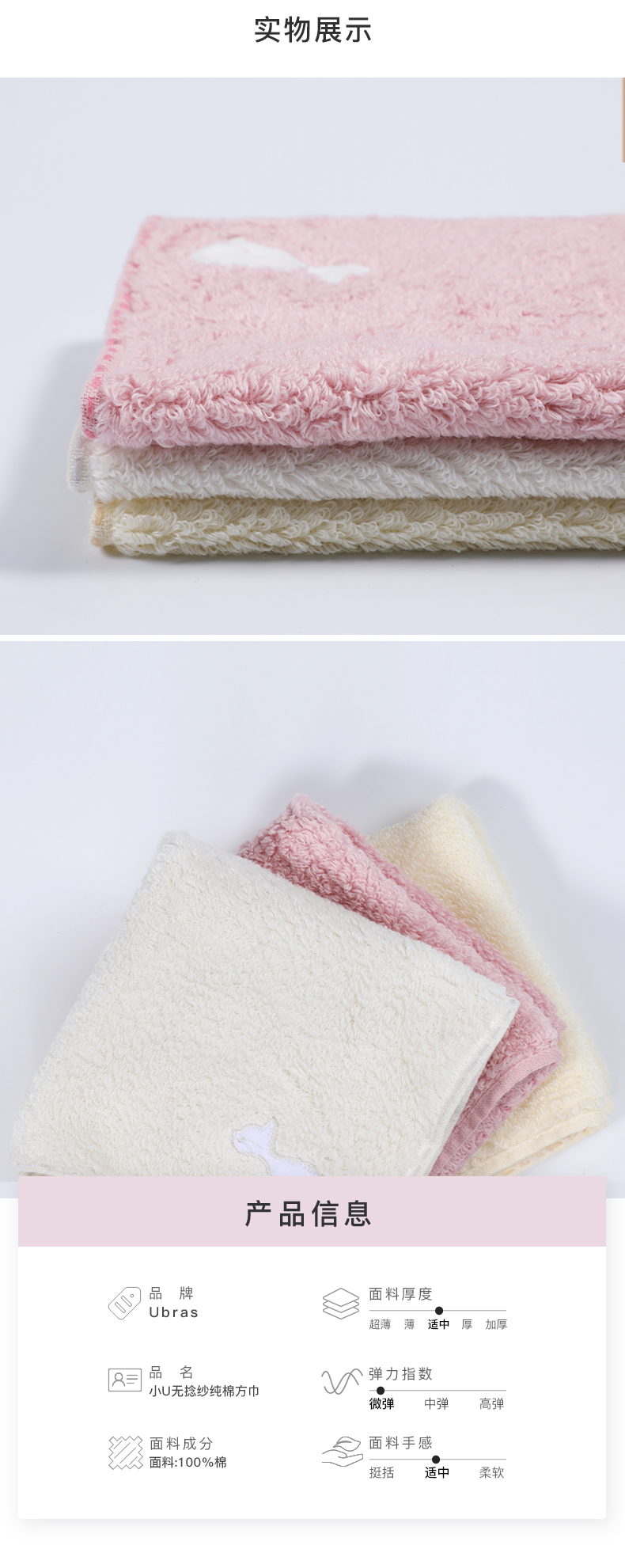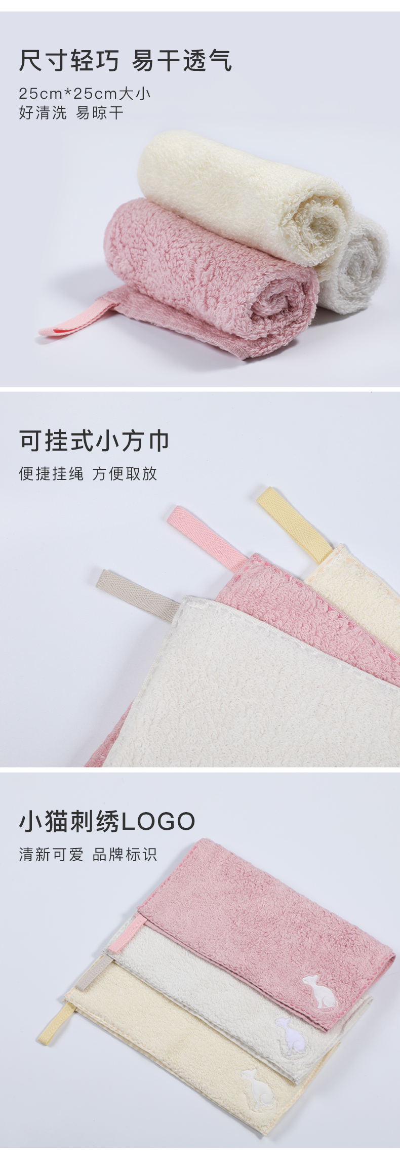 Ubras小U无捻纱纯棉方巾舒适柔软猫刺绣彩色吸汗纯棉易干挂绳方巾