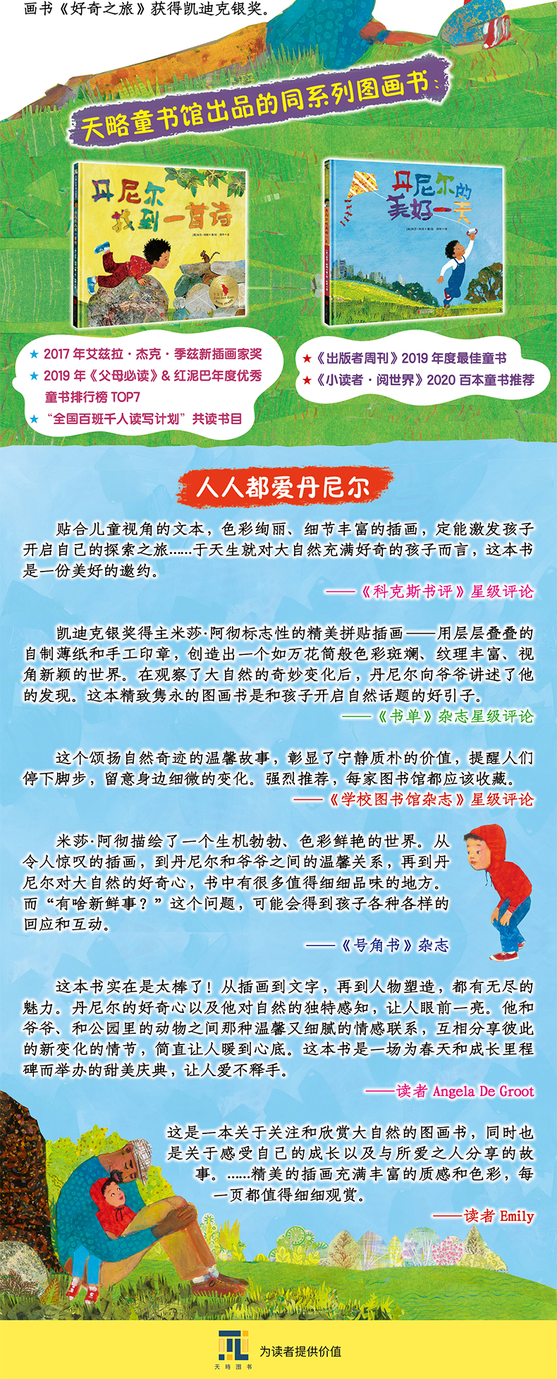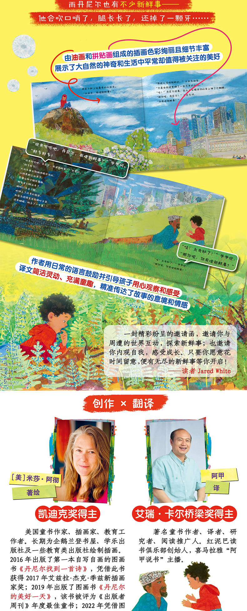 凯迪克奖得主米莎・阿彻继《丹尼尔找到一首诗》及《丹尼尔的美好一天》后,再次用色彩绚丽、细节丰富的插画,搭配简洁灵动、充满童趣的文字,带孩子走进丹尼尔那充满好奇与发现的世界。培养孩子的观察能力,鼓励他们发现生活的美好,感受成长的快乐。
